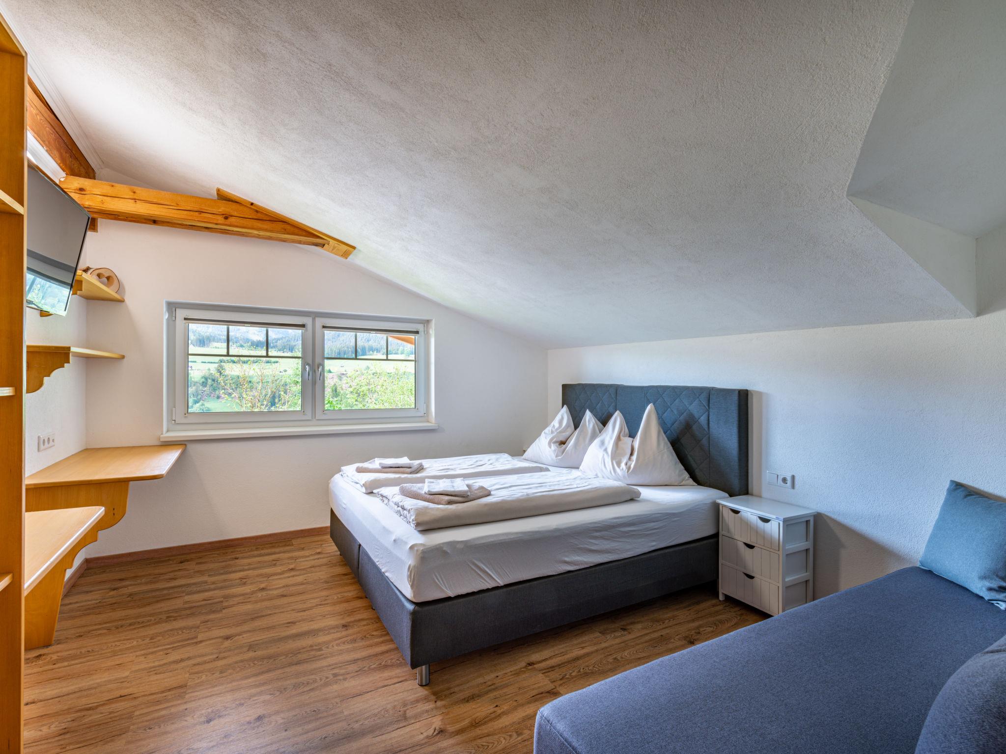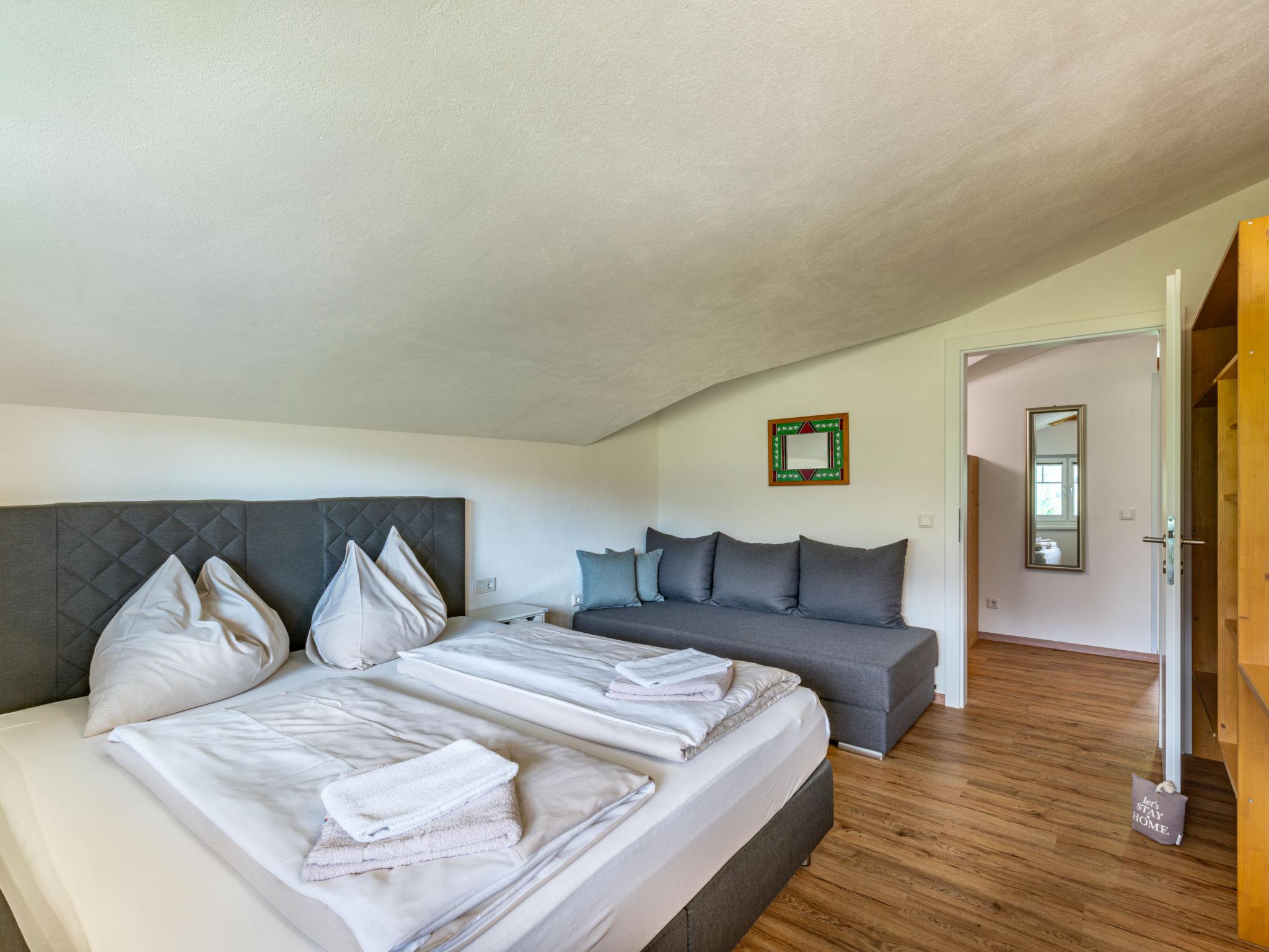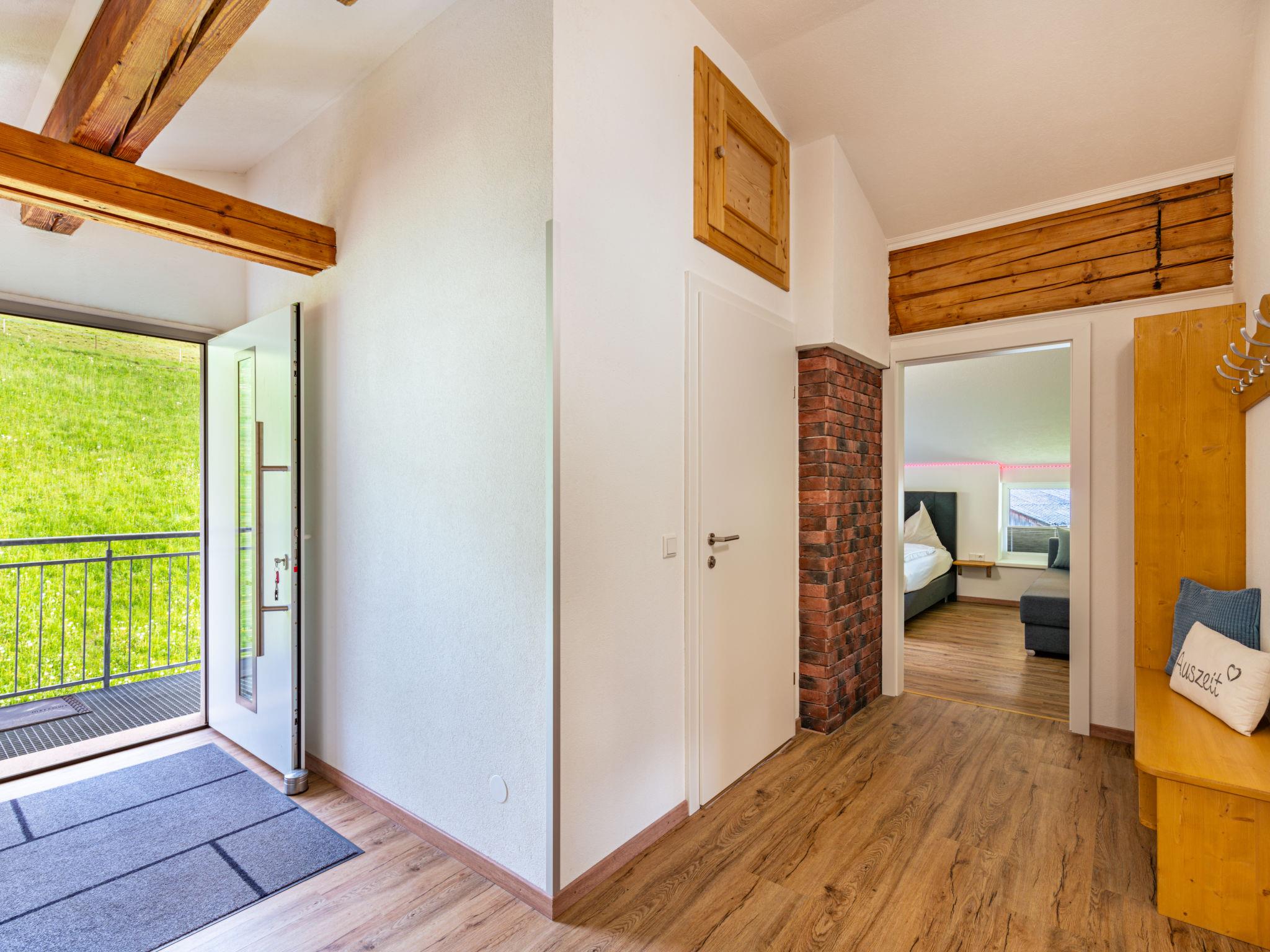 "Mawa", 3-room apartment 106 m2, on the top floor. Object suitable for 6 adults + 2 children. Partly with sloping ceilings, cosy furnishings: living/sleeping room with 1 double sofabed, dining table, satellite TV and international TV channels (flat screen). 2 rooms, each room with 1 sofabed, 1 double bed, satellite TV and international TV channels (flat screen). Open kitchen (oven, dishwasher, 4 ceramic glass hob hotplates, toaster, kettle, electric coffee machine). Shower, sep. WC, double hand-basin. Heating. Parquet floors. Beautiful panoramic view of the mountains and the valley. Facilities: Internet (WiFi, free). Please note: non-smokers only. Note: Access via external spiral staircase or internally.