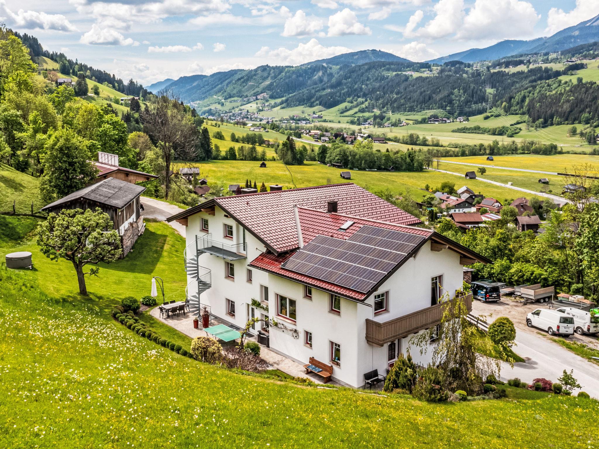 House "Mawa", 3 storeys. In the district of Oberhaus 3 km from the centre of Haus im Ennstal, in a quiet, sunny position, 7 km from the lake, 3 km from the skiing area. For shared use: petting farm. Private: garden. Hot tub, table tennis, patio. In the house: storage room for bicycles, storage room for skis, central heating system. Parking at the house. Supermarket 3 km, restaurant 600 m, bus stop "Oberhaus" 650 m, railway station "Haus im Ennstal" 6 km, bathing lake "Aicher Badesee" 7 km. Golf course (18 hole) 1.3 km, gondola lift 3 km, slopes 3 km, ski rental 3 km, ski school 3 km, children's ski school 3 km, cross country ski track 2 km. Nearby attractions: Zipline Stoderzinken 18 km. Well-known ski regions can easily be reached: Hauser Kaibling 3 km, Planai Schladming 3.5 km. Well-known lakes can easily be reached: Aicher Badesee 7 km. Please note: the owner lives in the same residence. Note: The hot tub is only available during the summer months between May 1st and October 31st and remains closed in winter.