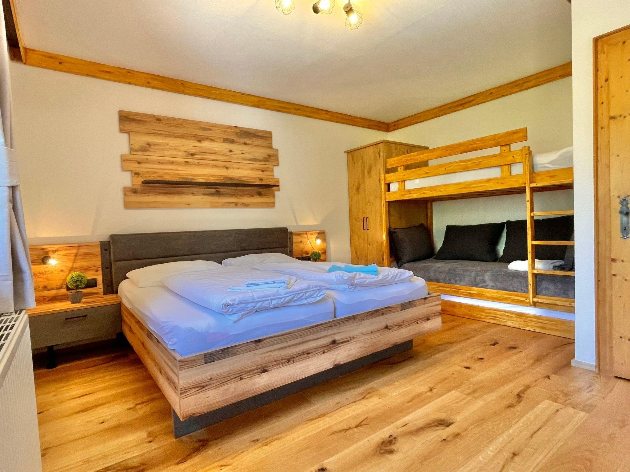 The interior of the flat is an oasis of cosiness and functionality. Three lovingly furnished bedrooms guarantee peaceful nights and pure relaxation. Two family rooms - each equipped with a double bed and a bunk bed - as well as an additional small single room offer individual retreats. After a day full of adventures, the spacious bathroom with bath, shower and WC invites you to relax, while bed linen and towels are provided for a carefree stay. The kitchen, equipped with everything you need from a dishwasher to a coffee machine, combines practical amenities with the pleasure of cooking together. The adjoining, spacious dining area allows for sociable evenings with up to eight people.