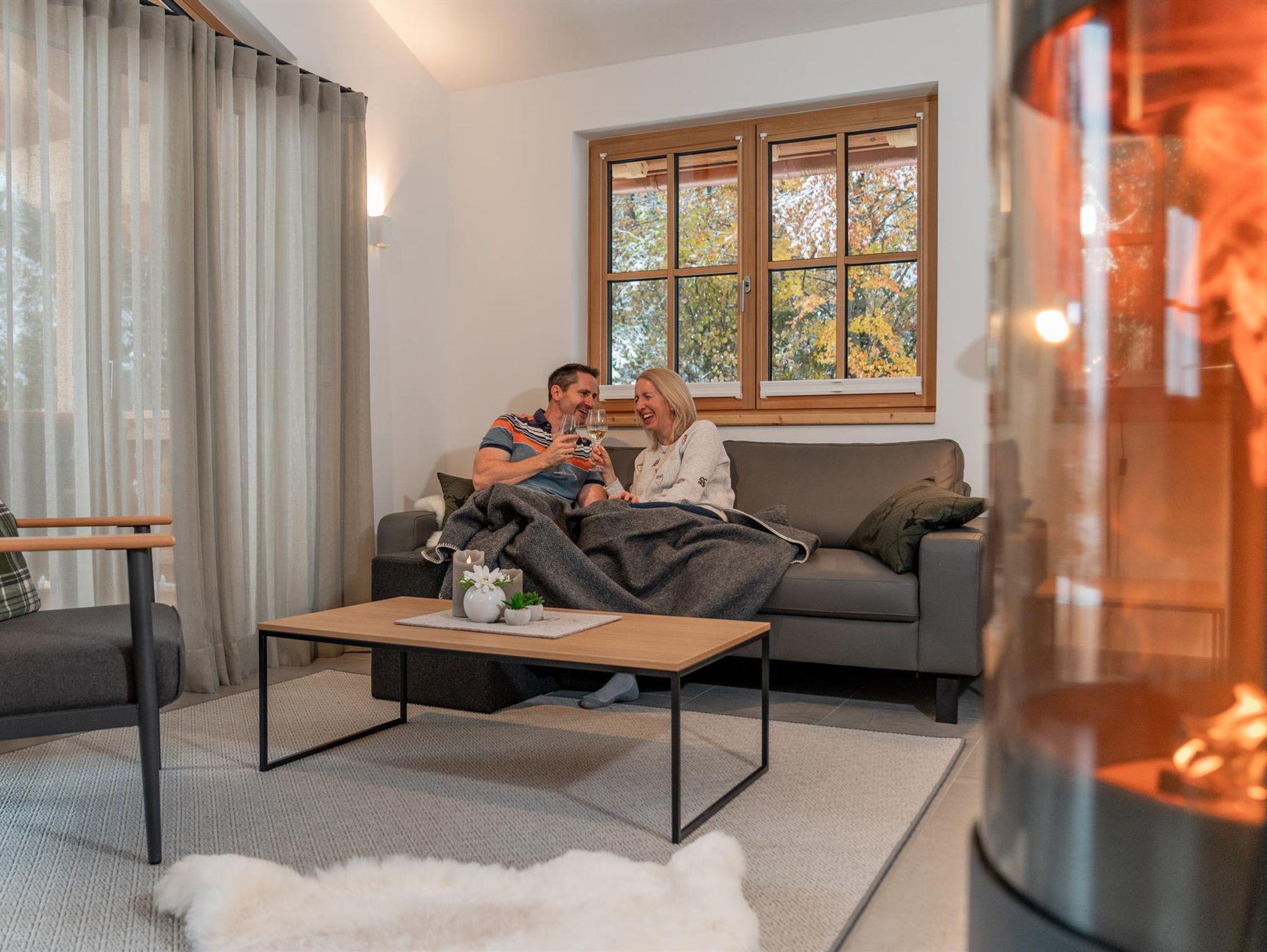 • Offener Kamin/Effektfeuer in vielen Chalets