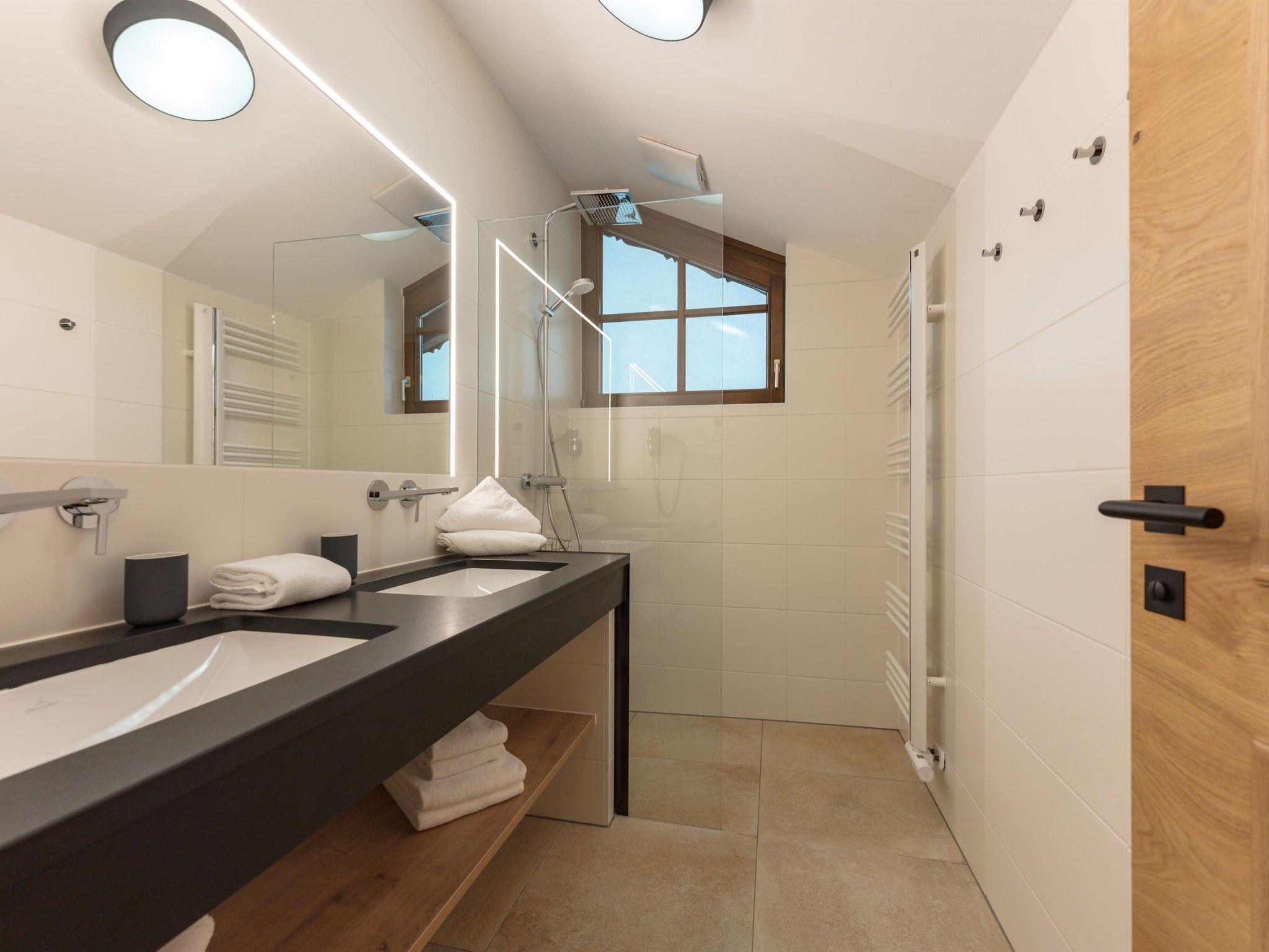 - 1 Bad mit Dusche, Doppelwaschtisch und Fön