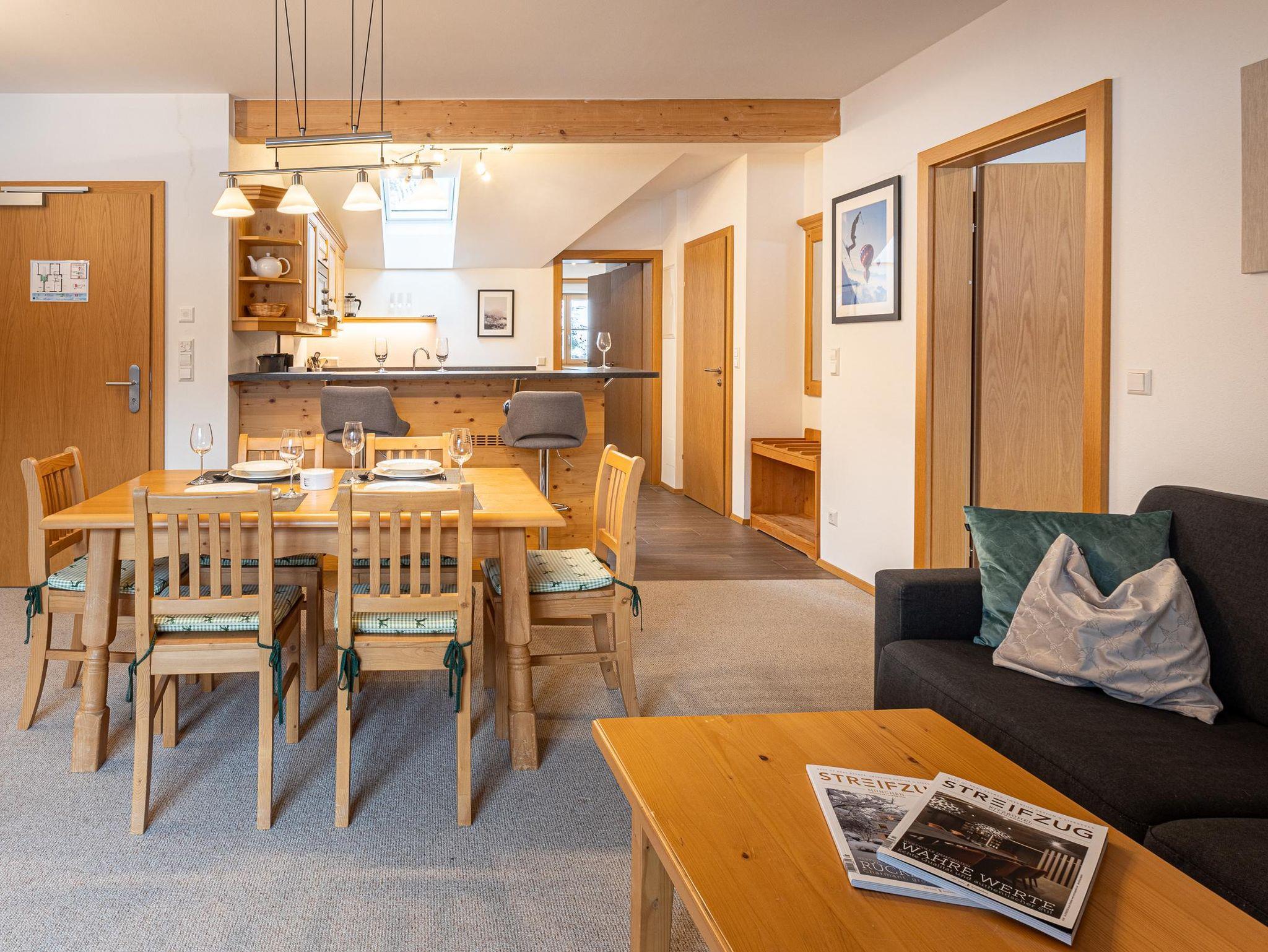 Aparthaus Sonnenberg – Top 3 Kufstein befindet sich im 2. Stock und bietet auf 72?m² Platz für bis zu 6 Personen. Die Wohnung umfasst zwei Schlafzimmer mit Doppelbetten sowie ein Schlafsofa im Wohnzimmer. Eine voll ausgestattete Küche, zwei separate Badezimmer, ein zusätzliches WC und ein Balkon sorgen für hohen Wohnkomfort. Zwei Garagenparkplätze stehen ebenfalls zur Verfügung. Der hauseigene Saunabereich sorgt für zusätzliche Entspannung.