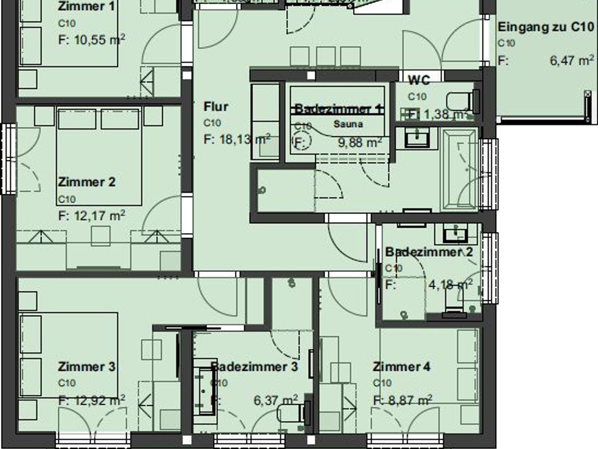 • vier getrennte Schlafzimmer mit je einem Doppelbett