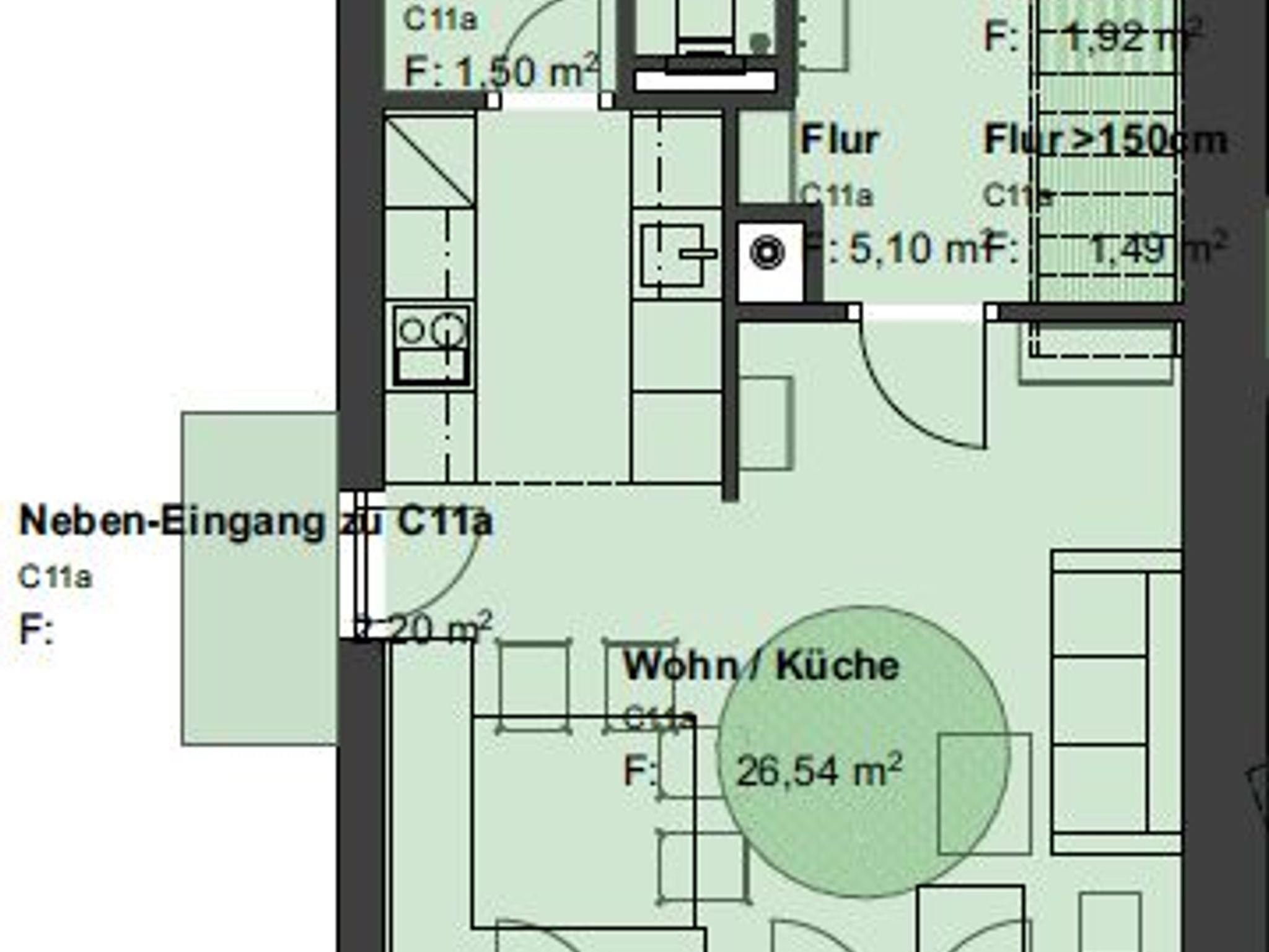 • Wohnküche mit komplett ausgestatteter Küche