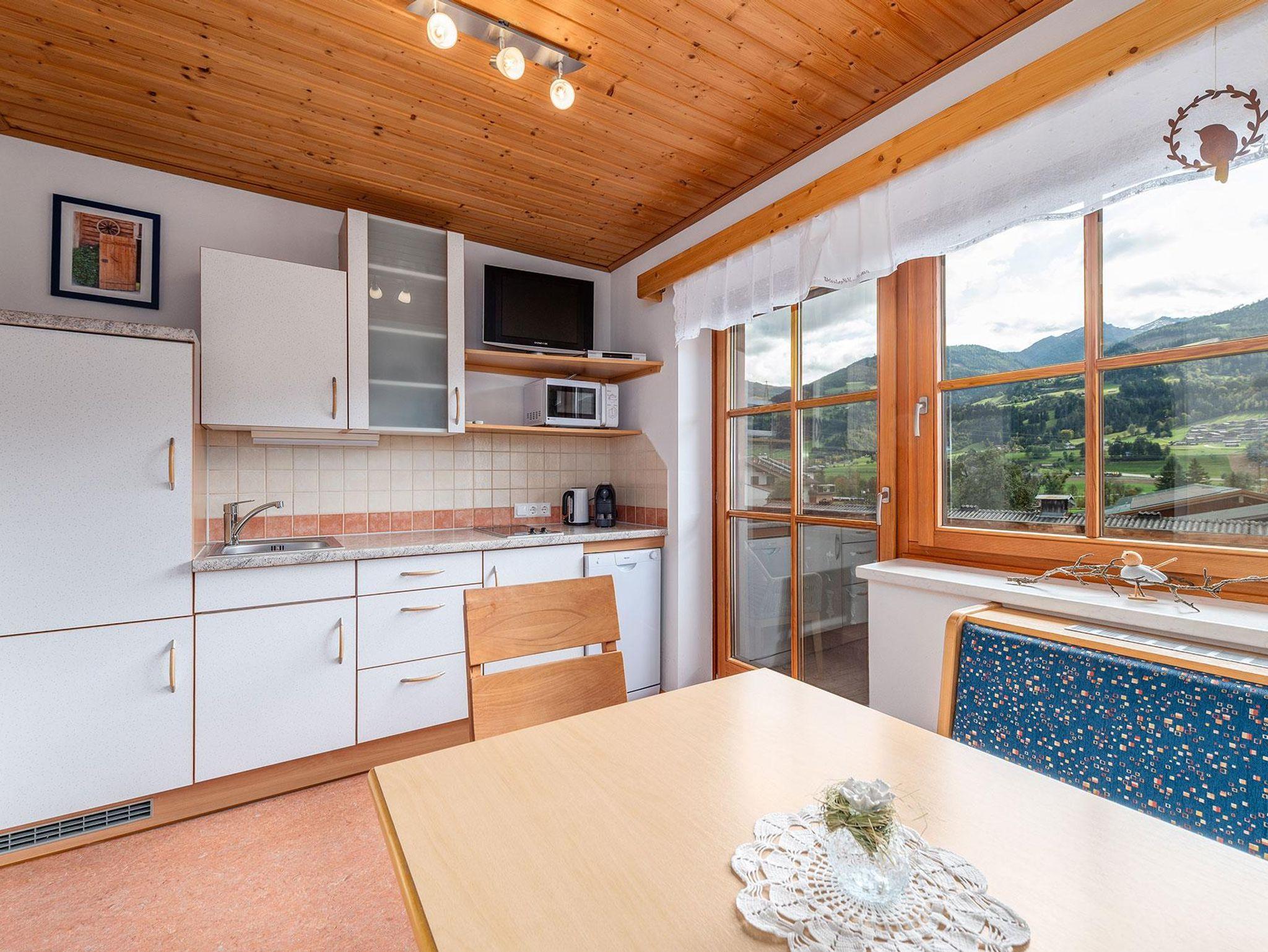 Eine voll ausgestattete Küche mit gemütlichem Essbereich, Dusche und separates WC, TV, Radio und kostenloses WLAN sorgen für ein rundum angenehmes Wohngefühl. Vom Balkon genießen Sie einen herrlichen Blick auf die umliegende Bergwelt.