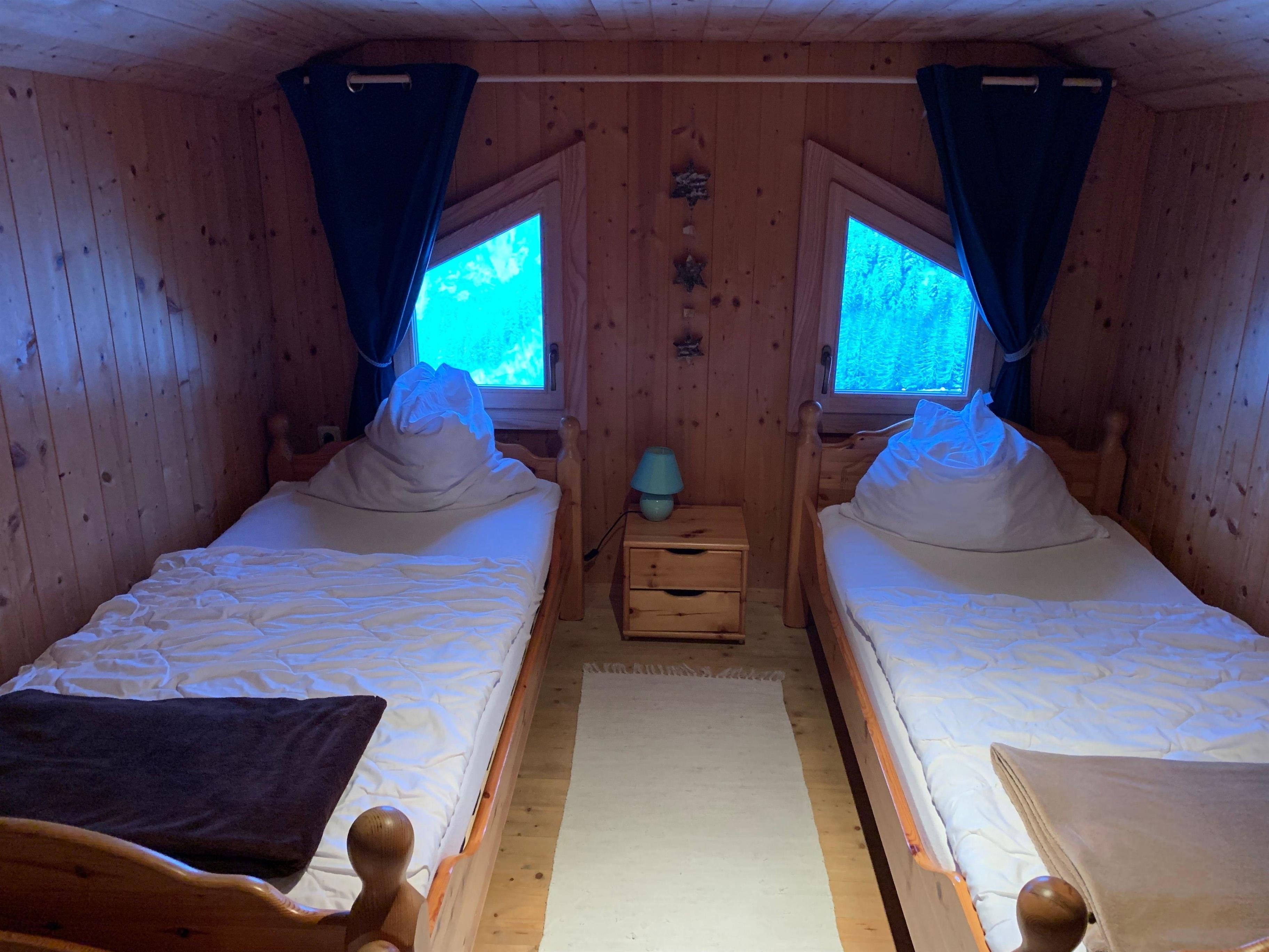 Die Hütte ist sehr hell und freundlich mit viel Holz eingerichtet. Folgende Räume stehen zur Verfügung: ausreichend Parkmöglichkeit; UG - Holzlager, Abstellraum mit Skiständer; große Sonnenterasse; EG - Vorraum mit Skischuhtrockner; Badezimmer mit Dusche, Waschbecken und WC; Wohn-Küche mit Zugang zum Balkon, Kühlschrank, E-Herd, Holzherd; 1 Einzelzimmer; 1 Doppelzimmer; 1 Doppelzimmer mit Zugang zum Dachgeschoss mit 4 Einzelbetten. Die Hütte kann mit dem Holzherd in der Küche und zusätzlich mit Elektroheizkörpern in den einzelnen Räumen geheizt werden.