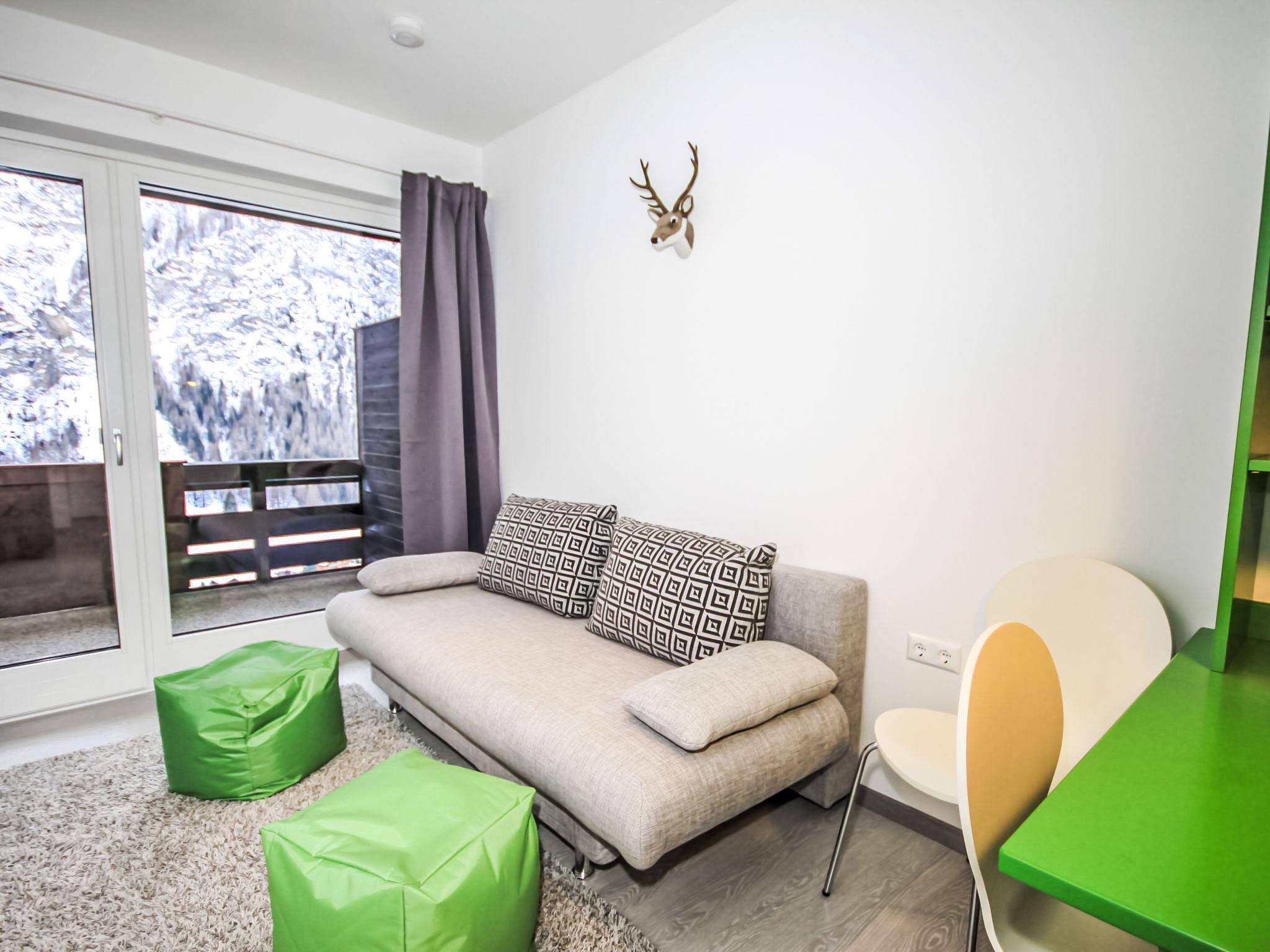"Top 46 A", 1-room studio 28 m2 on 4th floor. Object suitable for 2 adults. Renovated in 2018, cosy furnishings: living/sleeping room with 1 pull-out bed (2 pers. 2 x 80 cm, length 200 cm), dining table and satellite TV (flat screen). Small, open kitchen (2 hot plates, combination microwave). Shower/WC. Small balcony 4 m2, south facing position. Beautiful view of the mountains and the valley. Facilities: Internet (WiFi, free). Please note: non-smokers only.