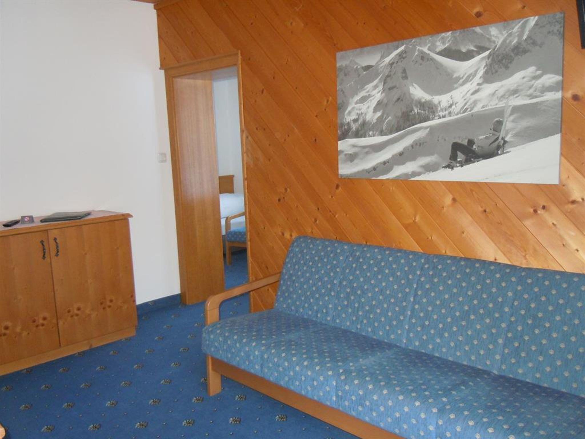 Schönes Drei - oder Vierbett Zimmer mit Dusche oder Bad/WC, Vorraum, Balkon mit Bergblick, großer Flachbildfernseher, kostenloses W - LAN, eigener Schlafraum mit einem Einzelbett sowie Schlafsofa im Zimmer der Eltern. (Auch für Erwachsene geeignet)