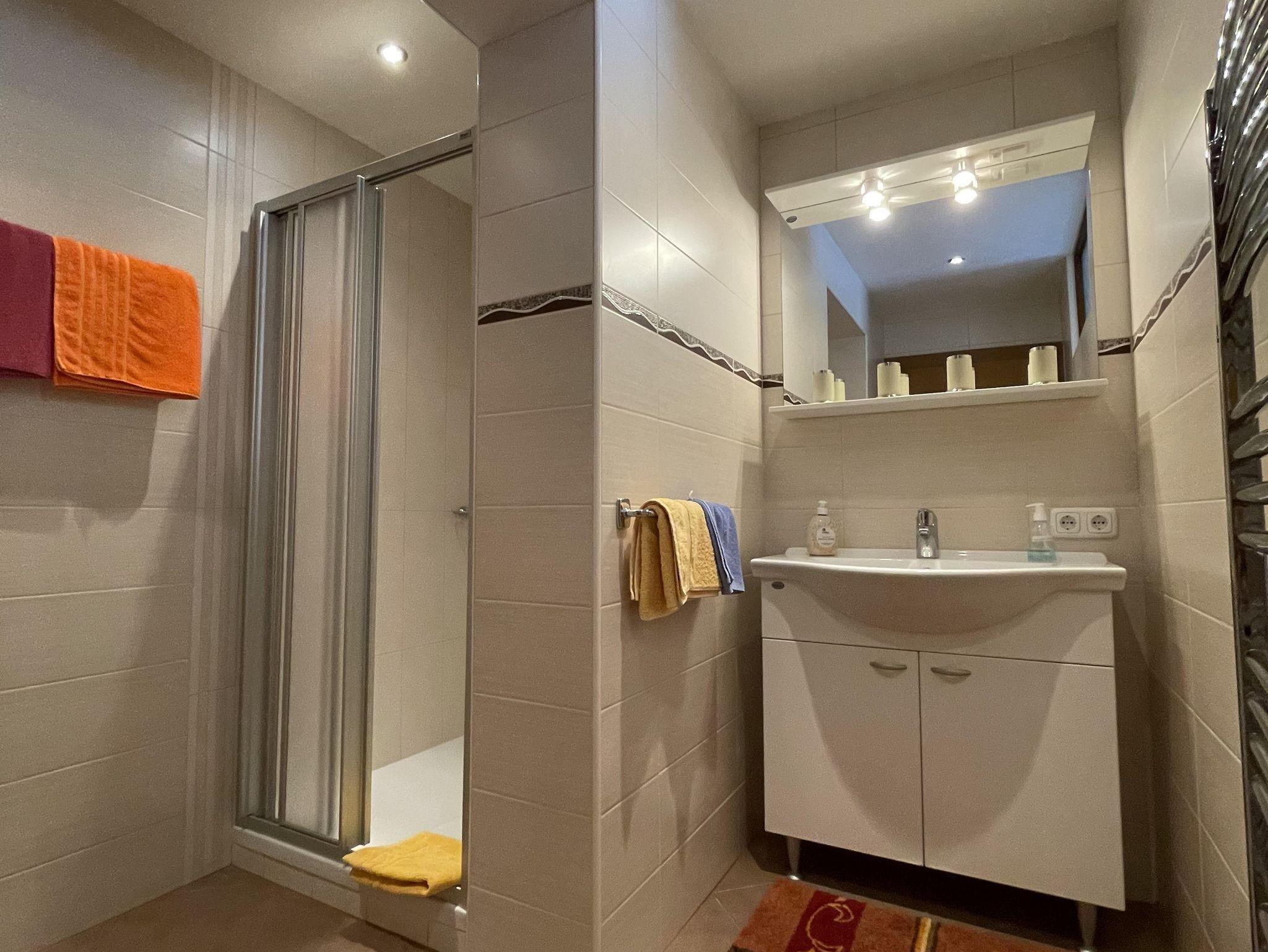 Unsere gemütliche Ferienwohnung Nr. 5 besteht aus einem kleinen Vorraum, einem Schlafzimmer (Doppelbett und Couchbett), separter Küche mit Sitzecke, Dusche/WC und einer großen Terrasse mit Blick zum Großglockner!