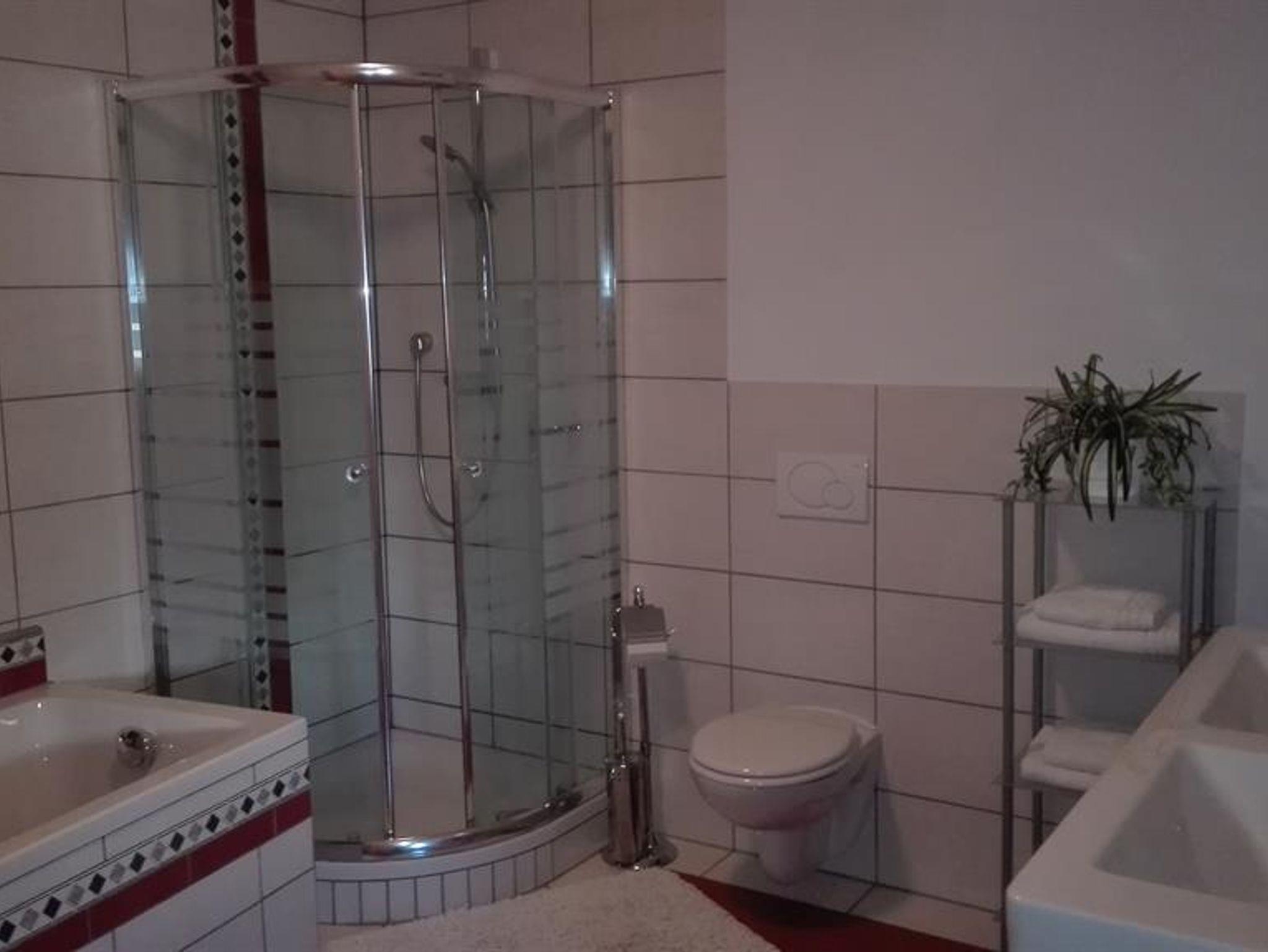 Ferienwohnung ( 110m2) Küche (E-Herd,Geschirrspüller,Mikro,Kühl-Gefrierkom. Kaffeemaschine,) Esszimmer,Wohnzimmer mit Terassenbalkon Sat und TV -Radio, Badezimmer -(Badewanne,Dusche,Doppelwaschtisch,WC) +1WC extra, 3 Schlafzimmer,Schuhraum. Bettwäsche,Badetücher,Handtücher,Geschirrtücher,Küchenrolle,WC-Papier in der Wohnung vorhanden. Brötchenservice möglich.