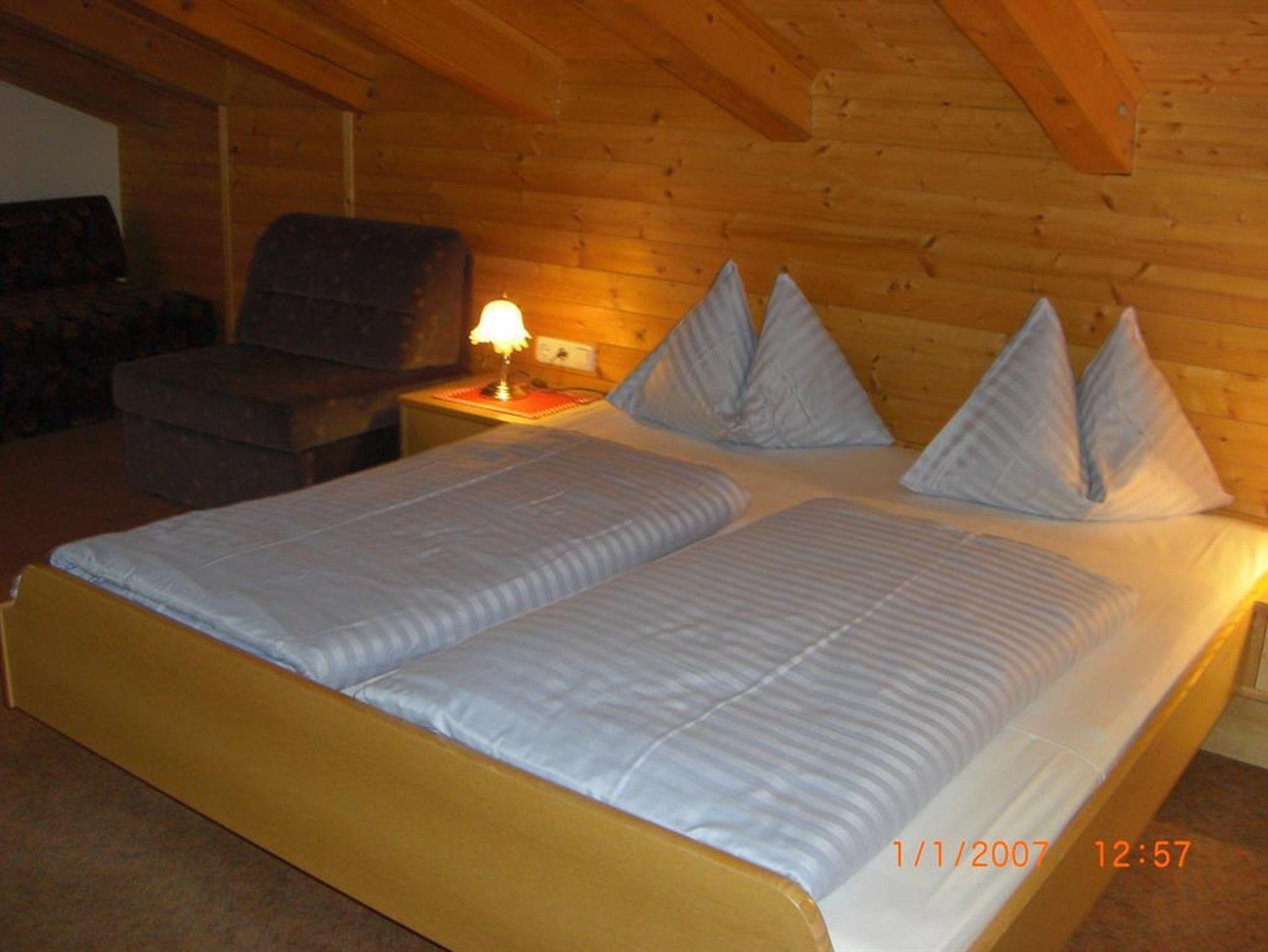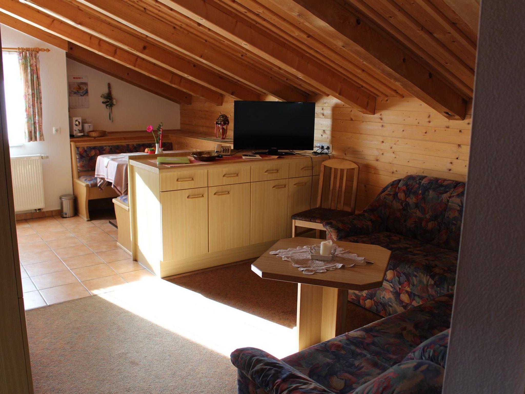 Urgemütlich, mit Naturholz ausgebautes Dachgeschoss; NICHTRAUCHER Wohnung! Küche, Ess- und Wohnecke, Doppelzimmer mit Couchbett, Kinderkabinett mit Dachfenster und zwei Betten, Badezimmer mit Duschkabine und Badewanne, WC extra
