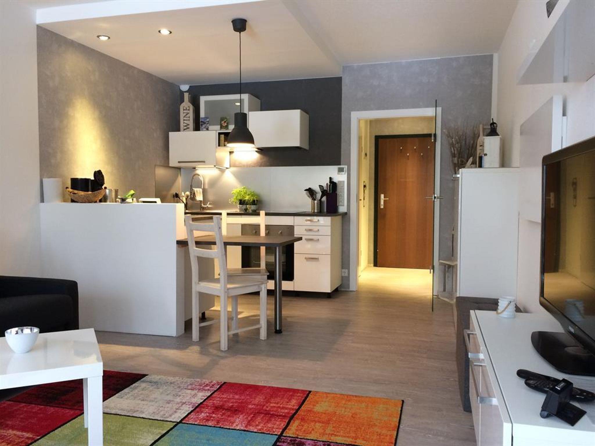Ihr Apartment umfasst eine Küche mit Geschirrspüler, Backofen, Kühlschrank und Kaffee- sowie Kaffeepadmaschine. Ein 40 Flachbild-TV ergänzt die Ausstattung. Das eigene Bad ist mit einer Badewanne ausgestattet.