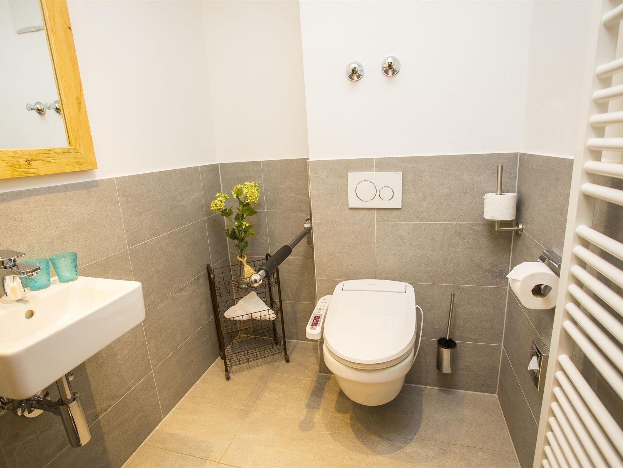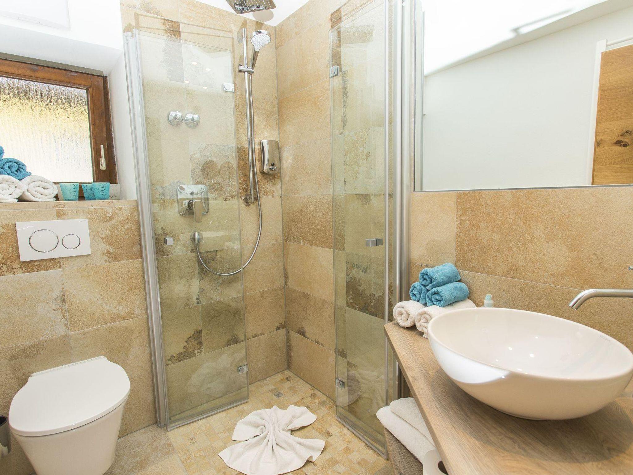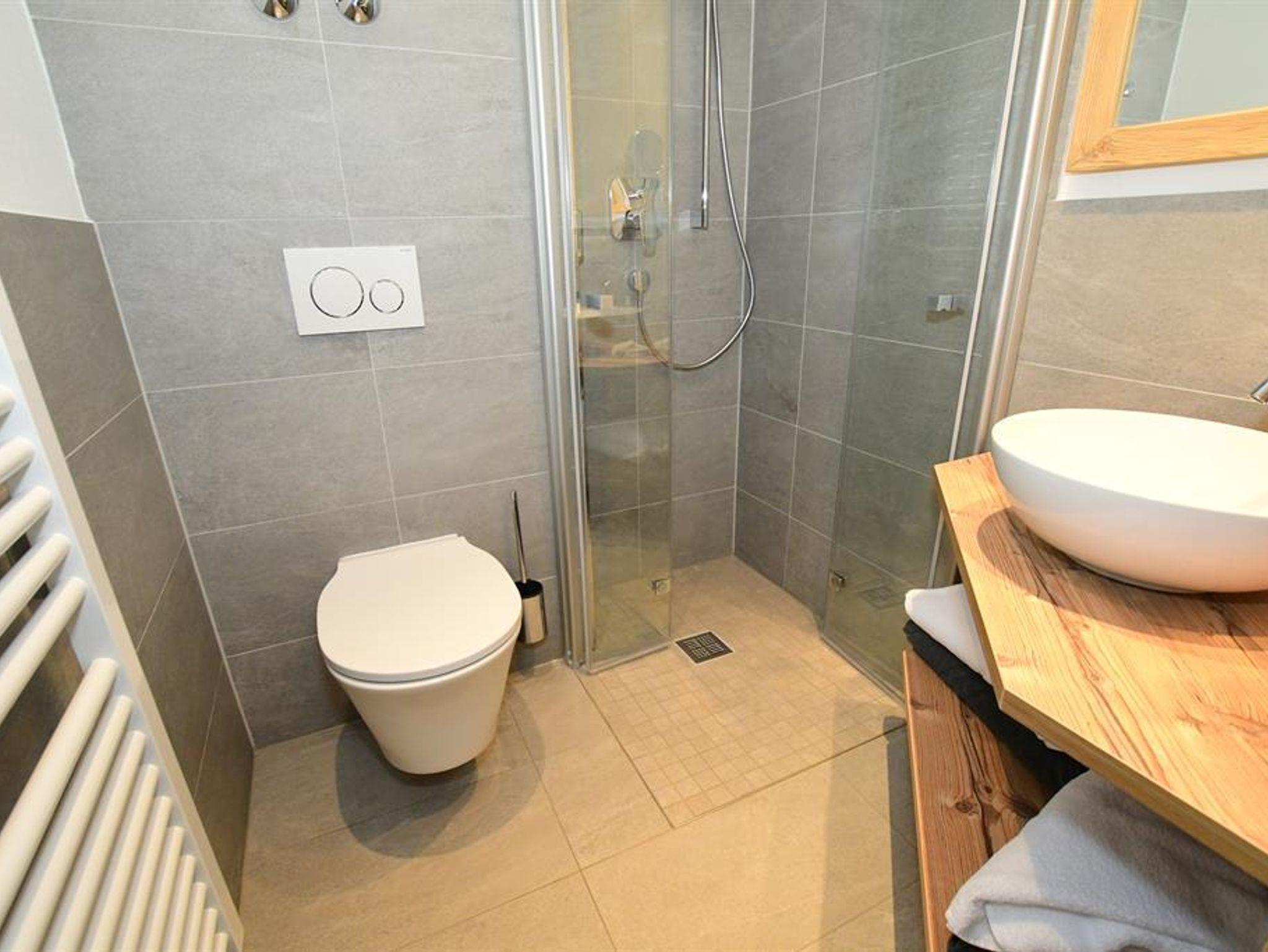 • Bad mit begehbarer Dusche, Fön, Kosmetikspiegel und WC.