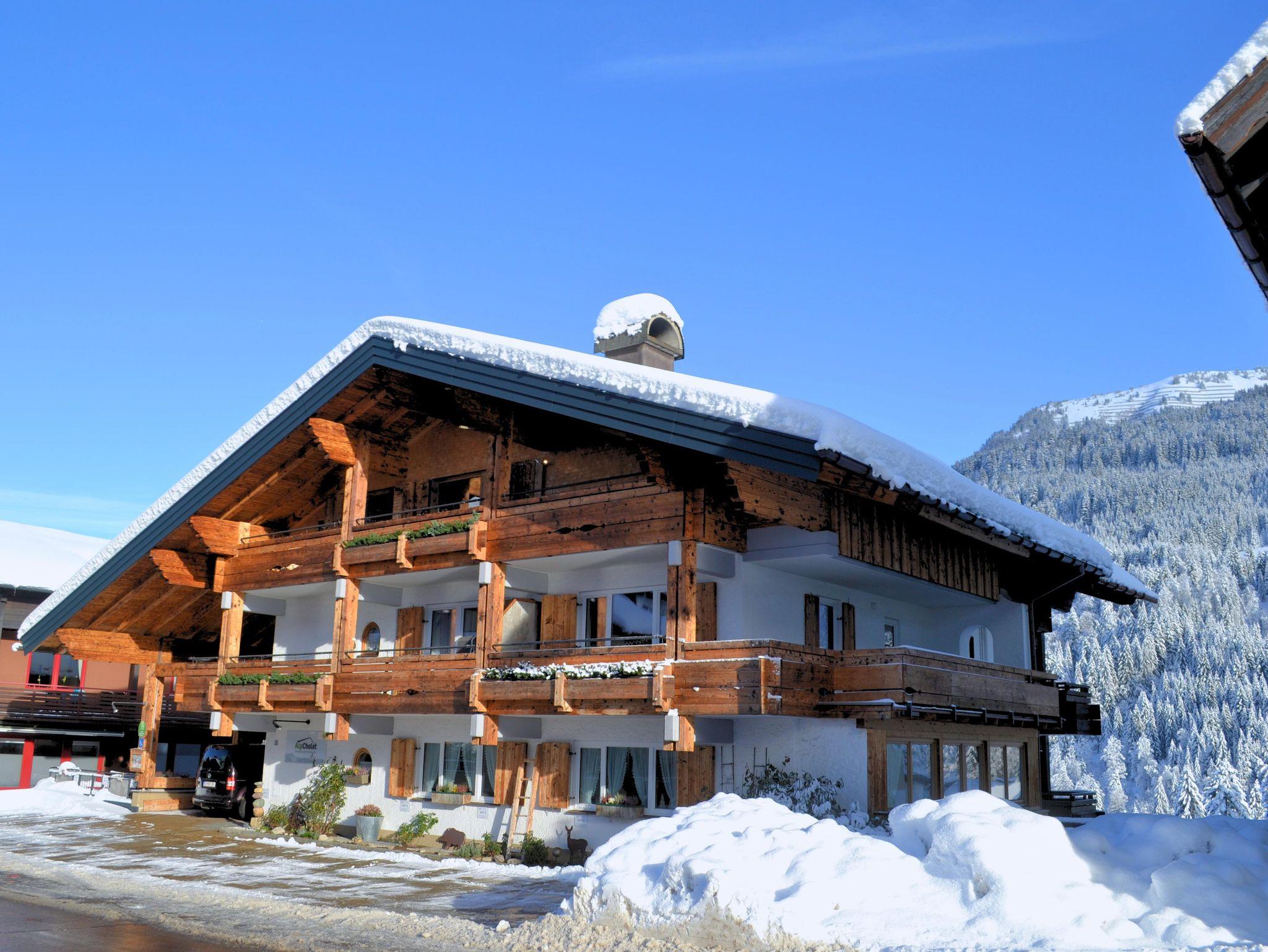 Erleben Sie Ferien im Herzen von Hirschegg. In unmittelbarer Nähe ist das Walserhaus, Bäckerei, Restaurants, Bushaltestelle und Bergbahn.