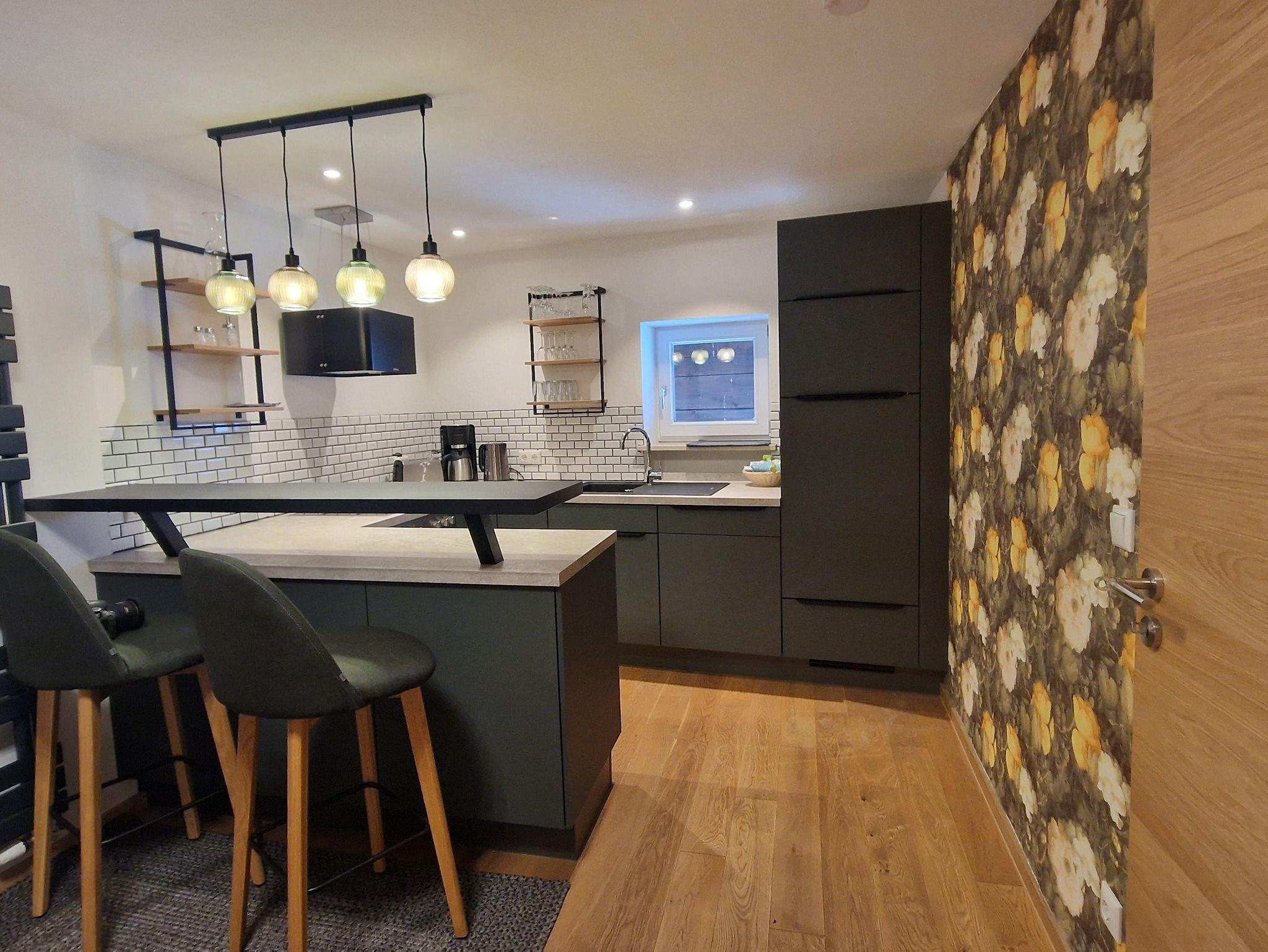• Neue Küche voll ausgestattet: Ceranfeld, Backofen, Kühlschrank + Gefrierfach, Kaffeemaschine, Toaster, Wasserkocher,Spülmaschine.