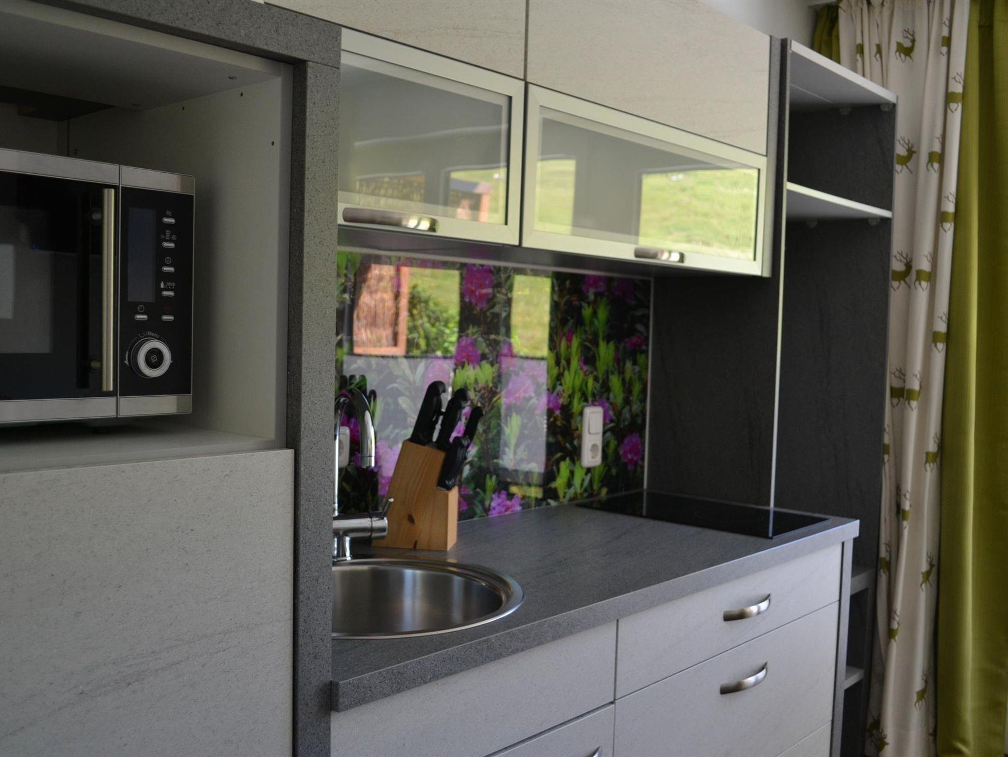 Gemütliches, kleines 1,5 Raum Appartement mit eigenem Eingang über die Terrasse. Im Wohn- Essbereich befindet sich eine Eckcouch mit Esstisch und eine voll ausgestattete Küchenzeile. 2-Platten Herd, Micro-Grill, Wasserkocher, Toaster und Kaffemaschine.