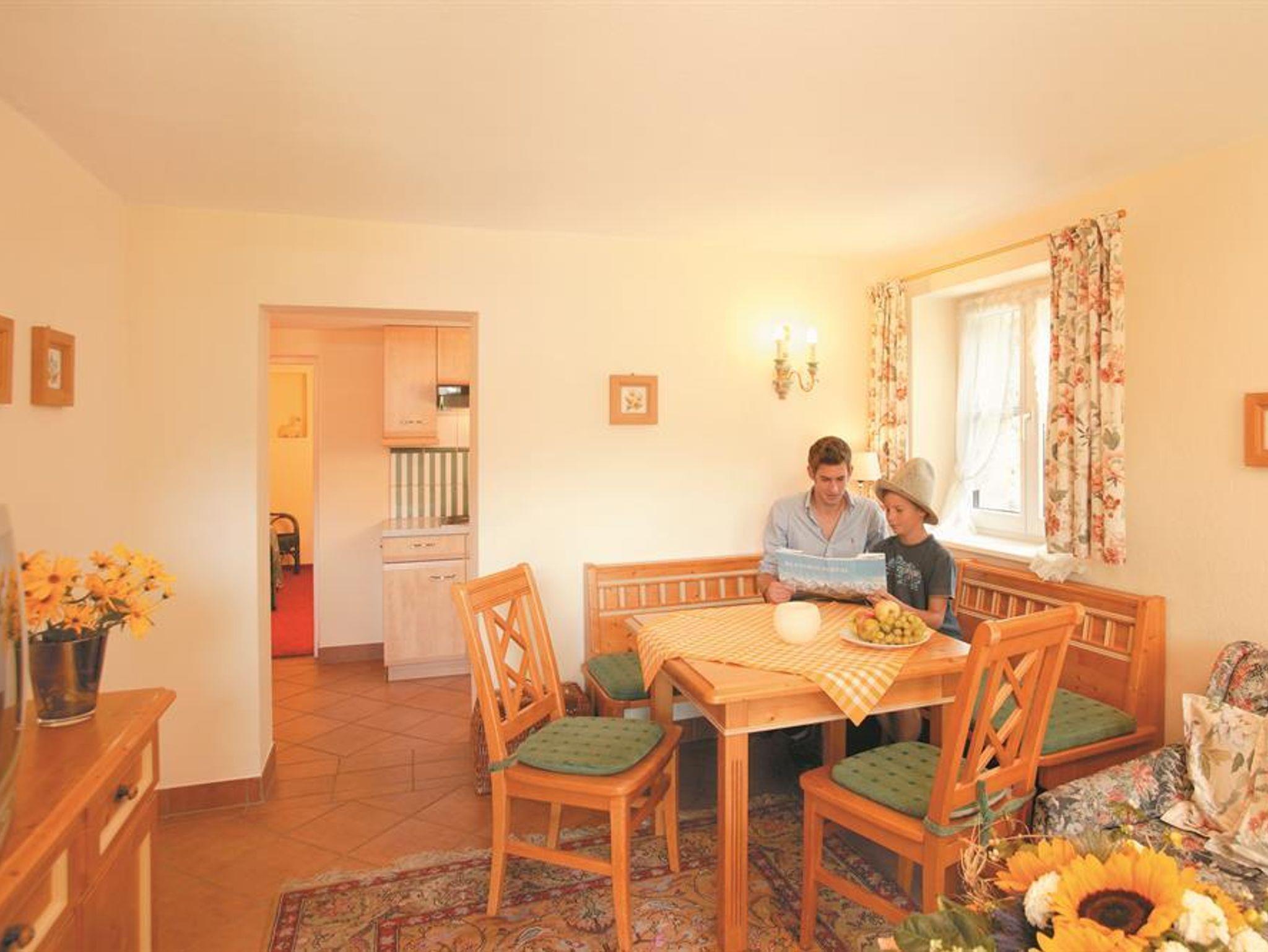 3-Raum-Ferienwohnung im Landhausstil eingerichtet mit 2 Schlafzimmern, einem Wohnzimmer, Küchenzeile, Bad, WC, Balkon oder Terrasse, TV, Parkplatz. Auf Wunsch können Sie im Haupthaus Verwöhnhotel Walserhof Frühstück oder Halbpension buchen. Einmalige Endreinigungsgebühr.