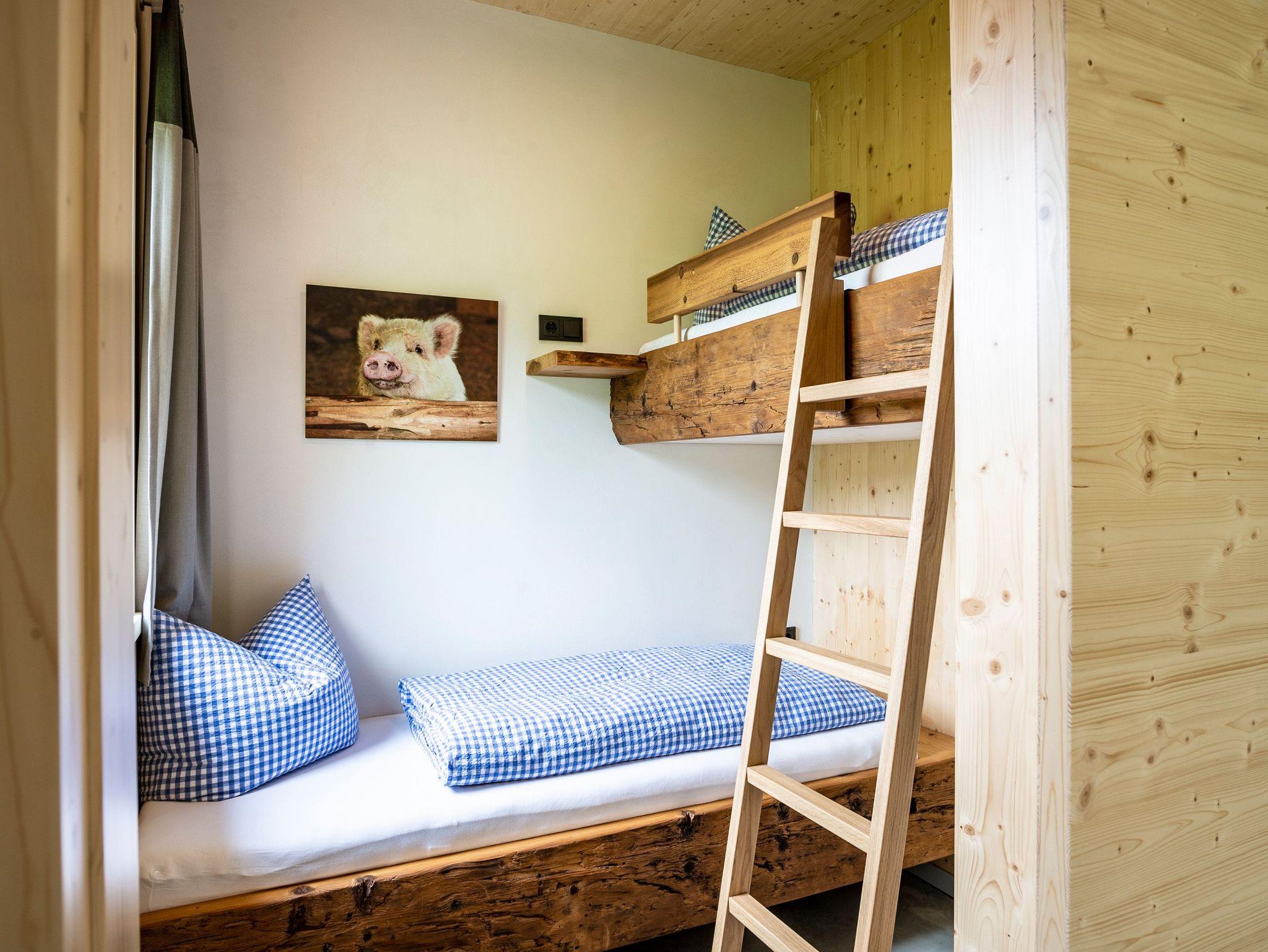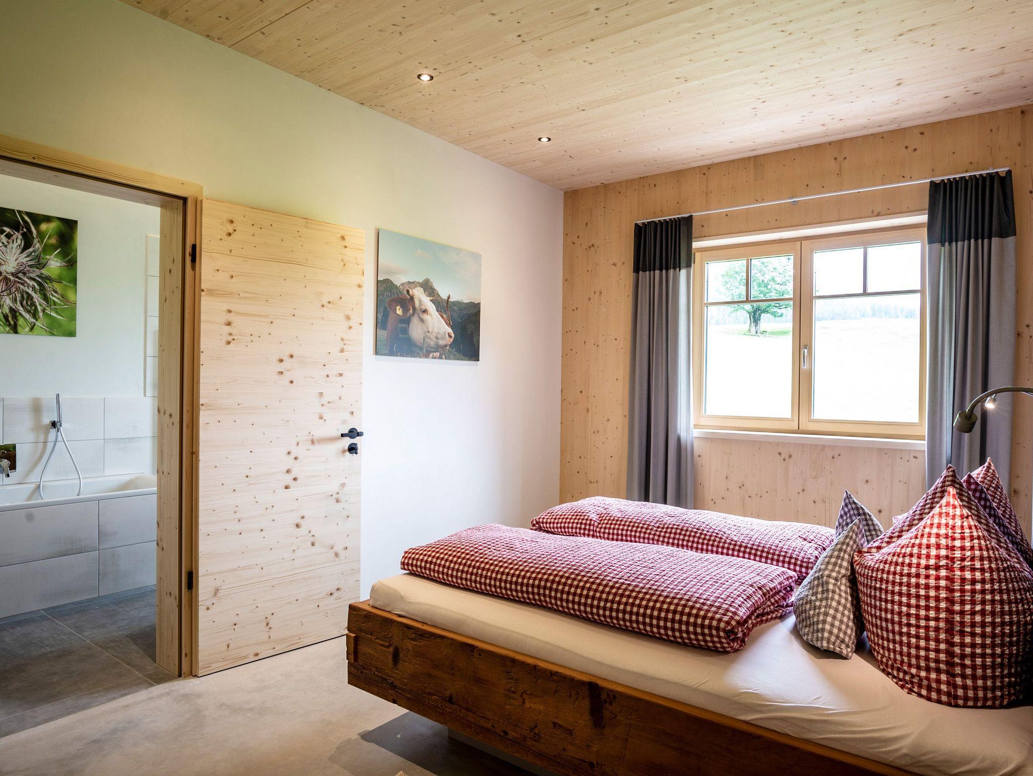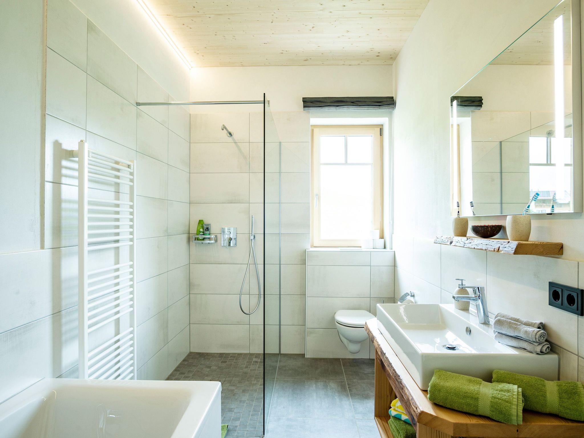 Ihr wohnt in einem reinen Holzhaus. Im Erdgeschoss in Massivholz-Bauweise und im Obergeschoss in traditioneller Blockhaus-Bauweise aus Weißtanne gebaut, herrscht im gesamten Gebäude eine besonders angenehme Wohnatmosphäre. Im Inneren des Hauses sind keine gesundheitsschädlichen Stoffe verarbeitet, sondern Lehm, Holz und Schafwolle schaffen ein gesundes Klima, das positiv auf das Wohlbefinden eines Menschen wirkt. Fast alle Gäste berichten über einen besonders erholsamen Schlaf.