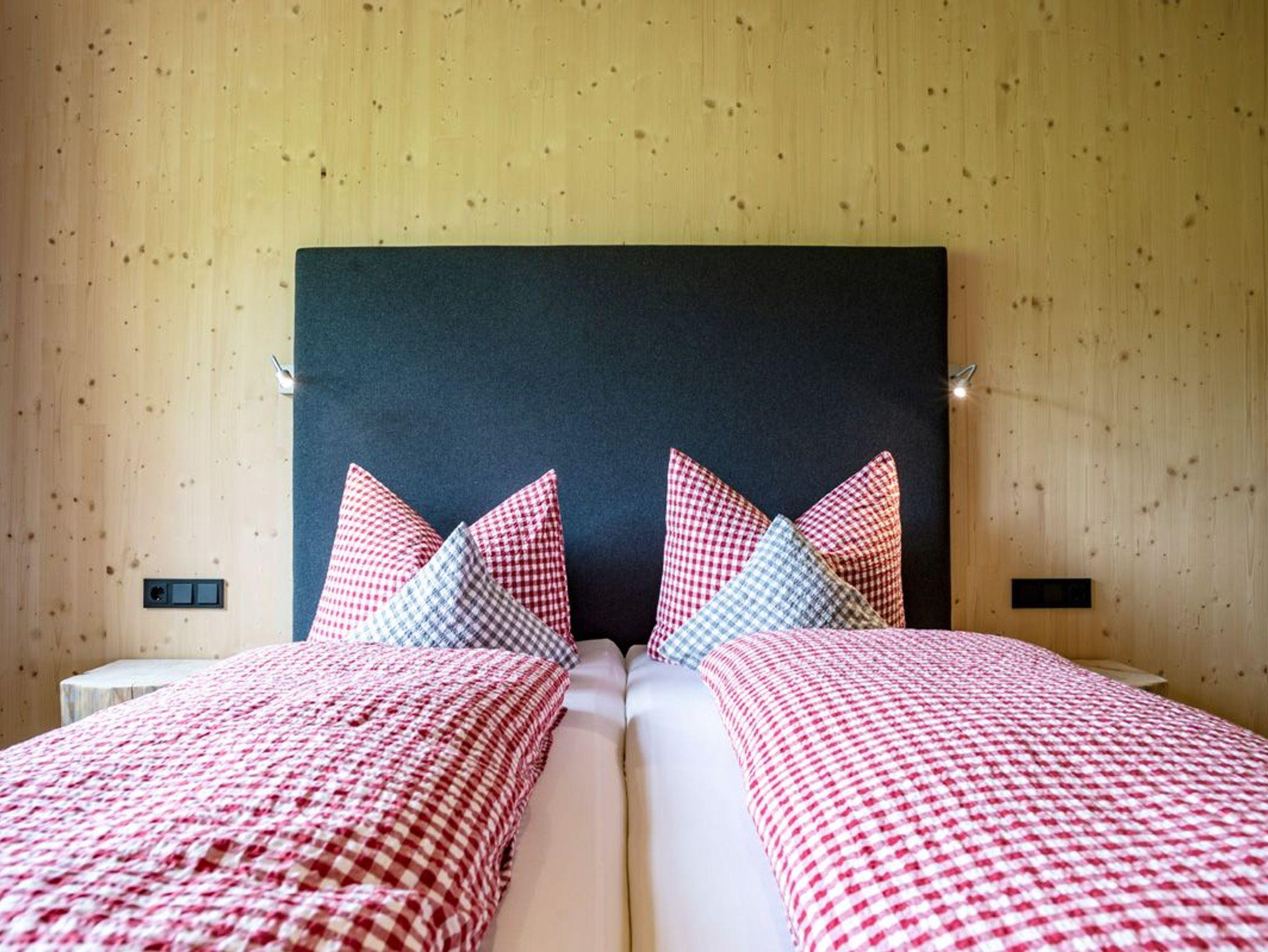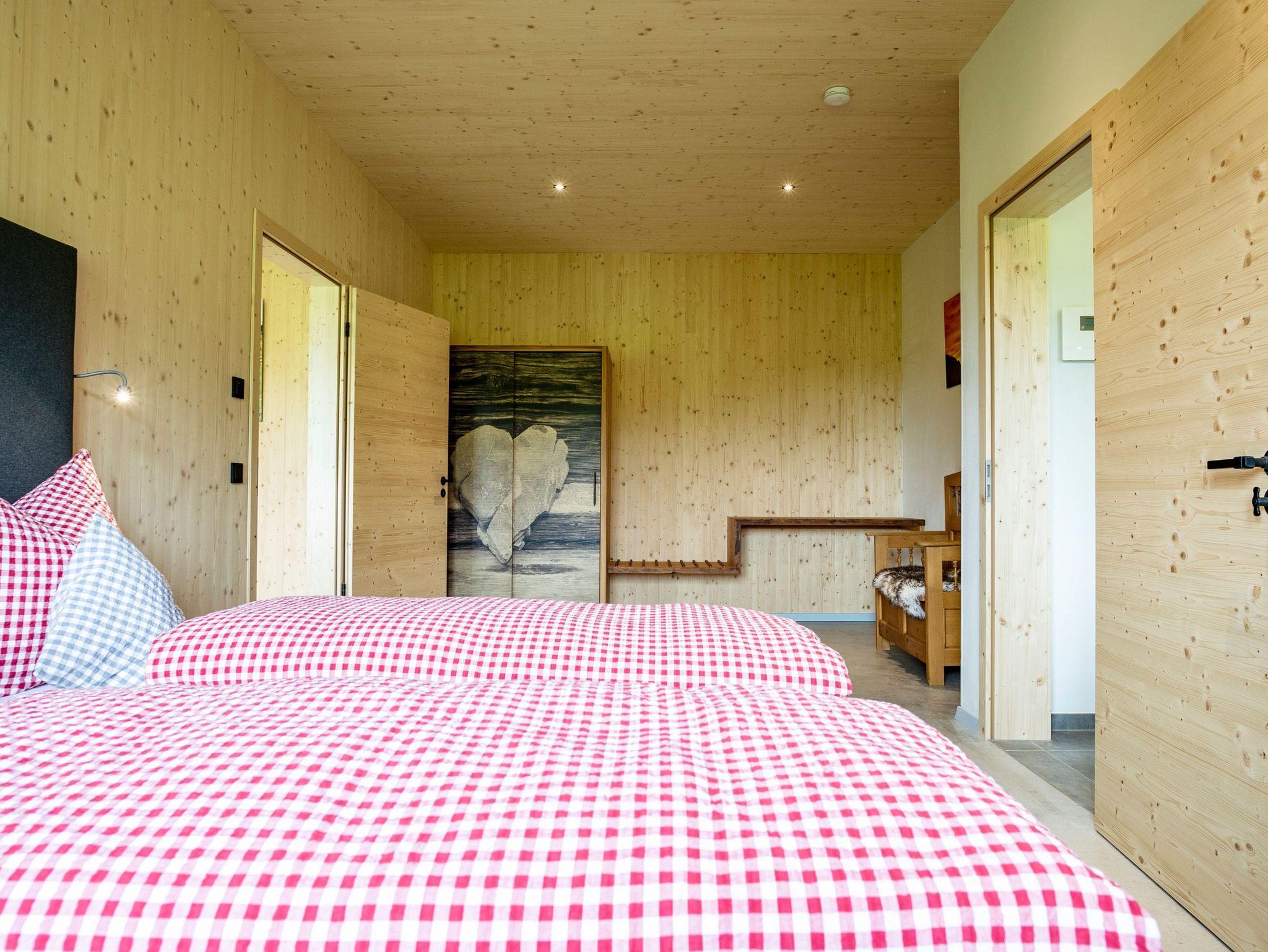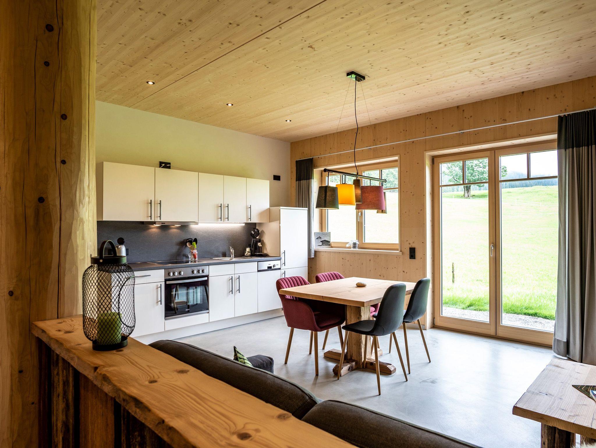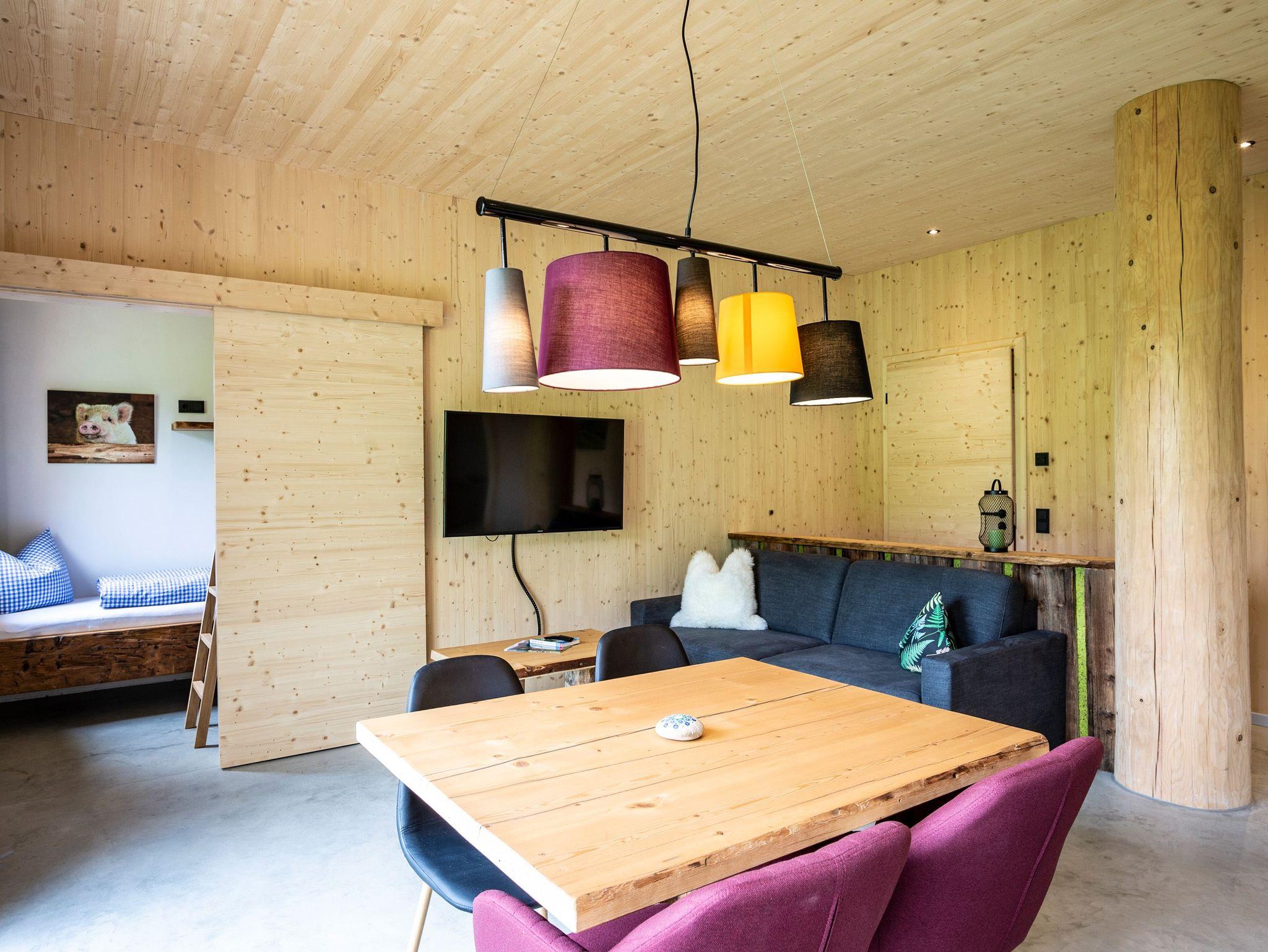 Ihr wohnt in einem reinen Holzhaus. Im Erdgeschoss in Massivholz-Bauweise und im Obergeschoss in traditioneller Blockhaus-Bauweise aus Weißtanne gebaut, herrscht im gesamten Gebäude eine besonders angenehme Wohnatmosphäre. Im Inneren des Hauses sind keine gesundheitsschädlichen Stoffe verarbeitet, sondern Lehm, Holz und Schafwolle schaffen ein gesundes Klima, das positiv auf das Wohlbefinden eines Menschen wirkt. Fast alle Gäste berichten über einen besonders erholsamen Schlaf.
