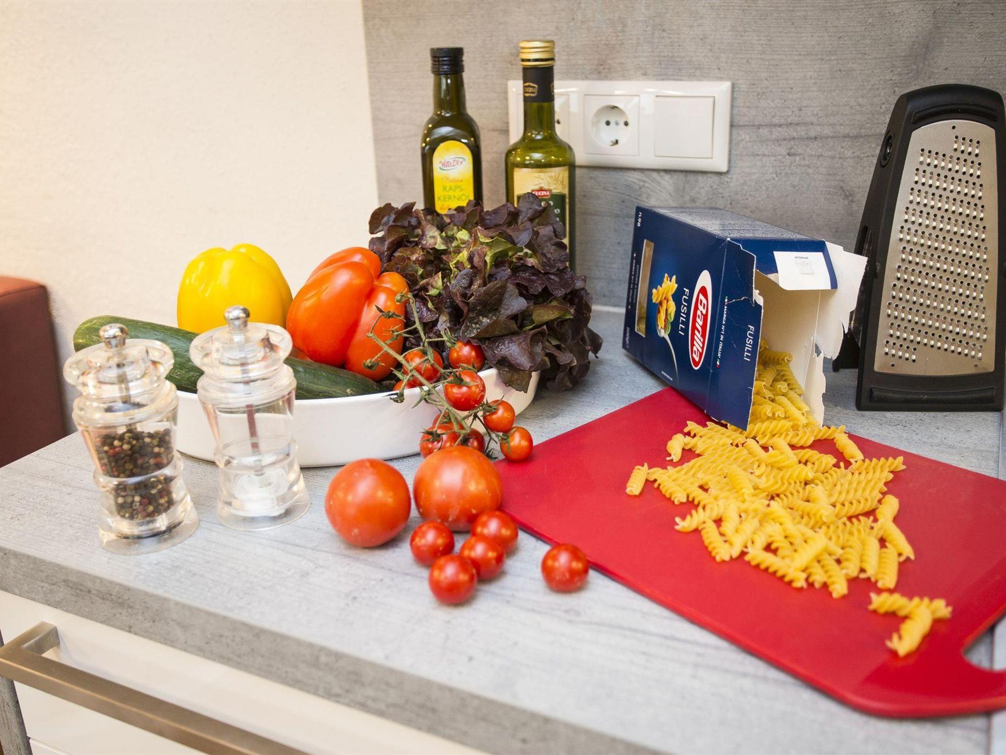 • Küche voll ausgestattet: Ceranfeld, Backofen, Kühlschrank + Gefrierfach, Kaffeemaschine, Toaster, Wasserkocher u. Spülmaschine.
