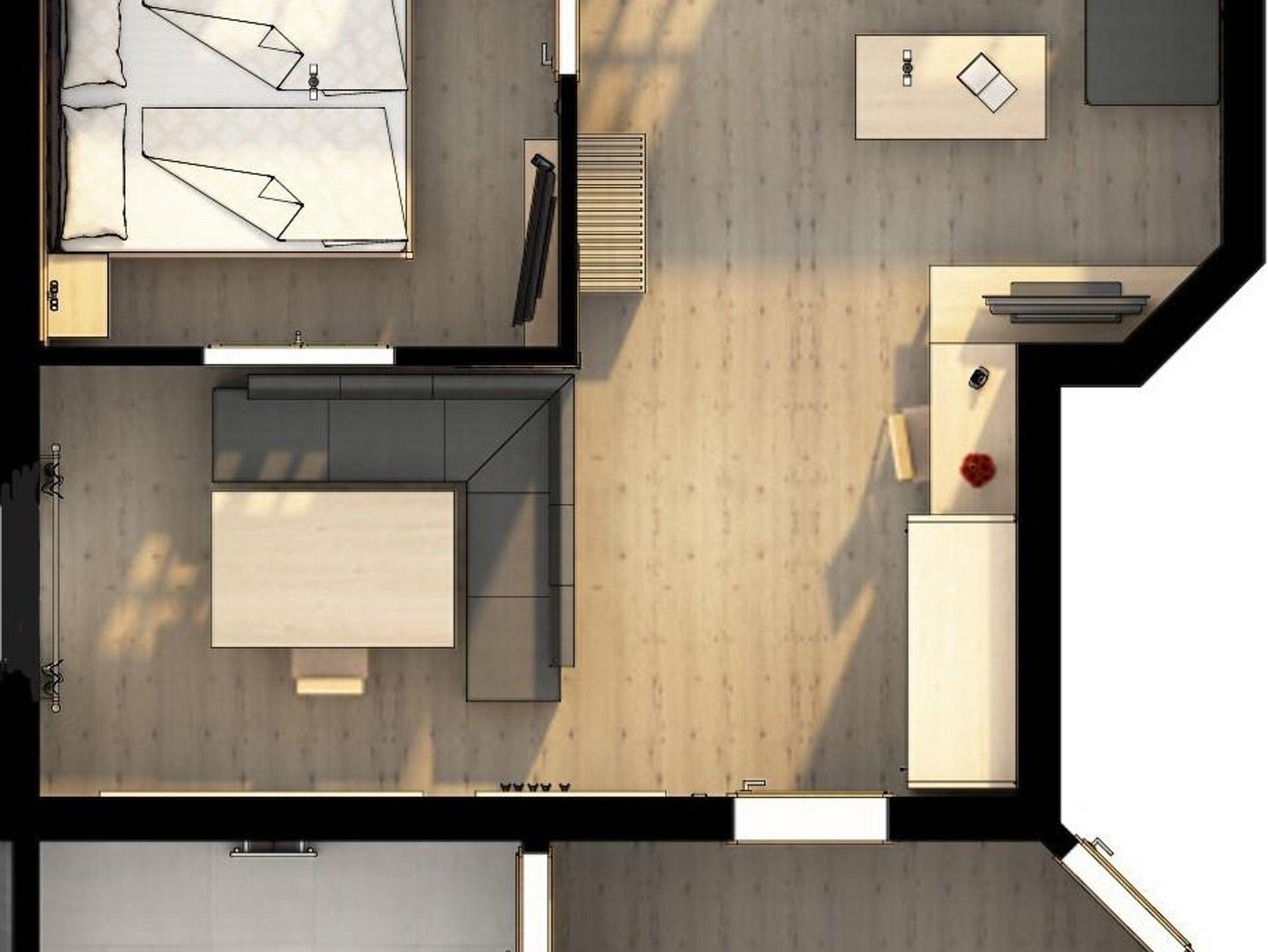 Diese Wohnung hat 1 Schlafzimmer mit Doppelbett , Wohnzimmer mit Schlafsofa, Badezimmer mit Dusche und Toilette, Küche, Essecke und Terrasse (mit ausblick auf die Heuberg-Arena). Wlan, 1 Parkplatz, Bettwäsche und Handtücher sind inkl.
