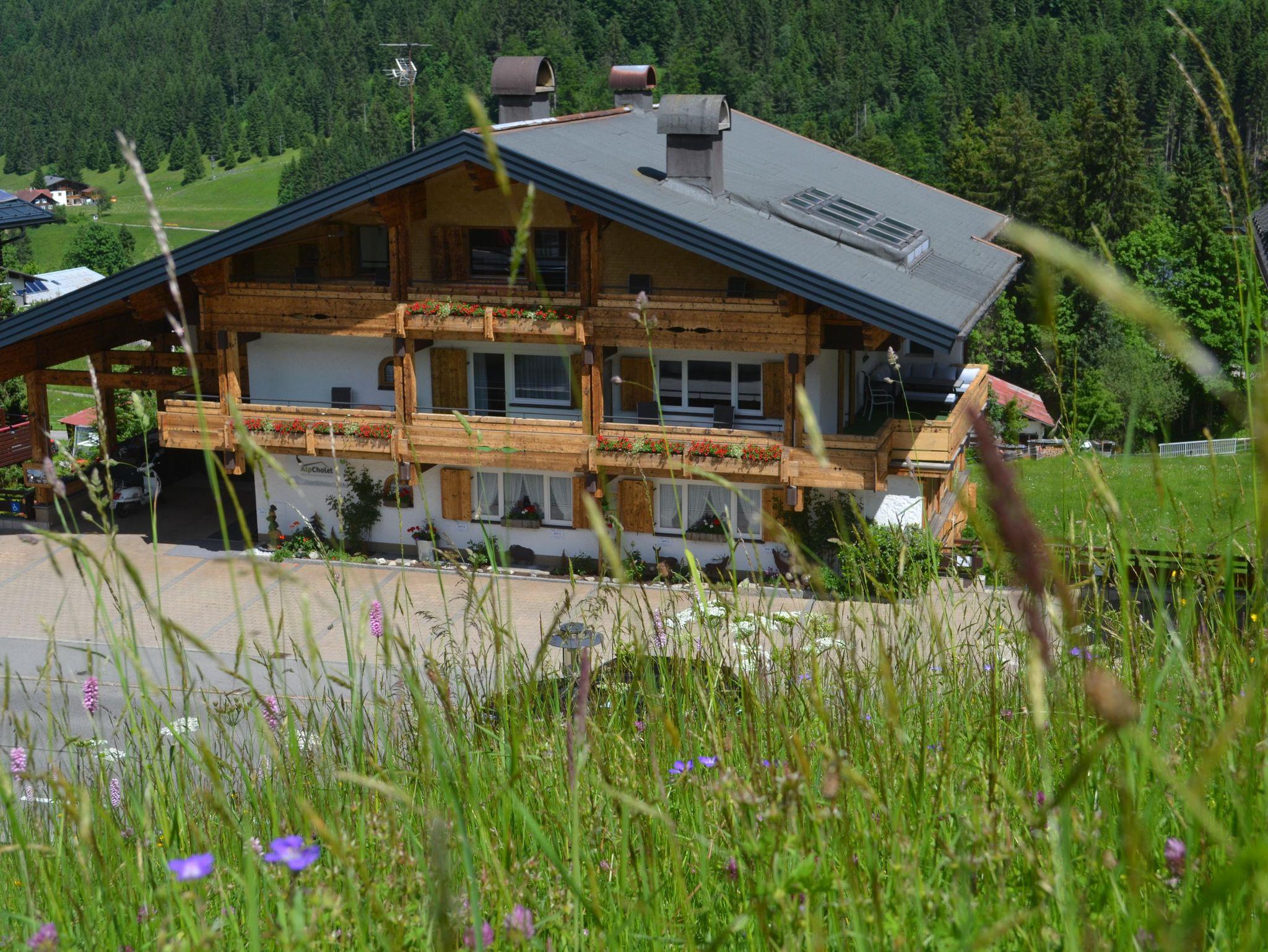 Erleben Sie Ferien im Herzen von Hirschegg. In unmittelbarer Nähe ist das Walserhaus, Bäckerei, Restaurants, Bushaltestelle und Bergbahn.