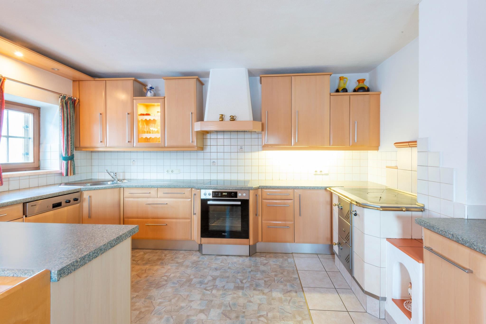 Dette rustikke feriehus for familier og grupper i Hochfilzen i Tyrol giver lyst til en afvekslende ferie midt i bjergene. Beliggende på en fantastisk bjergskråning med udsigt over de tyrolske bjerge, byder den på alt hvad du behøver til en afslappende ski- og sommerferie. Dette er også en fungerende gård, hvor du vil finde dyr i den tilstødende stald om vinteren og på alpine græsgange fra maj til september. Sporty alt er muligt fra boligen. Fra Pillersee-pisten kan du stå på ski lige til hoveddøren. En mountainbikerute og forskellige vandrestier såsom Buchensteinwand med den berømte Jakobskreuz starter lige uden for døren. Om vinteren er forskellige skiområder såsom Kitzbühel, Saalbach Hinterglemm Leogang Fieberbrunn og Steinplatte Waidring inden for rækkevidde med bil. Masser af træ, kakkelovn og skøn opholdsafdeling giver sommerhuset en yderst hyggelig atmosfære. Det åbne køkken er veludstyret og har også en opvaskemaskine. Det in-house skirum er særligt praktisk. Da det er et ældre hus, larmer væggene, og det er muligt, at man kan høre maskinerne i stalden.
