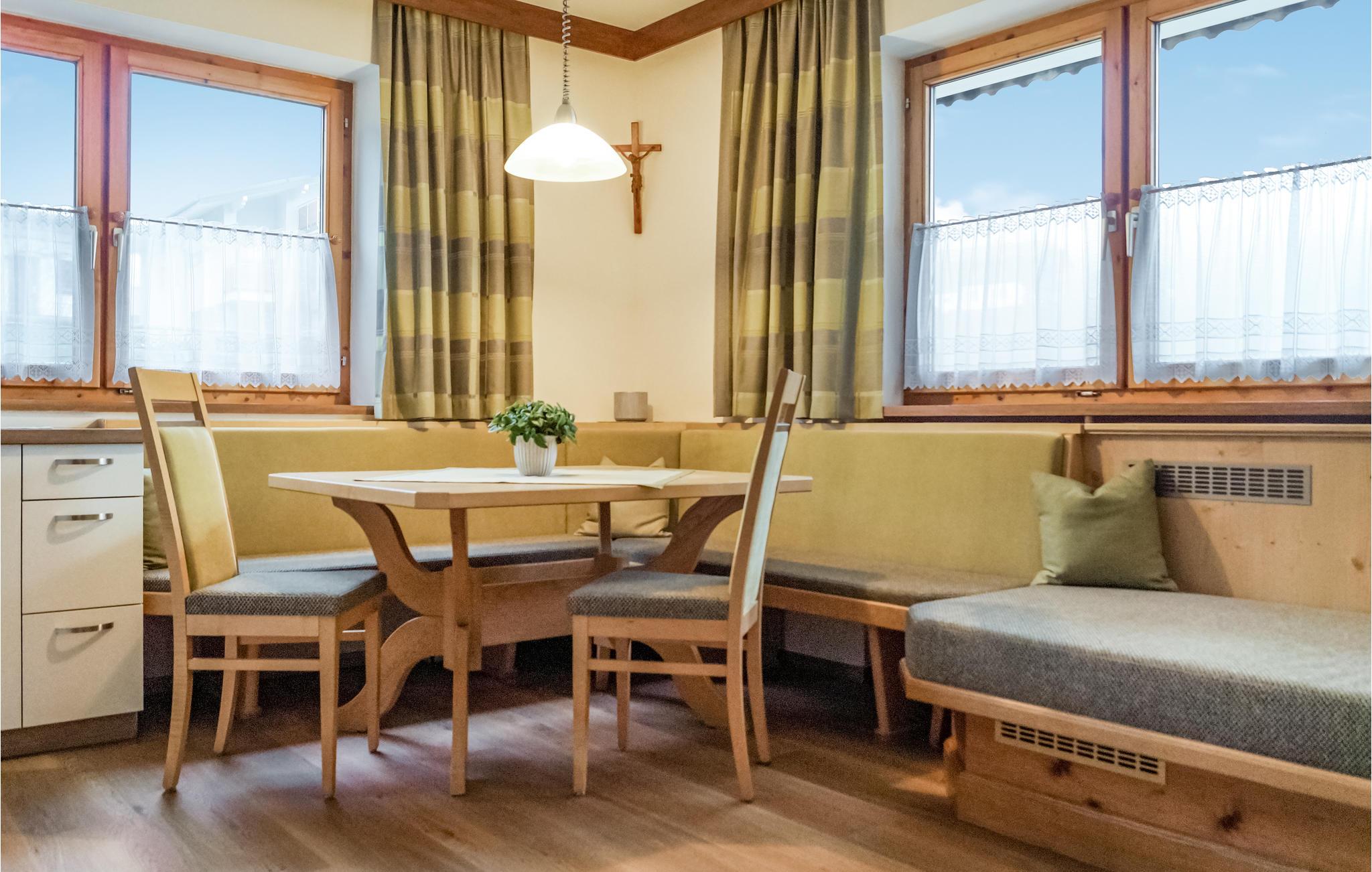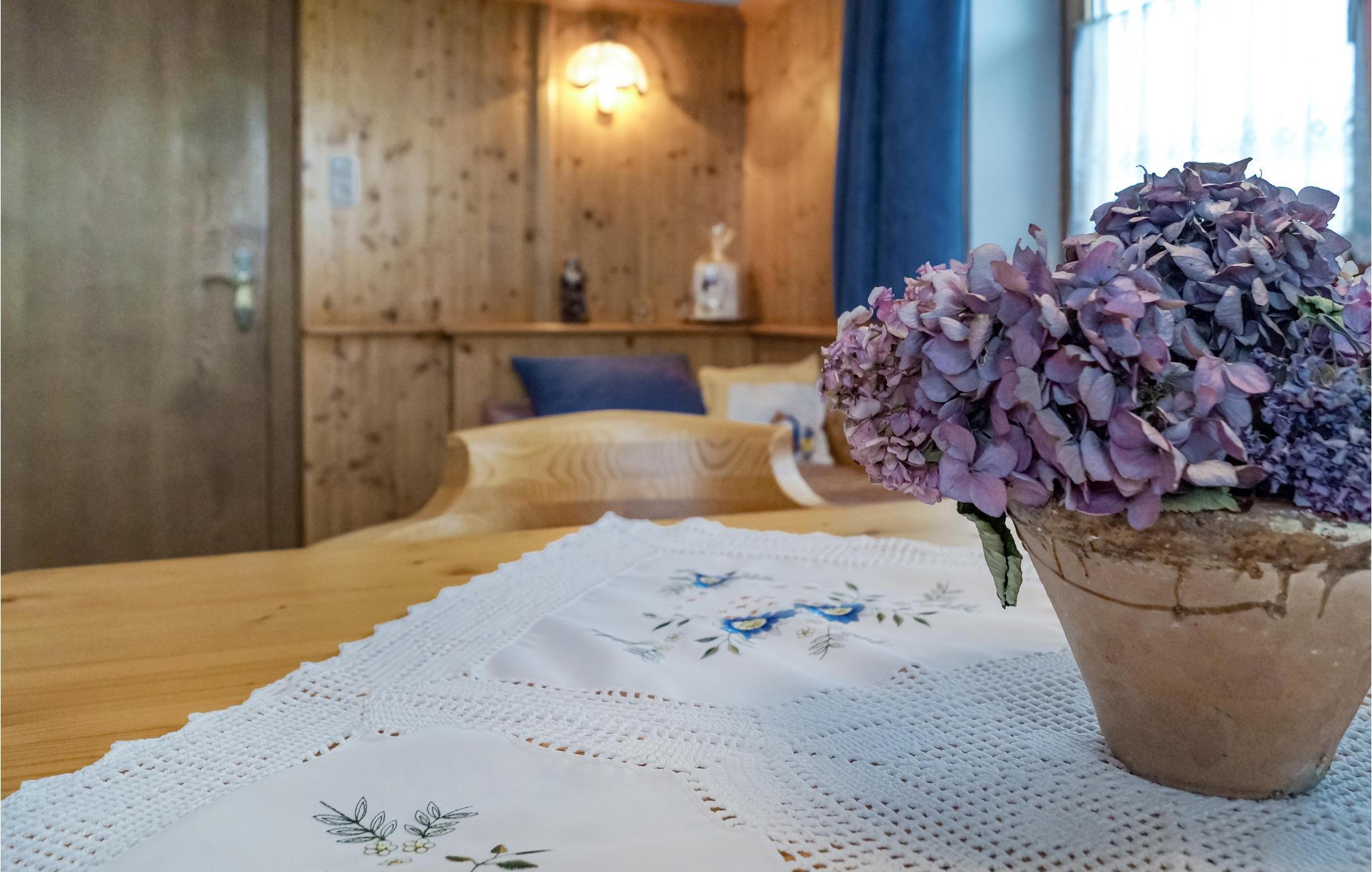 Hvis I elsker bjerglandskaber og lange vandreture, vil I føle jer særligt godt tilpas i denne tiltalende lejlighed på en gård med den bedste beliggenhed for uforglemmelige naturoplevelser. Alt er klar til at I kan slappe af i hyggelige rammer efter en aktiv dag i naturen, de rustikke møbler og moderne udstyr sørger for en behagelig atmosfære. Tænd op i brændeovnen, lyt til flammernes knitren sammen og læg ruten til næste dag.