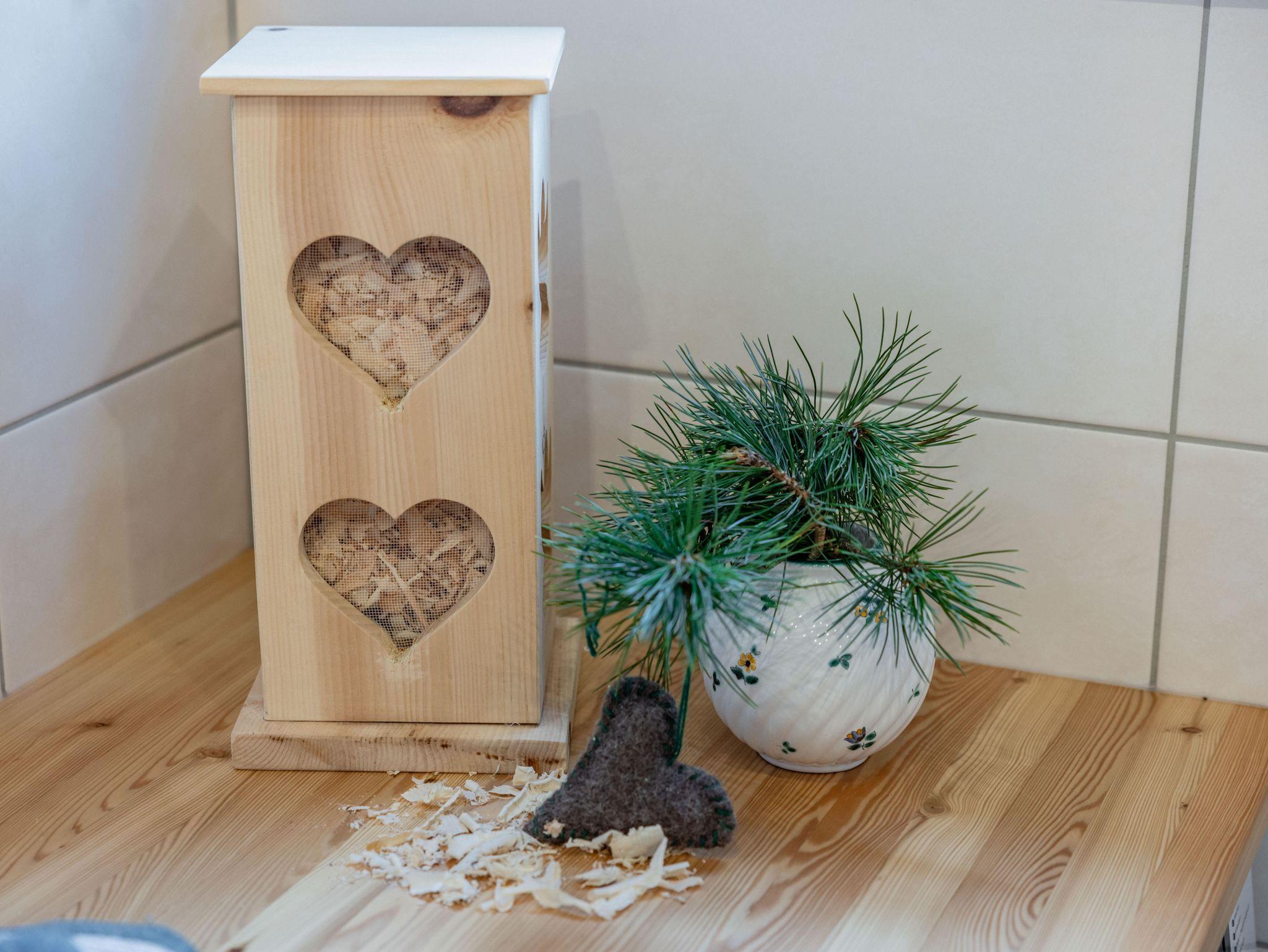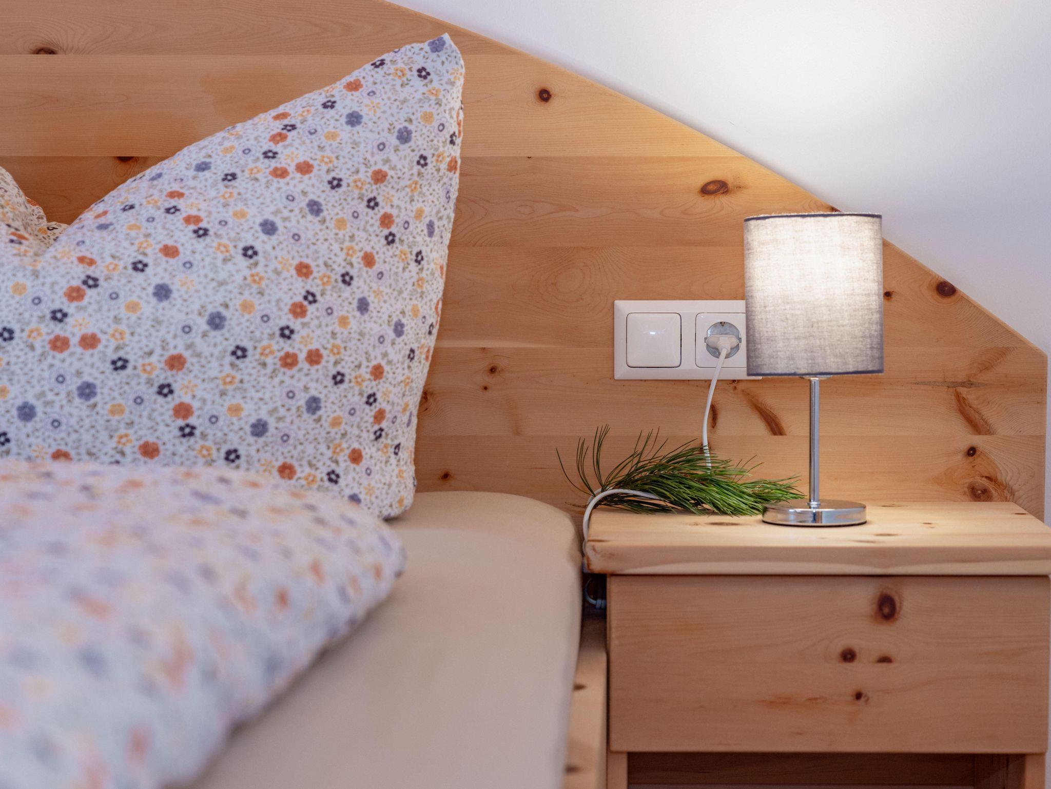 Unsere liebevoll eingerichtete Hütte wurde mit regionalen Materialien erbaut und verfügt über zwei gemütliche Zirbenschlafzimmer. Ein Schlafzimmer ist mit einem Doppelbett und einer ausziehbaren Couch ausgestattet. Das zweite Schlafzimmer bietet ein Doppelbett sowie ein Stockbett mit Matratzen in den Maßen 90 x 200 cm und 140 x 200 cm. Sämtliche Einrichtungsgegenstände wurden aus regionalem Zirbenholz gefertigt. Die Küche wurde von einem Tischler aus dem Nachbarort eigens für die Hütte angefertigt und besticht durch ihre hochwertige Verarbeitung.