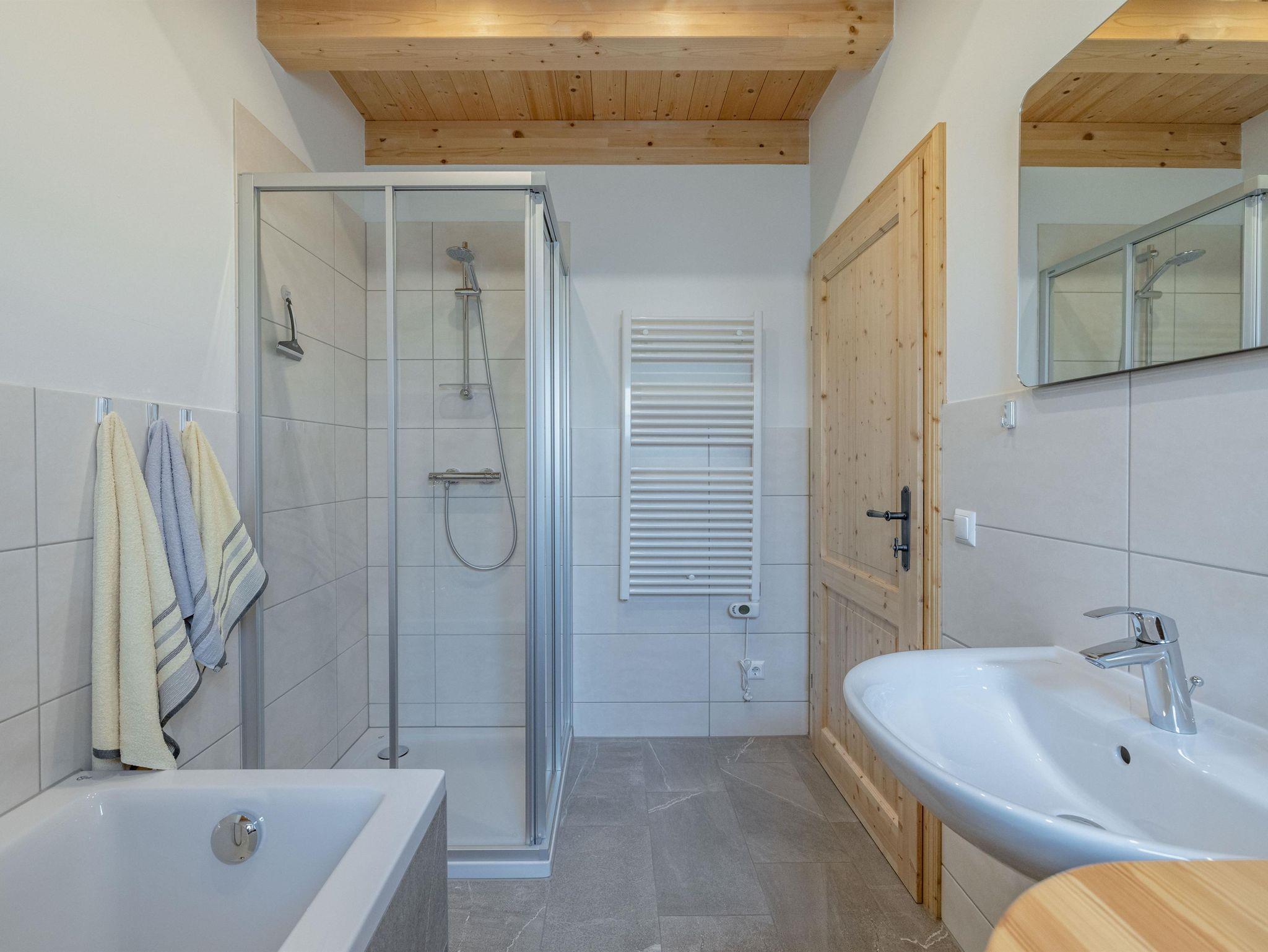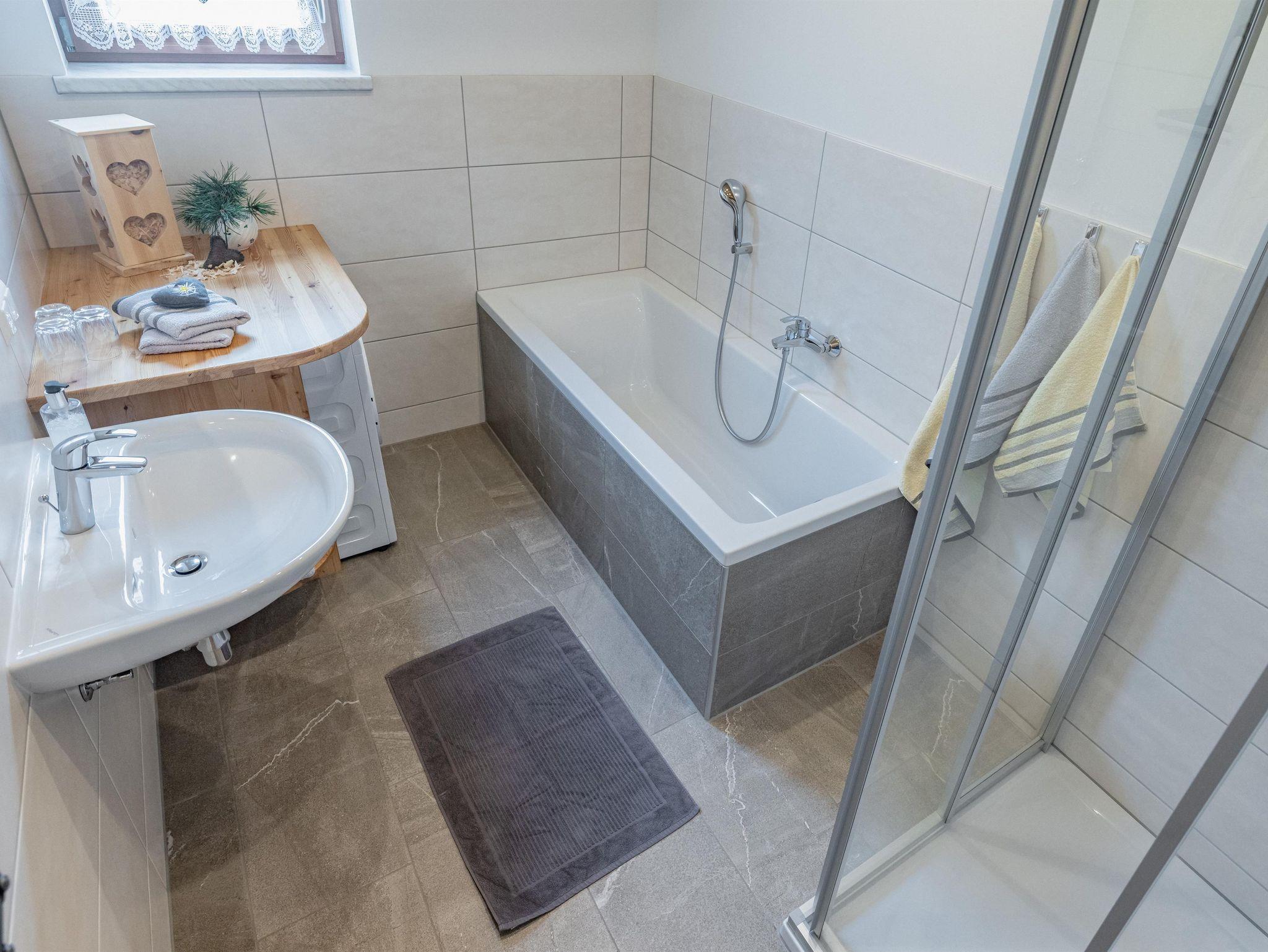 Im Erdgeschoss sowie im Obergeschoss gibt es jeweils eine Toilette. Das Badezimmer verfügt sowohl über eine Badewanne als auch eine Dusche. Auf Wunsch stellen wir gegen einen kleinen Aufpreis ein Gitterbett zur Verfügung. Bettwäsche sowie Handtücher (zwei Stück pro Person) erhaltet ihr kostenlos für euren Aufenthalt.