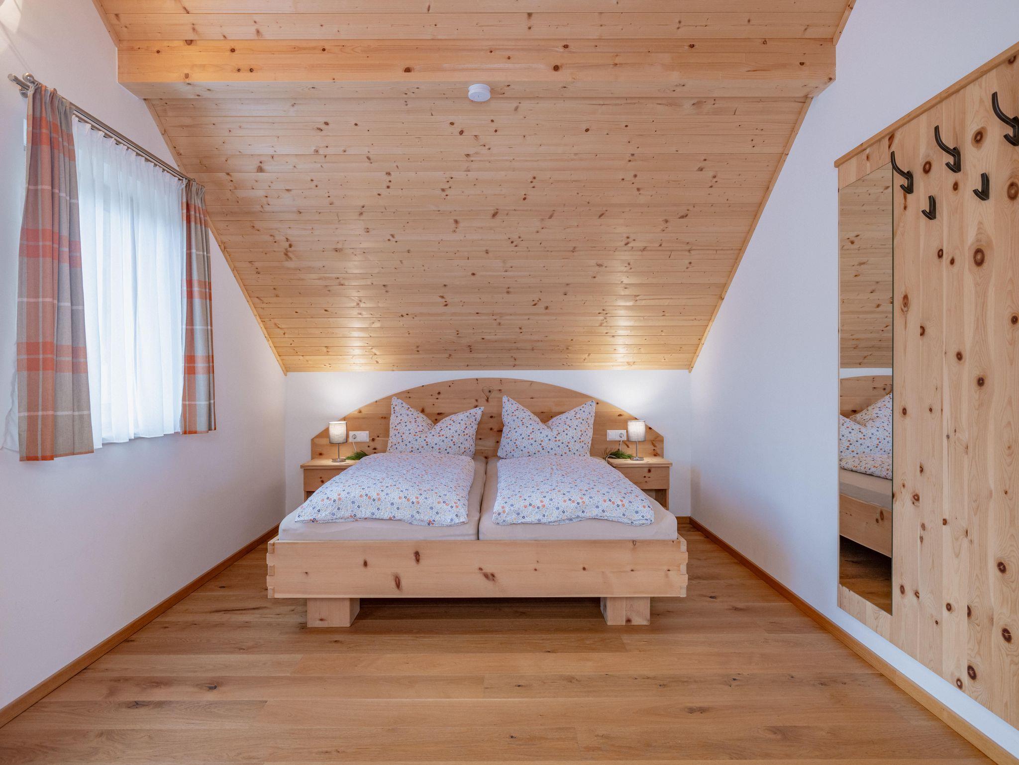 Zirbenholz ist nicht nur ein Baum, sondern ein Wundermittel für das Raumklima. Es verströmt einen angenehmen Duft und seine gesundheitlichen Vorteile sind seit langem bekannt. Studien zeigen, dass Zirbenholz im Schlafzimmer den Schlaf verbessert und zur Entspannung beiträgt. Erlebt diese Vorteile in unseren beiden liebevoll gestalteten Zirben-Schlafzimmern, die Platz für bis zu 8 Personen bieten.