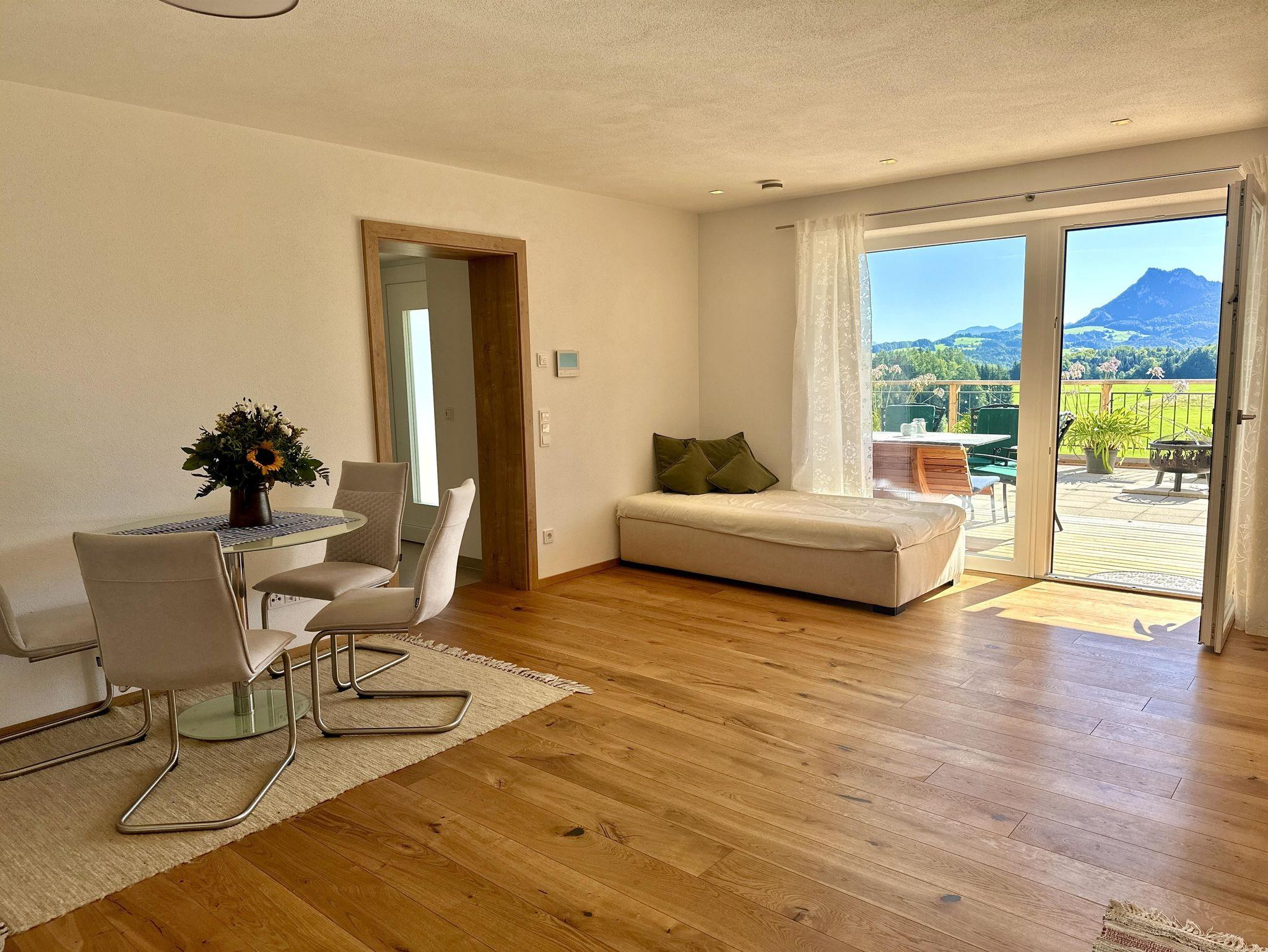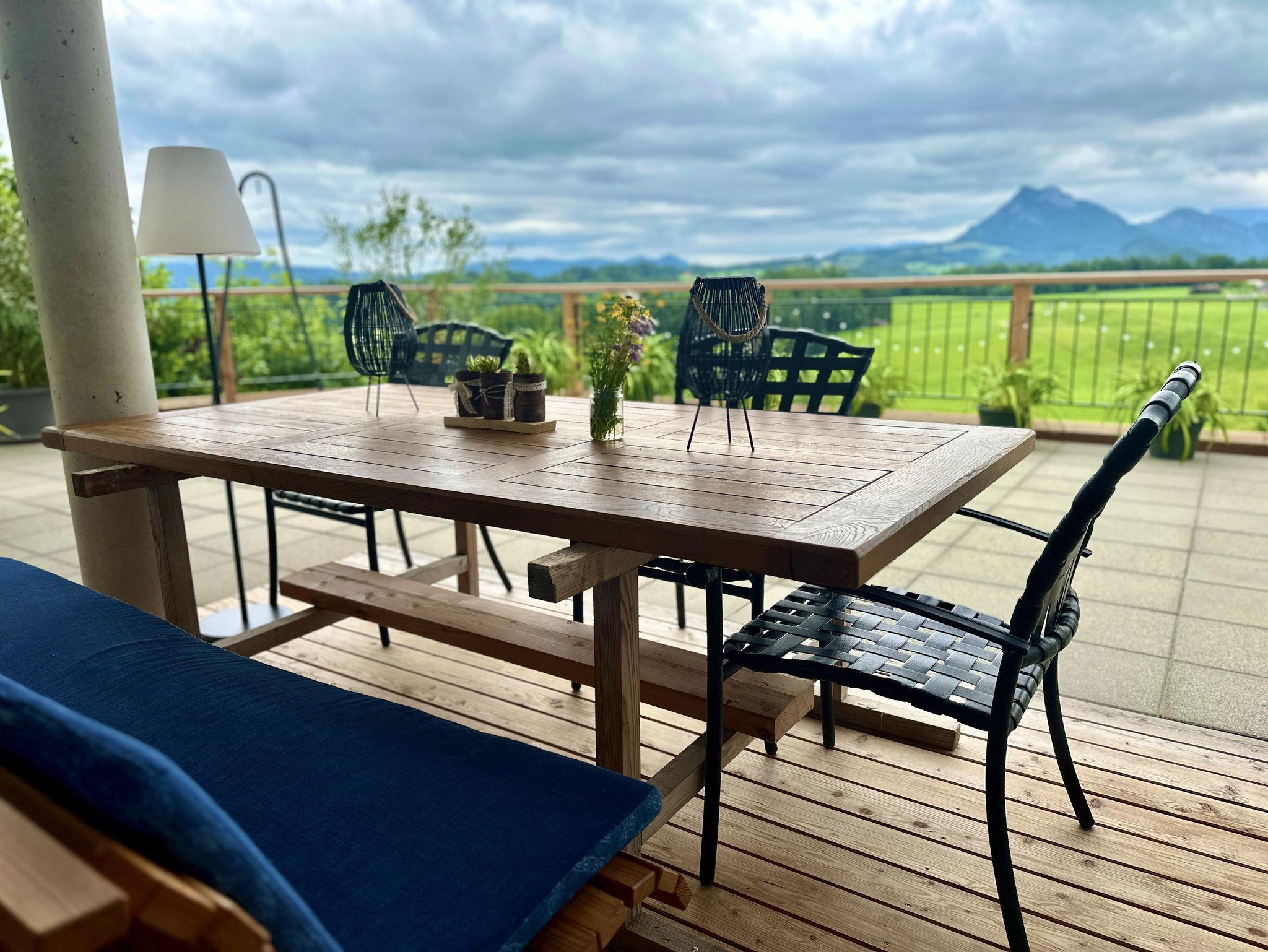 Willkommen in unserer neu erbauten Ferienwohnung in Hof bei Salzburg, ideal gelegen nahe dem Fuschlsee und nur eine kurze Busfahrt von der Mozartstadt Salzburg entfernt. Profitieren Sie von der regelmäßigen Busverbindung im 15-Minuten-Takt direkt vor der Tür. Genießen Sie die atemberaubende Aussicht auf das Salzkammergut von unserer Terrasse aus und erkunden Sie die nahen Wander- und Radwege. Als besonderes Extra ist der Eintritt am Naturbadestrand von Hof und das Mobilitätsticket im Preis inbegriffen. Die Wohnung bietet eine moderne Küche, ein gemütliches Schlafsofa, ein separates Schlafzimmer mit Boxspringbett und kostenloses WLAN – perfekt für alle, die sowohl die Natur als auch kulturelle Erlebnisse schätzen. Eröffnung Sommer 2025.