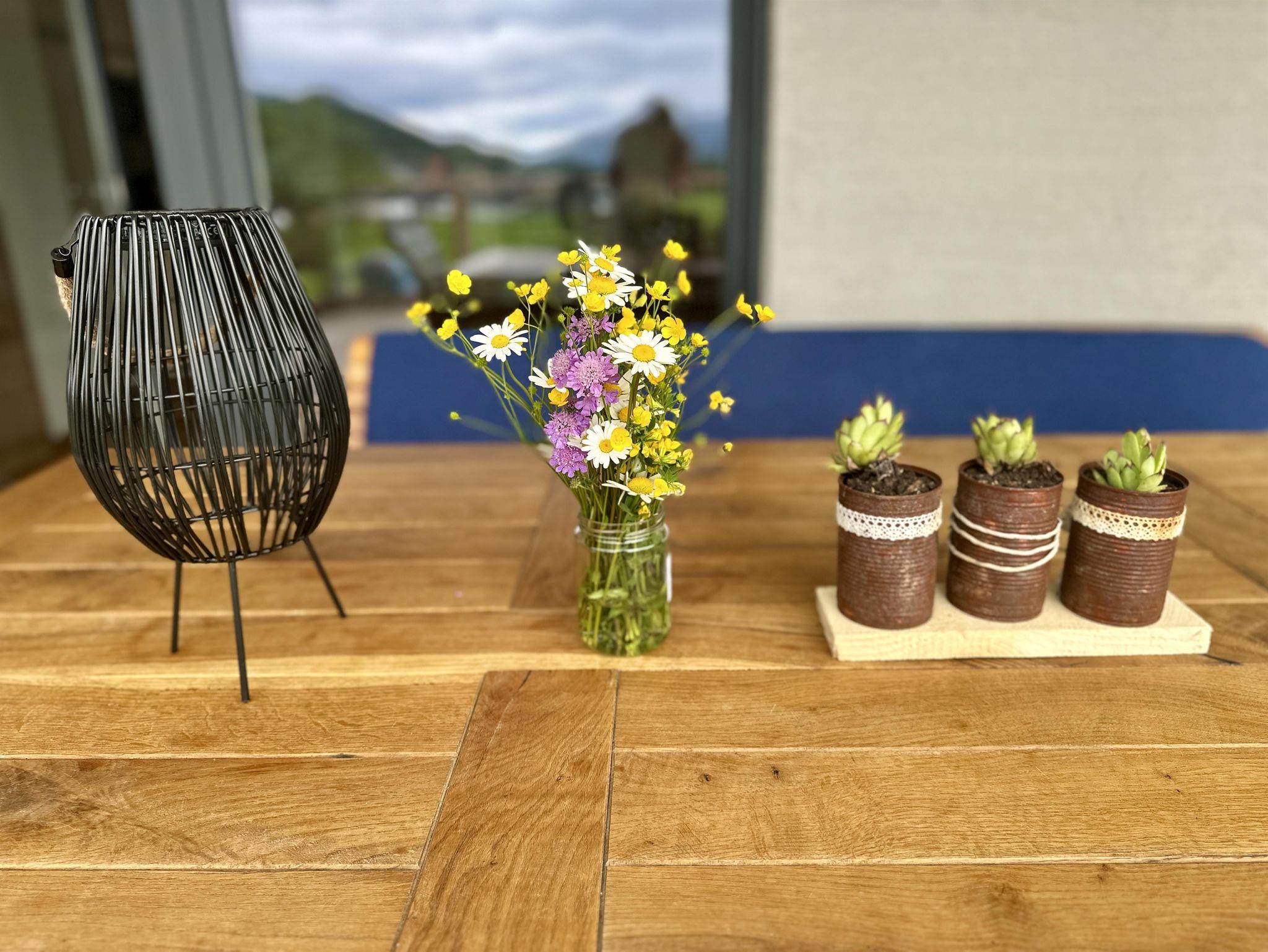 Entdecken Sie unser charmantes Ferienapartment, das mit seiner großen Terrasse ideal für morgendliche Frühstücke unter den ersten Sonnenstrahlen ist. Später können Sie auf den gemütlichen Sonnenliegen entspannen und die Seele baumeln lassen. Die Wohnung bietet eine voll ausgestattete Küche mit Backofen, Kühlschrank, großem Gefrierfach, Kaffeemaschine, Wasserkocher und Kochgeschirr, die keine Wünsche offen lässt. Kostenloses WLAN steht Ihnen während Ihres Aufenthaltes zur Verfügung. Das gemütliche Zimmer mit Boxspringbett und Blick auf die atemberaubende Bergwelt lädt zum Verweilen und Genießen ein. Perfekt für alle, die Komfort lieben und die Natur direkt vor der Haustür schätzen.