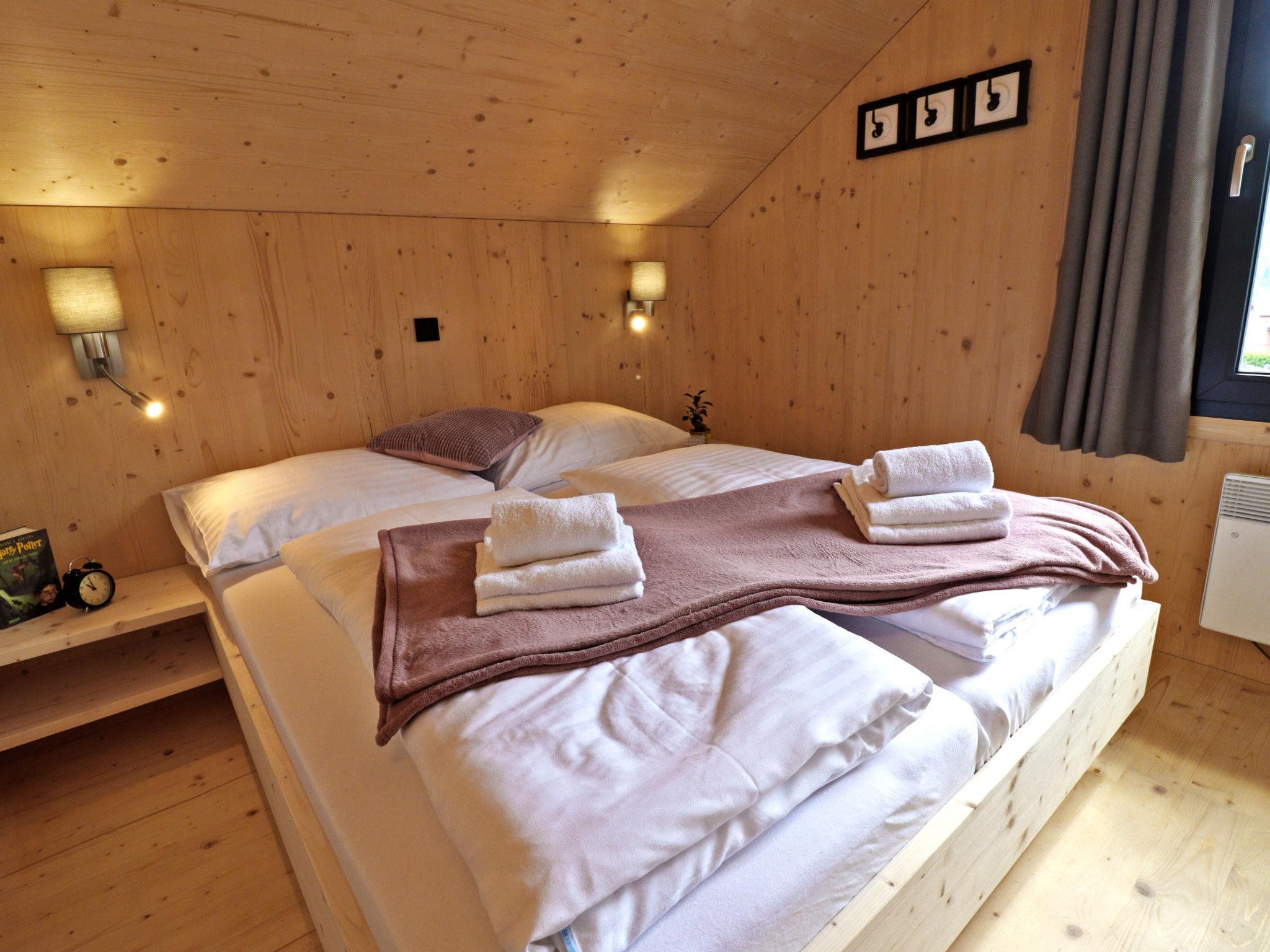 "Premium 47 Sauna&Sprudelbad", 5-room chalet 100 m2 on 2 levels. Spacious and bright, comfortable and tasteful furnishings: entrance hall. Living/dining room with dining table, satellite TV, flat screen and gas heater. 4 double bedrooms. Open kitchen (oven, dishwasher, 4 ceramic glass hob hotplates, microwave, electric coffee machine). Bath/shower, shower/WC. Terrace. Terrace furniture. Very beautiful view of the mountains and the countryside. Facilities: Internet (WiFi, free). Parking at the house. Please note: non-smoking house. Smoke alarm.
