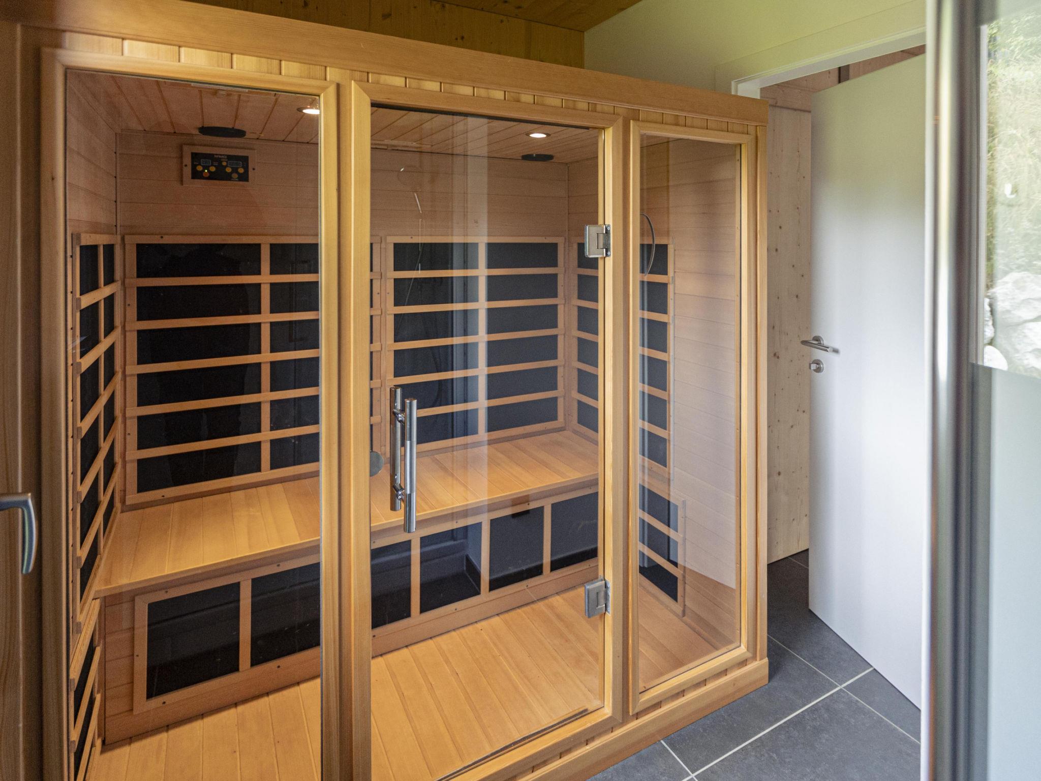 "Superior 68 mit IR-Sauna", 4-room house 100 m2 on 2 levels. Bright, comfortable and tasteful furnishings: living/dining room with dining table, satellite TV, flat screen and gas heater. 3 double bedrooms. Open kitchen (oven, dishwasher, 4 ceramic glass hob hotplates, microwave, electric coffee machine). Bath/WC. Wooden floors. Balcony or small terrace. Terrace furniture. Very beautiful view of the mountains and the countryside. Facilities: sauna. Internet (WiFi, free). Parking at the house. Please note: non-smoking house.
