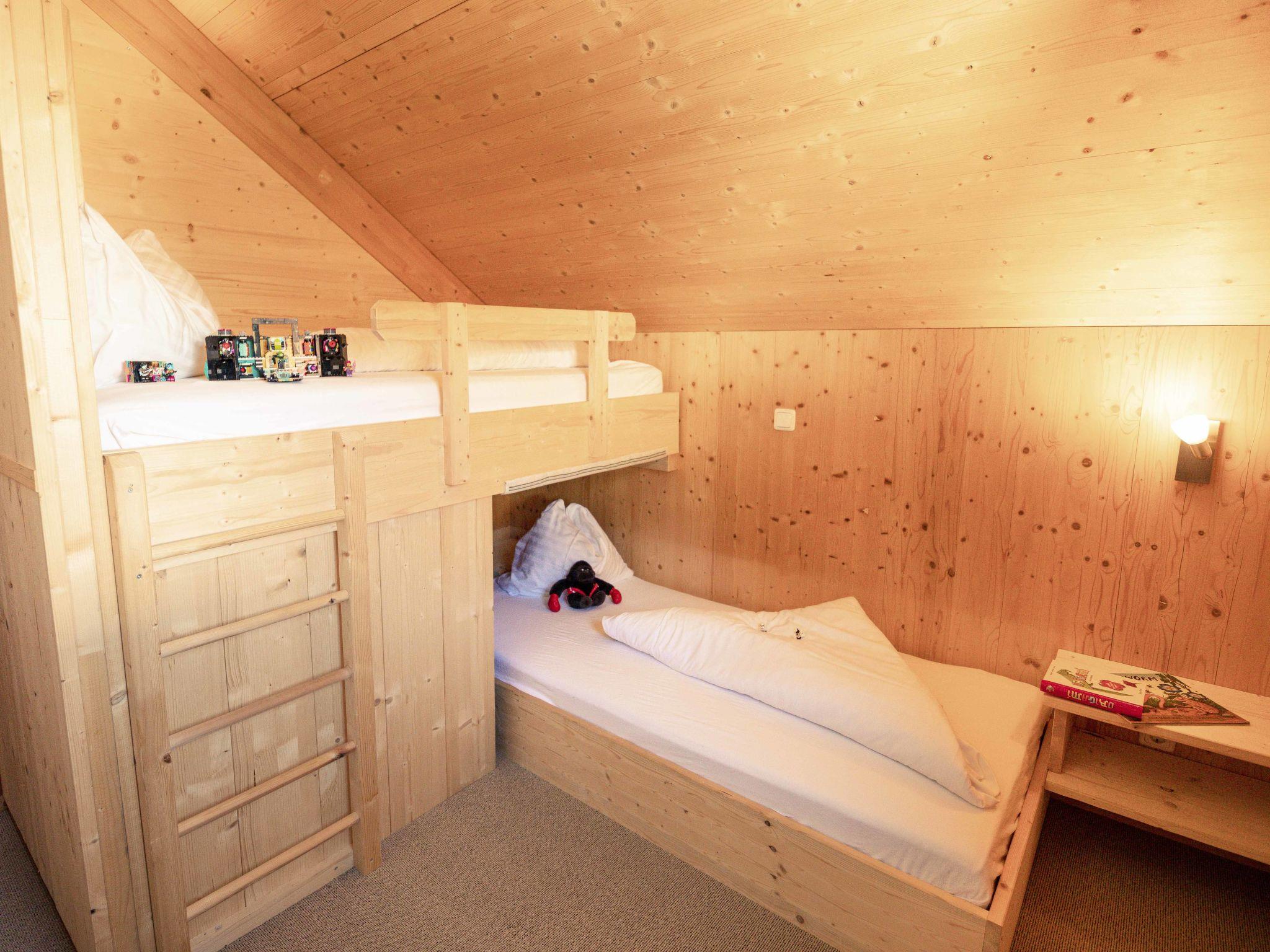 "Premium 14 mit IR-Sauna", 6-room apartment 145 m2. Bright, comfortable and tasteful furnishings: 4 double bedrooms. 1 room with 1 x 2 bunk beds. Living/dining room with dining table, satellite TV and flat screen. Open kitchen (oven, dishwasher, 4 ceramic glass hob hotplates, toaster, kettle, microwave, electric coffee machine). 3 showers/WC, sep. WC, Sauna. Terrace, small garden. Terrace furniture. Very beautiful view of the mountains and the countryside. Facilities: Internet (WiFi, free). Please note: non-smokers only. The sauna is an infrared cabin!