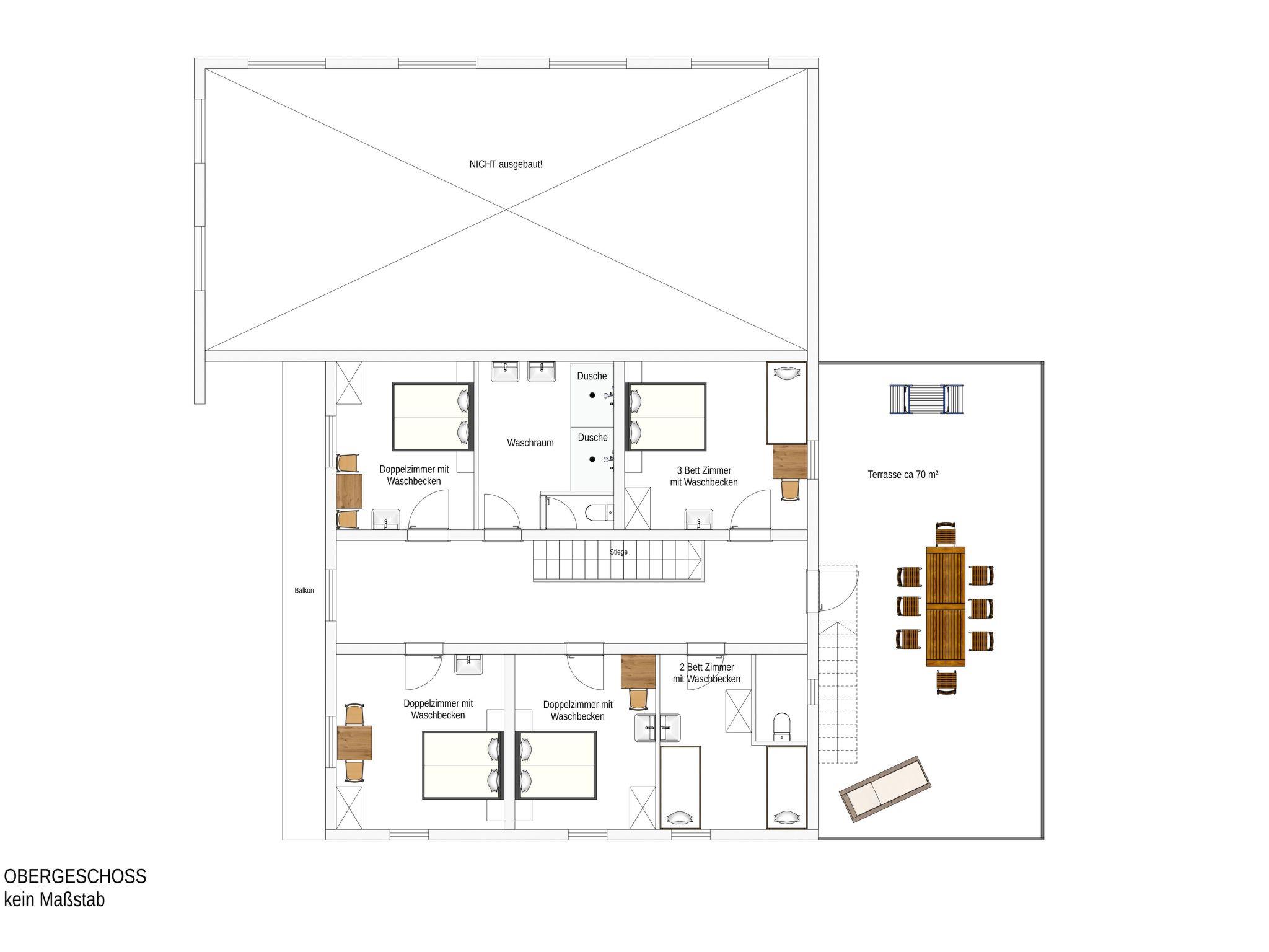 The rooms are divided over 3 floors. Ground floor lounge with kitchen area, sauna with showers. 2 WCs, 2 extra showers, 1 twin room, ski room, 1 FLOOR. 1 triple room, 4 twin rooms with WC. 1 extra WC, shower room 2 showers extra WC. 2 floor 3 3-bed rooms. 2 2-bed rooms with wb. Extra wc, shower room 2 shower cubicles