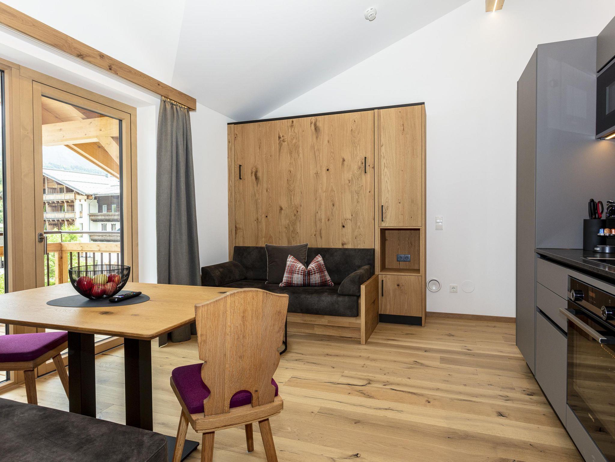 Ferienwohnung Nest - Die Liebevolle Unsere liebevoll eingerichtete Ferienwohnung Nest im 2. Stock des Neubaus bietet mit ihren 35 m² Platz für ein Paar, aber auch für eine Familie oder Freunde - nämlich bis zu 4 Personen. Der gemütliche Balkon mit 13 m² bietet einen wunderschönen Ausblick auf die Pinzgauer Bergwelt.
