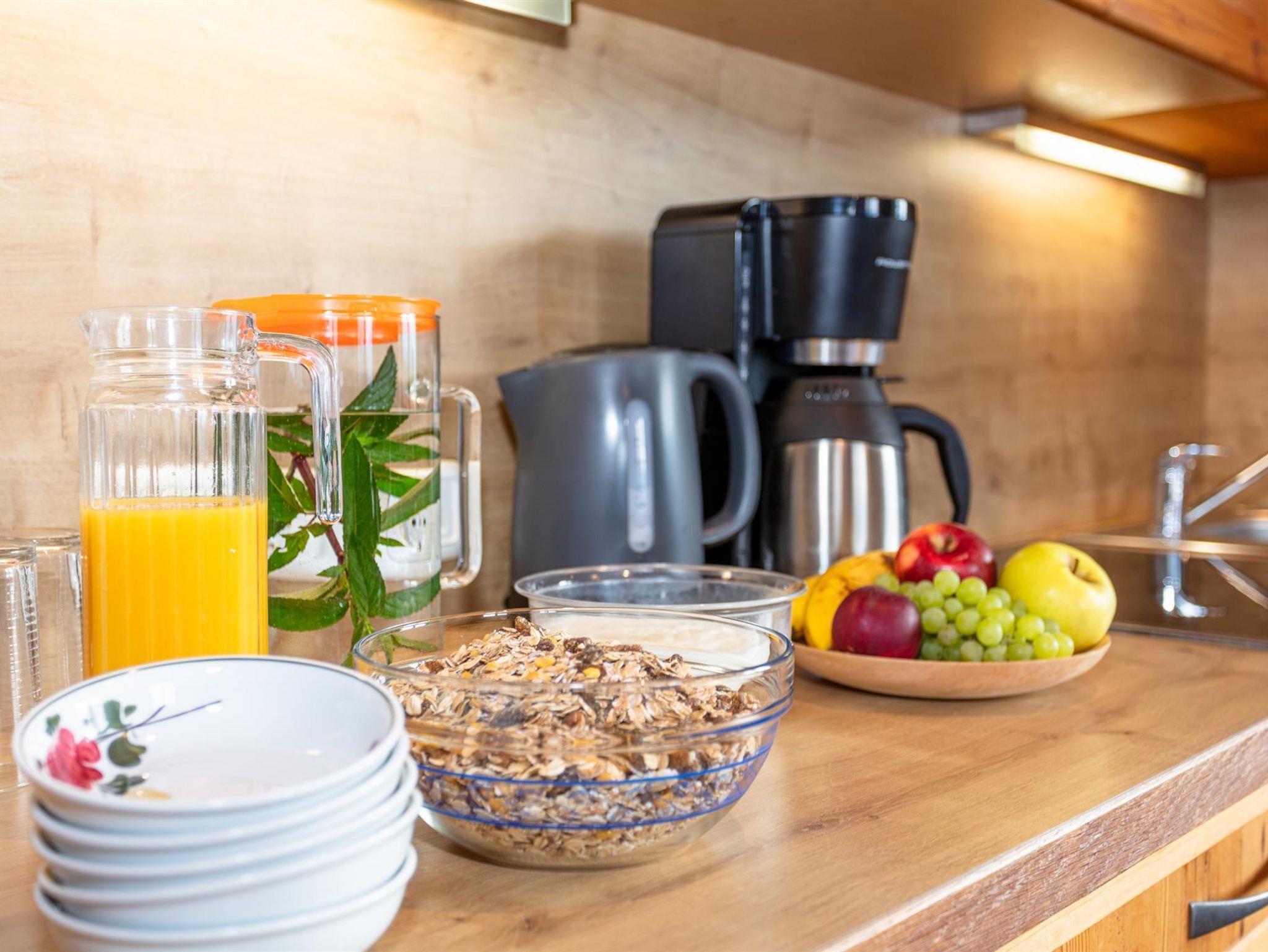 Ihren ereignisreichen Urlaubstag können Sie im Aufenthaltsraum am warmen Kachelofen ausklingen lassen. Auch eine gut ausgestattete Gästeküche steht zu Ihrer Verfügung hier können Sie Zeit in geselliger Runde verbringen.