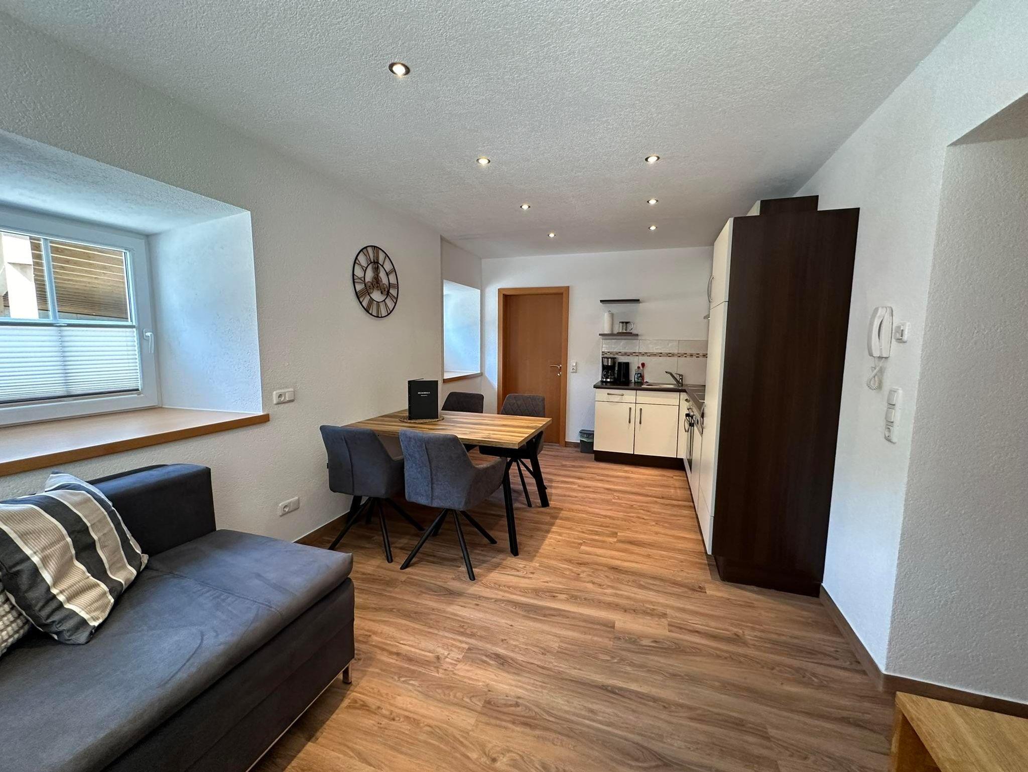 Unser Apartment 1 bietet Platz für bis zu 4 Personen. Sie liegt ebenerdig im Zentrum von Hollersbach. Es umfasst einen Wohnraum mit Schlafsofa, Küche und Essbereich sowie ein Badezimmer mit Dusche und WC.