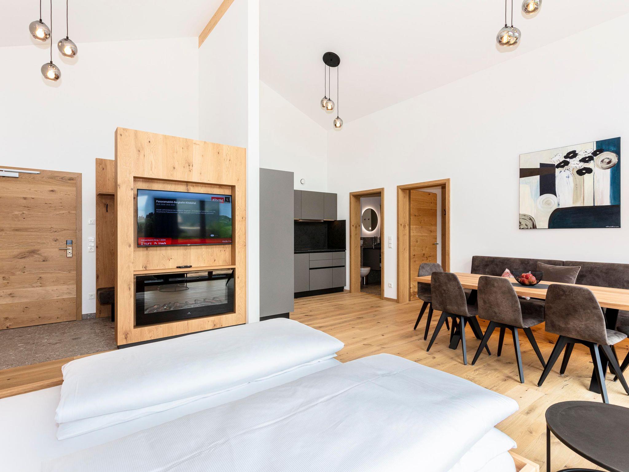 Ferienwohnung Baum - Die Lässige Penthousewohnung Die Ferienwohnung Baum im 2. Stock im Neubau bietet mit ihren lässigen 72 m2 perfekt Platz für bis zu 8 Personen. Zwei separate Schlafzimmer sorgen bei Bedarf für Privatsphäre. Zwei Bäder sorgen für einen reibungslosen Ablauf am Morgen. Der Ausblick vom 20 m2 großen Balkon in die Berge ist ein Traum!