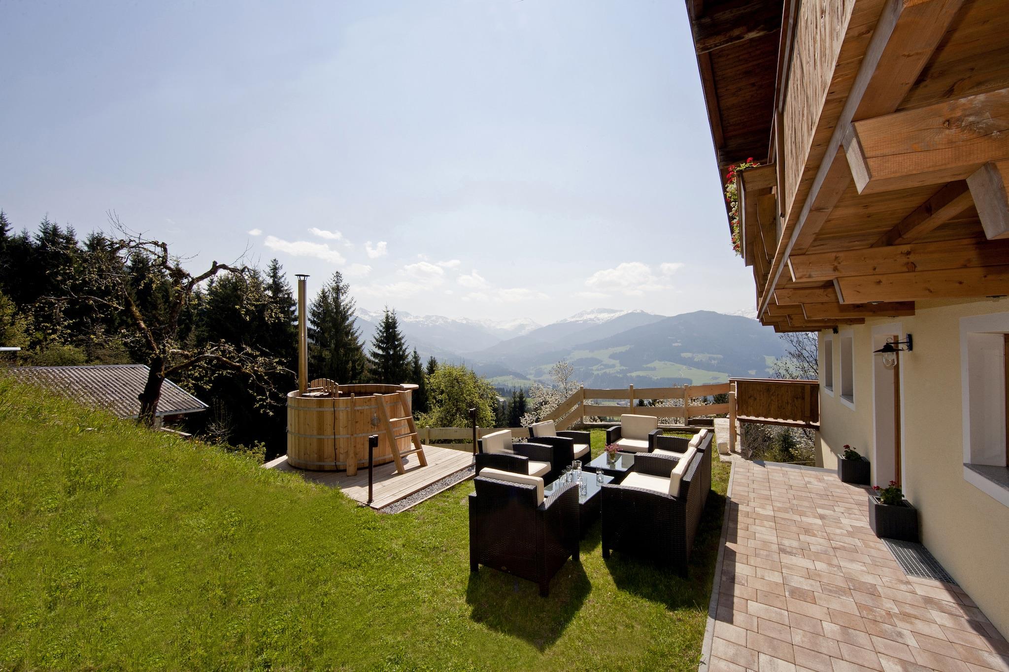 Denne smukke fritliggende hytte til maks. 11 personer ligger i Hopfgarten im Brixental i Tyrol, midt i bjergene i 1030 meters højde, og byder på en betagende udsigt over Kitzbühel-alperne. Hytten har en rummelig stue med en sovesofa, et fuldt udstyret køkken med spisebord, 4 store soveværelser (et med en ekstra enkeltseng) og 2 moderne badeværelser. Du kan parkere direkte i den underjordiske parkeringsplads, hvor der også er et skiopbevaringsrum. Hytten byder også på en smuk have med terrasse, hvor der også er et brændefyret spabad. Hopfgarten i Brixental med det imponerende panoramaudsigt Hohe Salve-bjerget er et af de mest solrige samfund i Kitzbühel-alperne og byder på talrige vandre- og cykelstier samt udflugtsmål i de varierede tyrolske bjerge. Panoramabjerget Hohe Salve er forbundet med Wilder Kaiser-bjergbestignings- og vintersportsparadiset. SkiWelt Wilder Kaiser-Brixental-skiområdet i Hopfgarten im Brixental har 90 lifte, over 70 hytter, flere forlystelsesparker, skifilmstier og tilbyder sammen med det tilstødende KitzSki-skiområde i alt over 500 kilometer pister. Bemærk venligst, især om vinteren, at de sidste 3 km til hytten er på en stejl asfalteret bjergvej, der kræver snekæder. Bemærk venligst: Der er et gebyr for brug af vaskemaskine og tørretumbler. Angiv venligst din hunds tilstedeværelse ved booking, så vi kan imødekomme dig i overensstemmelse hermed.