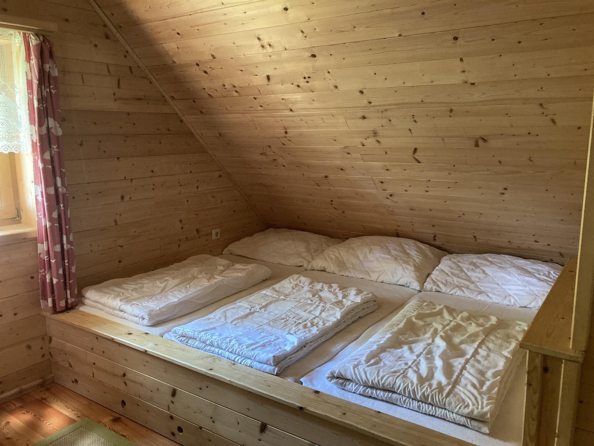 Verbringen Sie Ihren Urlaub in unserem Ferienhaus mit Almhüttencharakter, ausgestattet mit einem Doppelzimmer, zwei Drei-Bett-Zimmern, Küche, Sat-TV, Dusche/WC und einer Terrasse. Im Sommer können Sie die Seele im Garten baumeln. Als Hauptheizung dient ein Holzofen zum Selberheizen.
