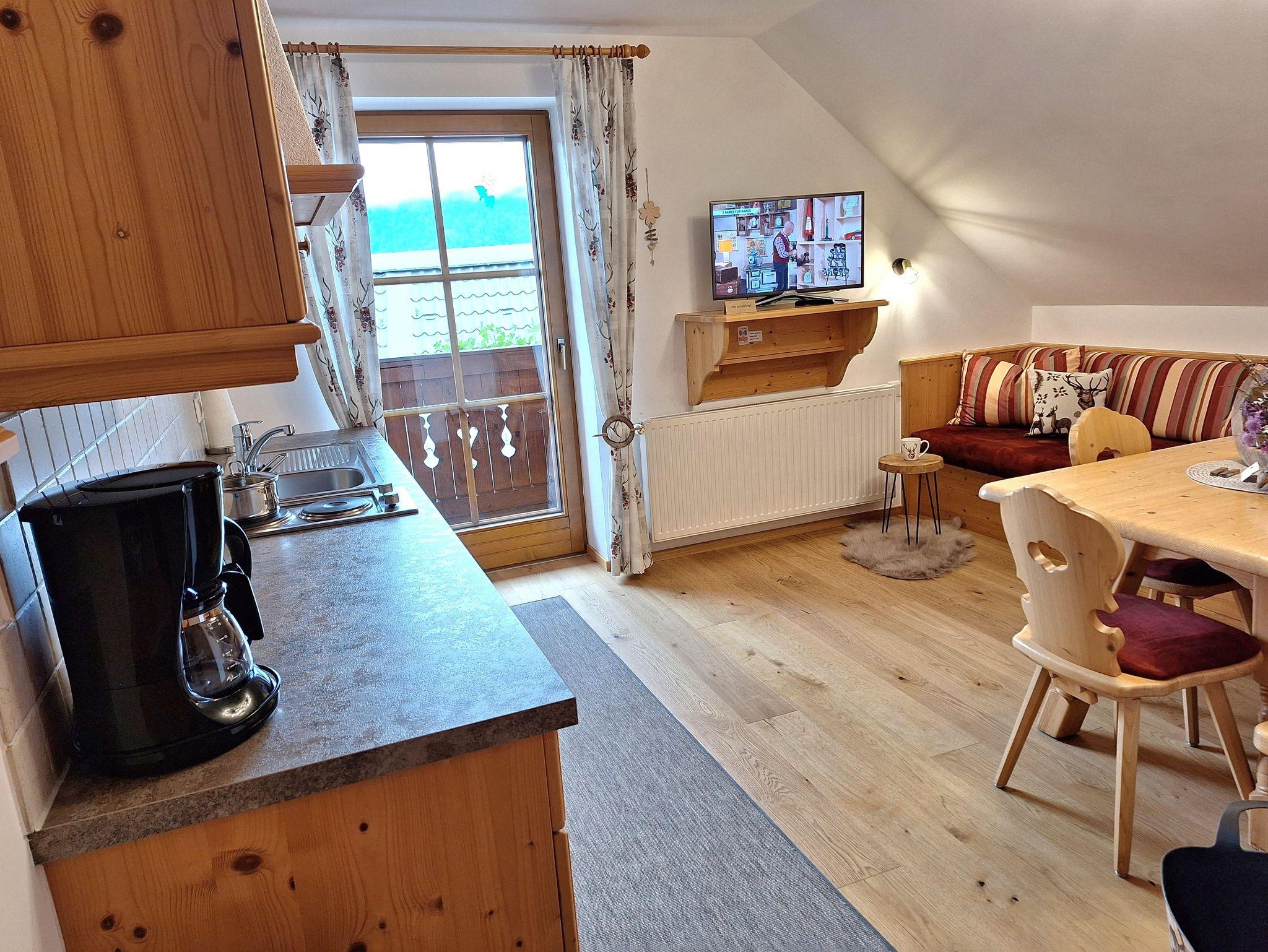 Liebevoll eingerichtete Ferienwohnung 55m² mit 2 getrennten Schlafzimmern, Südbalkon, Parkettböden, helle Holzmöbel, Du und WC getrennt, Vorraum mit Garderobe, voll ausgestattete Küche mit Geschirrspüler, Radio, Sat-Tv, W-lan kostenlos, Bettwäsche, Handtücher und Geschirrtücher inklusive.