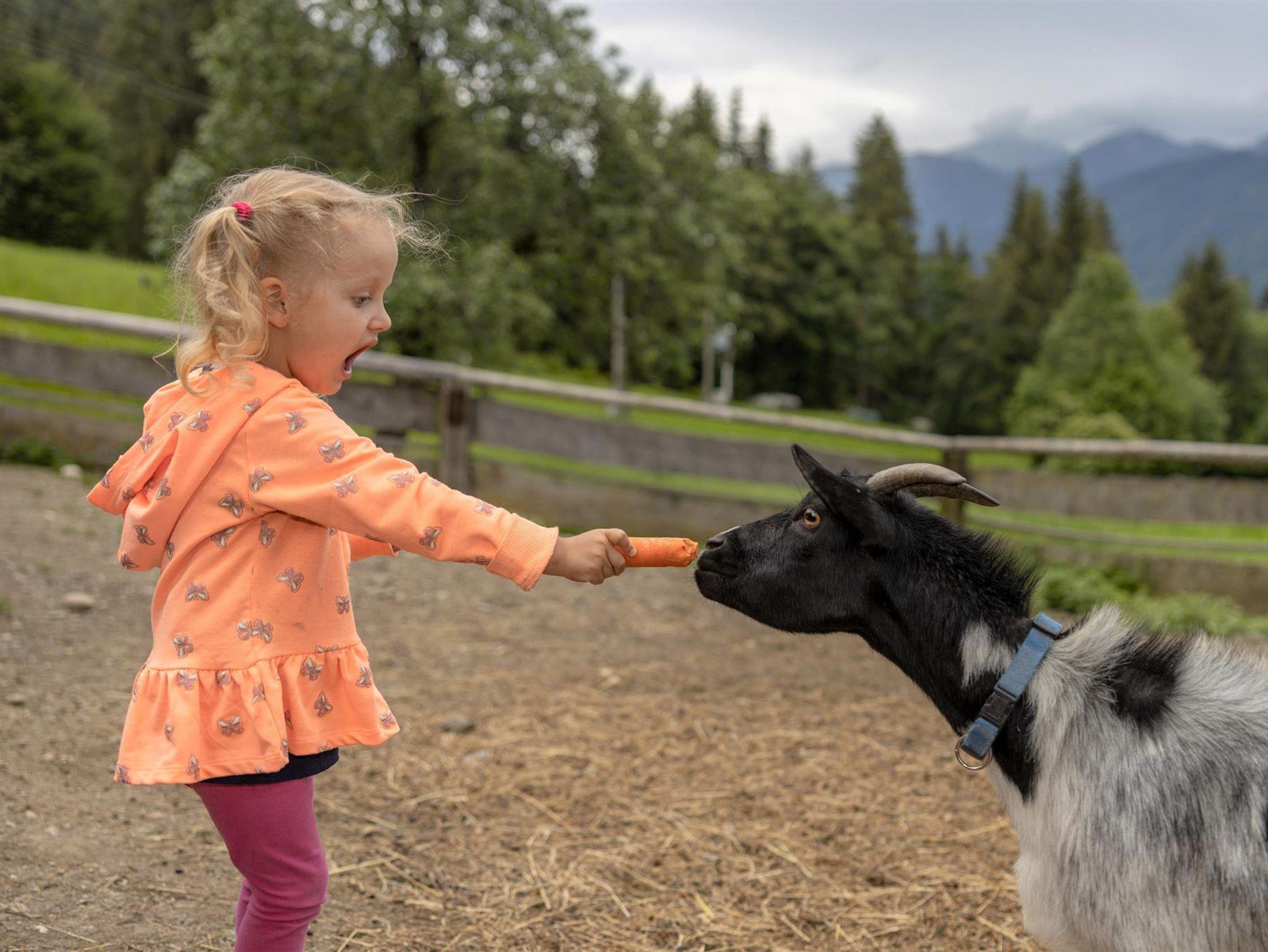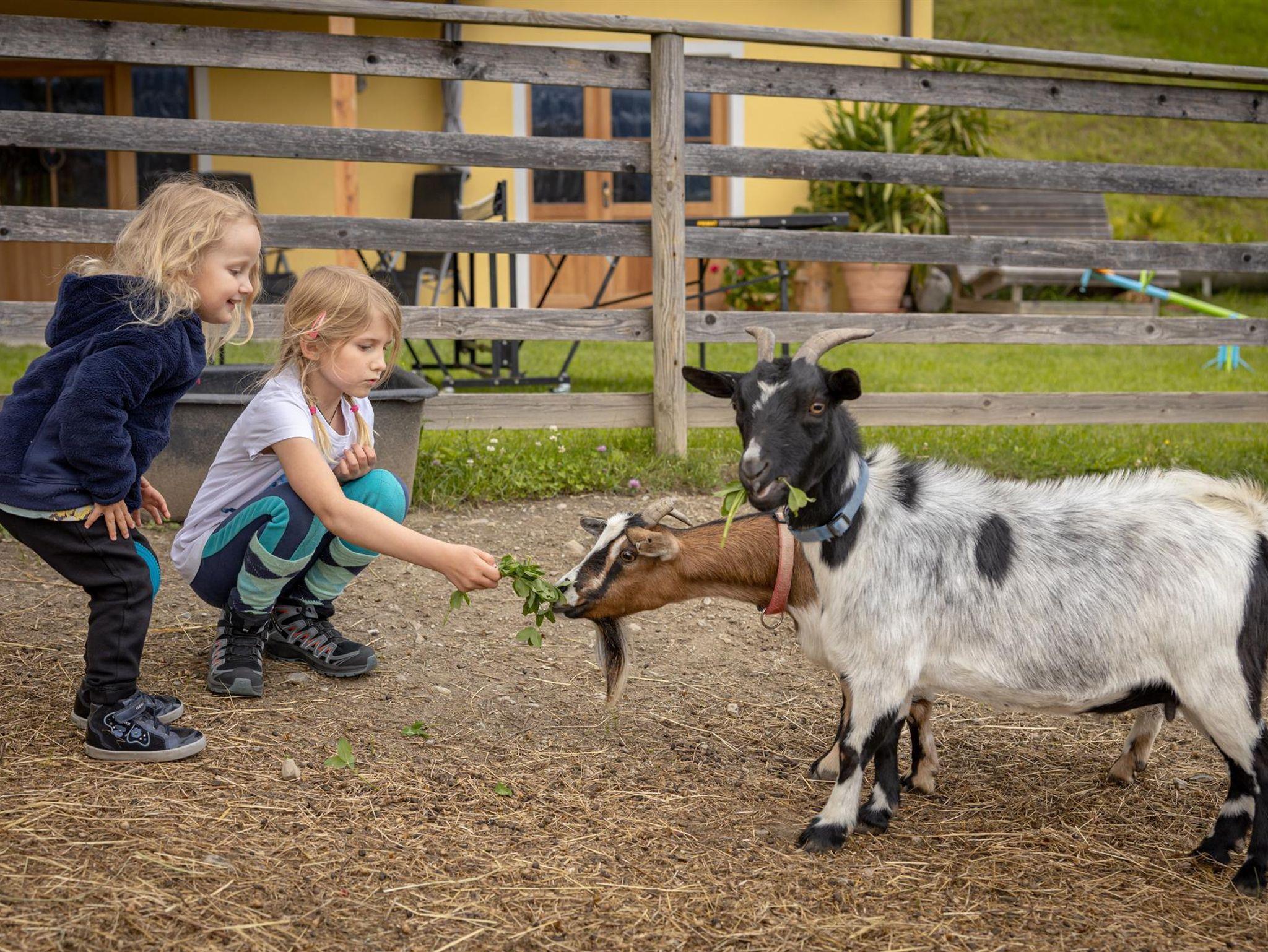 Unser Hof selbst bietet eine Vielzahl von tierischen Freunden – von Hasen über Katzen, Hühner, Rinder bis hin zu Pferden und Ziegen . Wenn Ihre Kinder beim Tiere füttern mithelfen oder auf dem Kinderspielplatz toben, können Sie sich auf der Liegewiese entspannen, während der Duft von Kräutern und frischen Blumen in der Luft liegt.