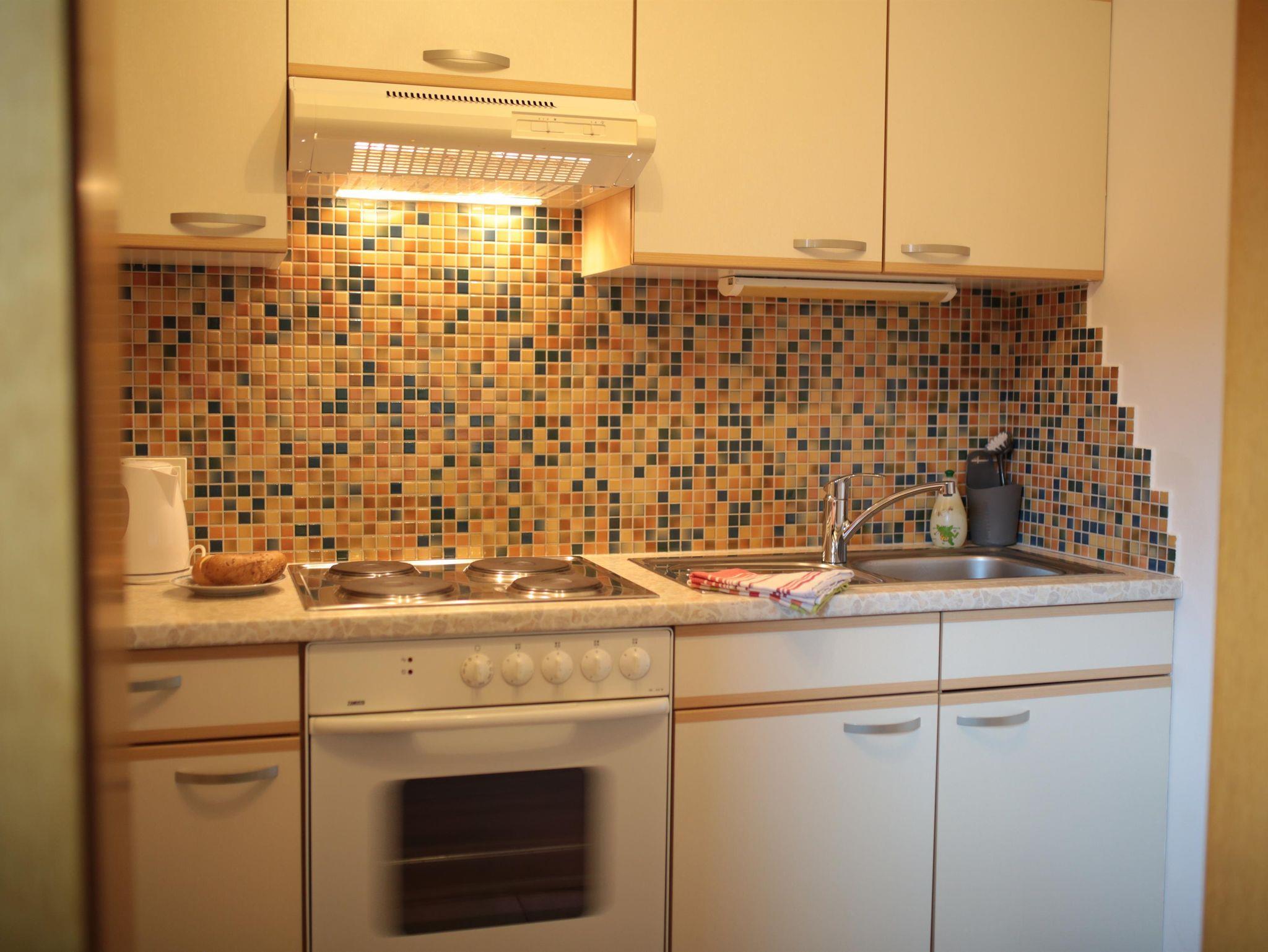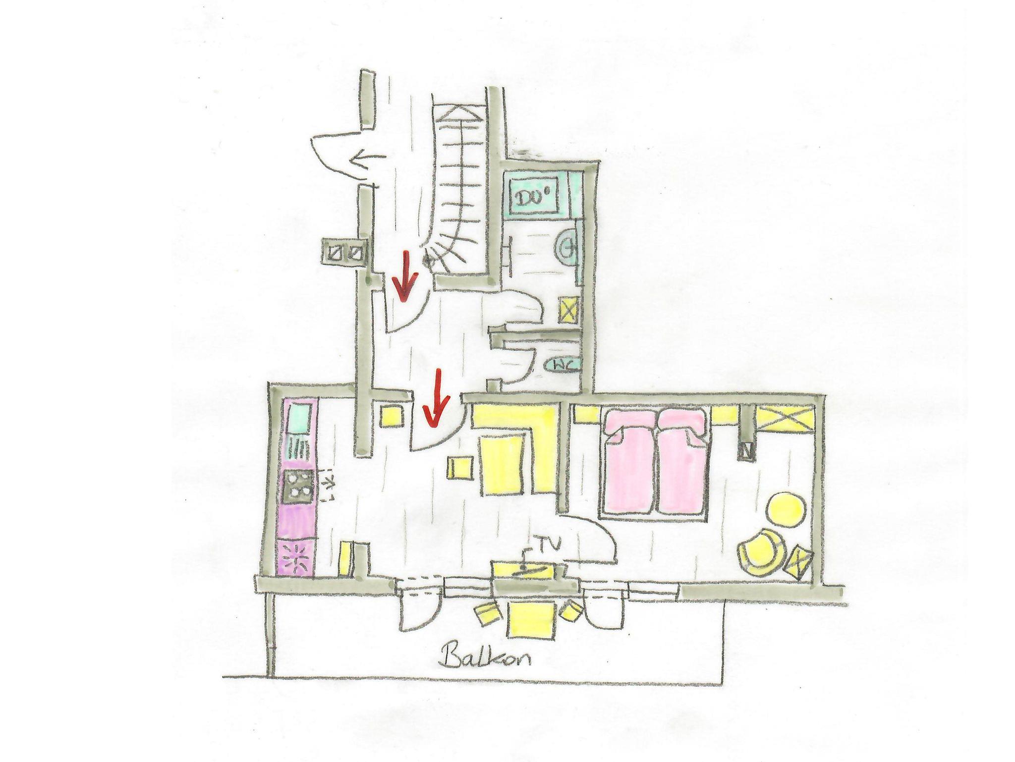 Ferienwohnung für 2 Personen Vorraum , Wohnküche mit SatTv , 1 Schlafzimmer , Dusche und Wc- getrennt , Balkon