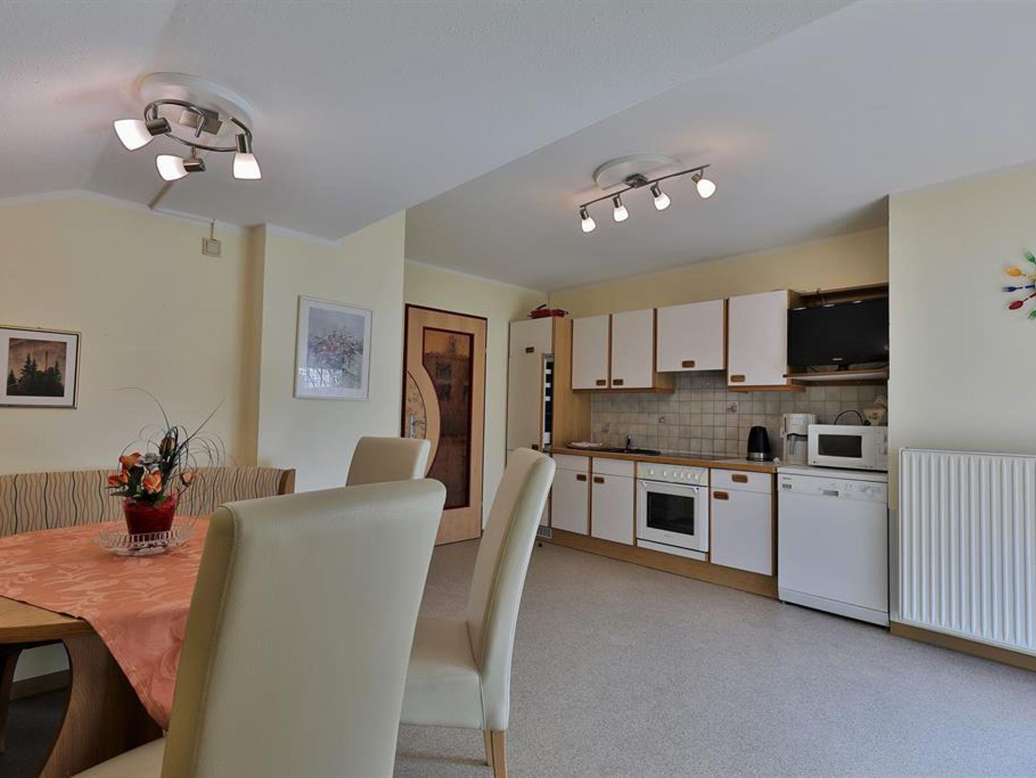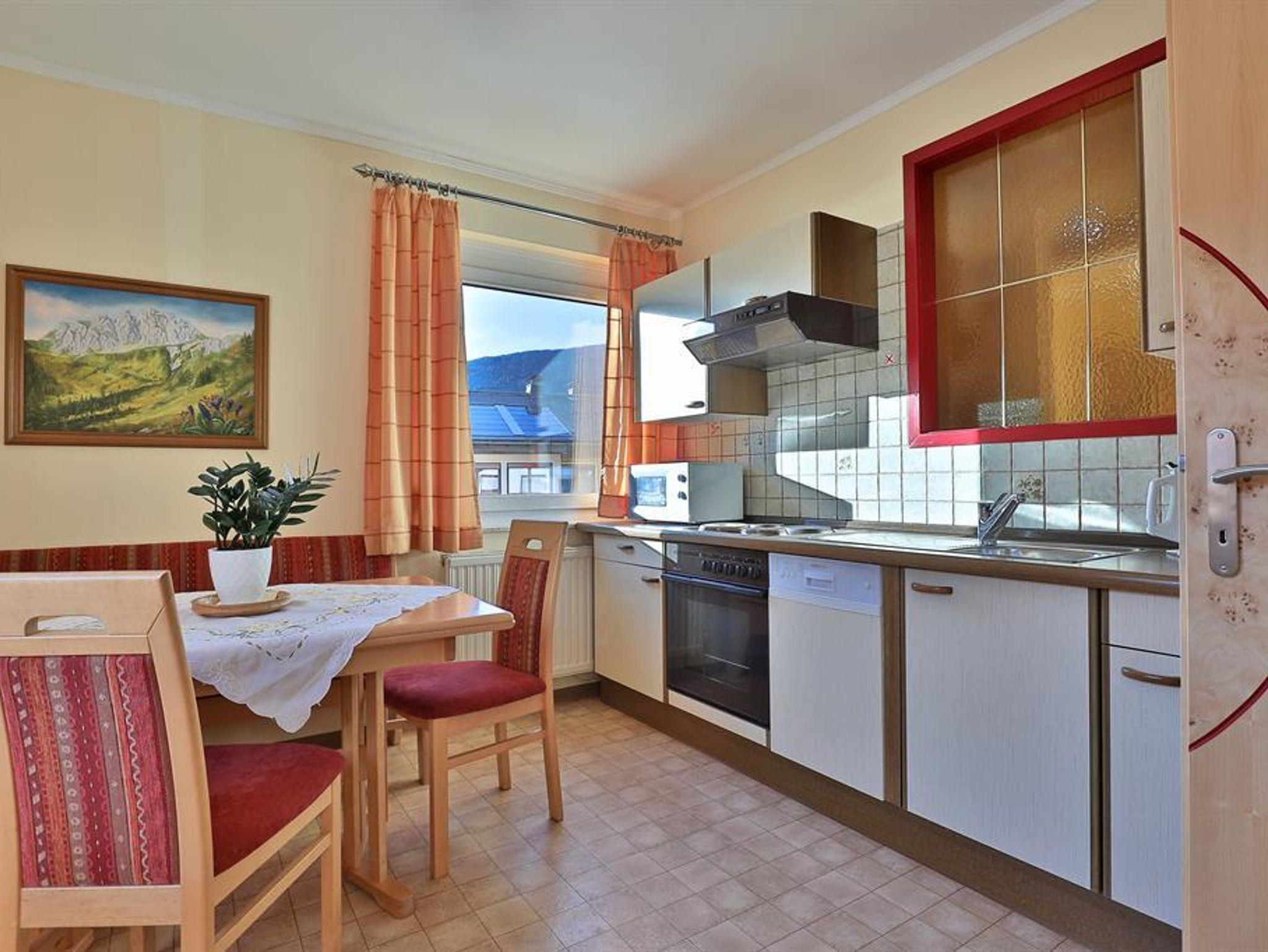 Große Wohnküche mit TV-Sat, Radio, Geschirrspüler, E-Herd, Mikrowelle-Kaffeemaschine-Wasserkocher-Besteck-Geschirr.