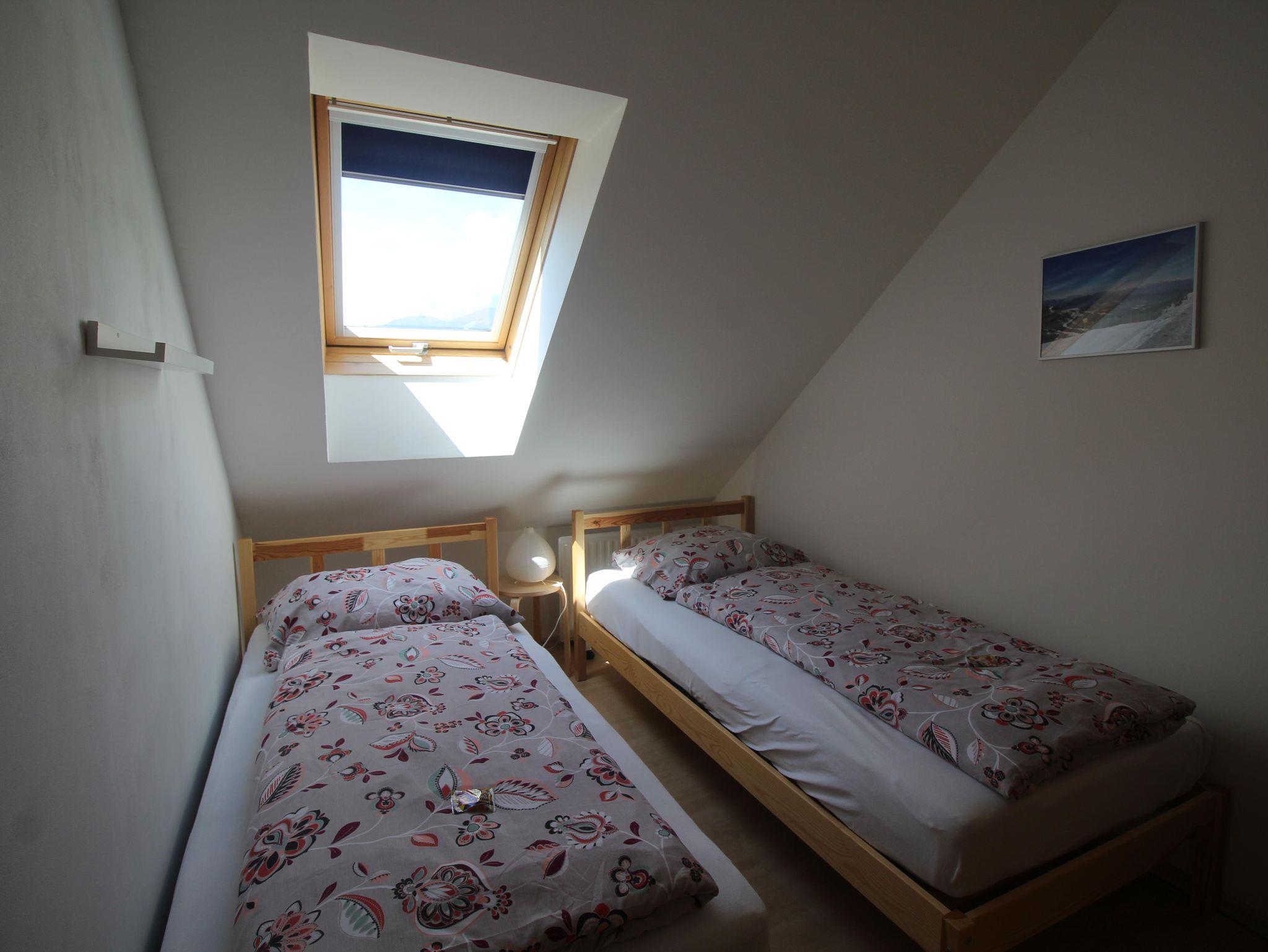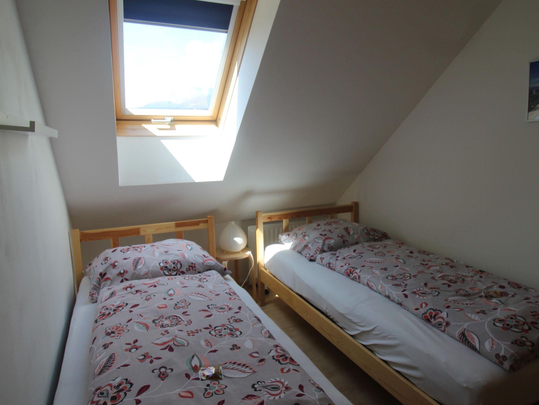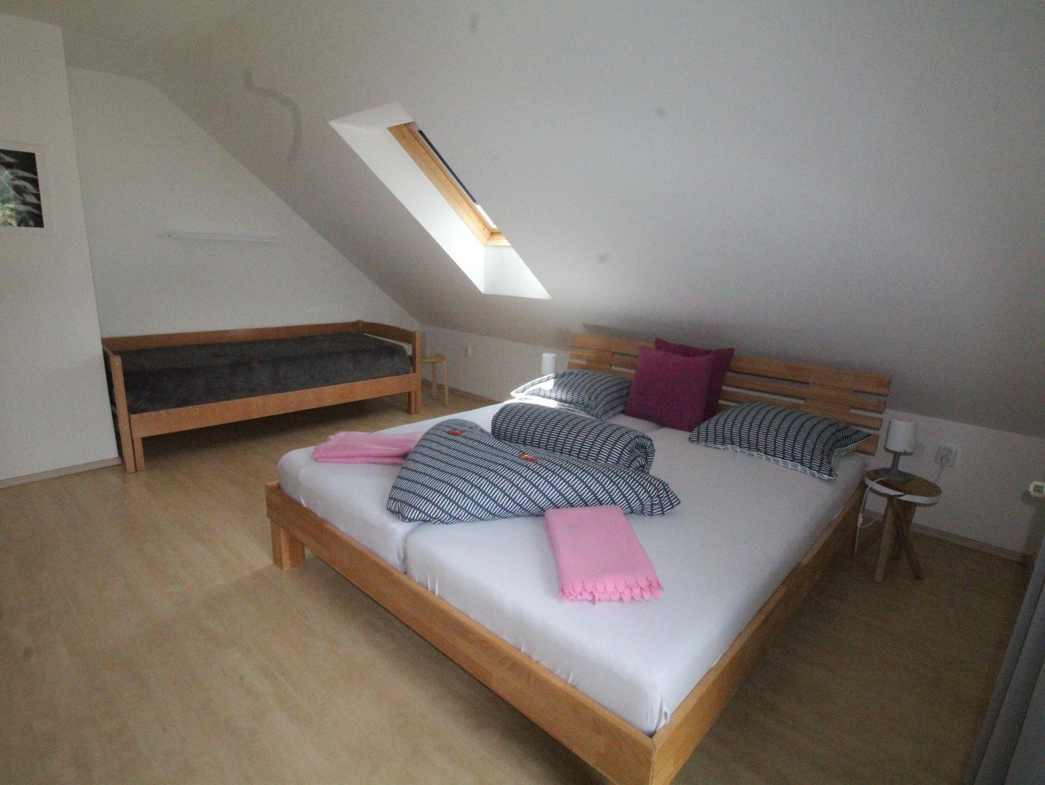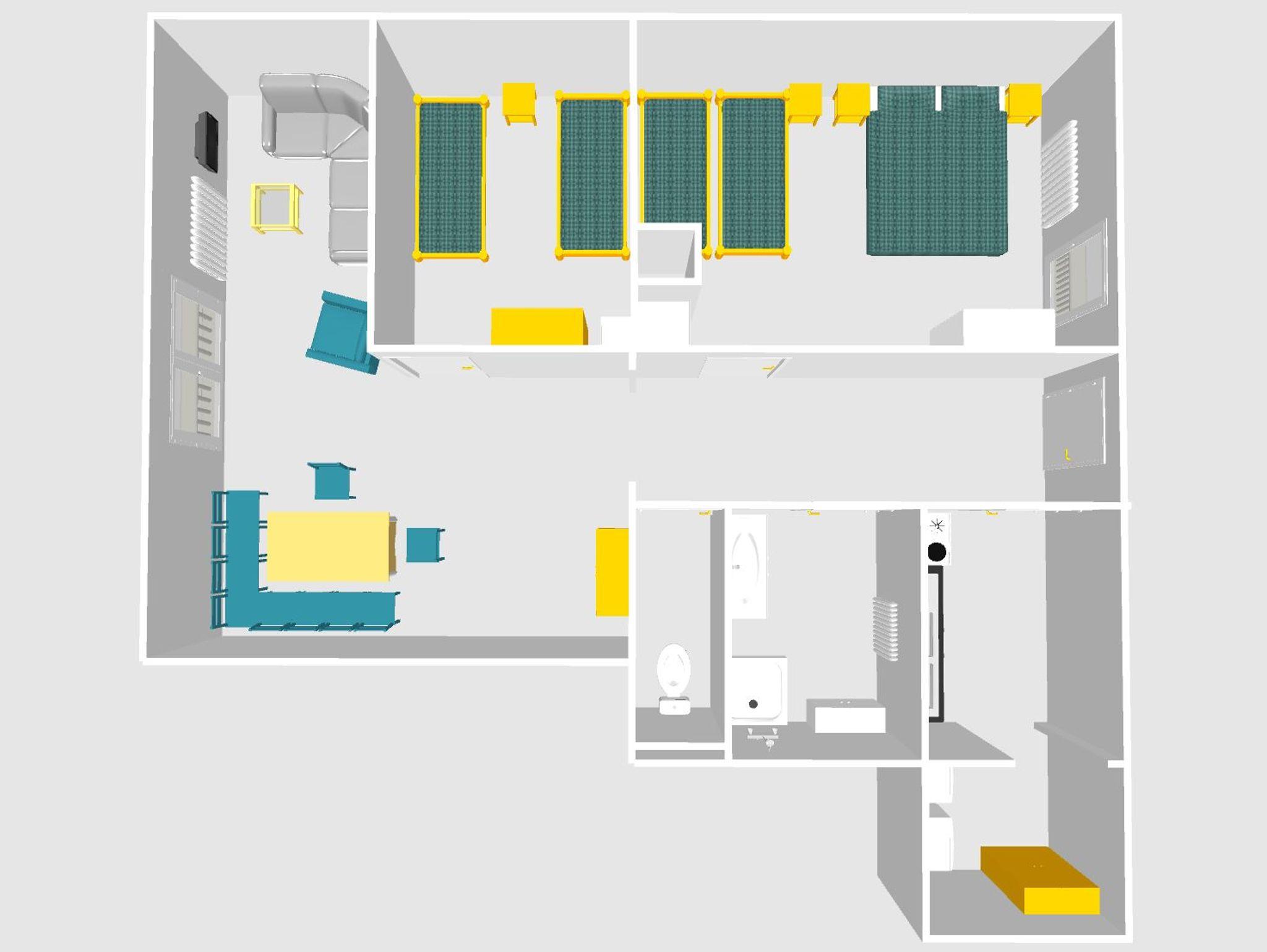 Apartment C befindet sich im zweiten Stock und bietet Platz für 6 Personen. Das Apartment verfügt über ein Wohnzimmer mit einem französischen Balkon, einen Essbereich und ein Doppelschlafsofa. Die Wohnung verfügt über zwei Schlafzimmer, ein Schlafzimmer mit einem Doppelbett, und ein Schlafzimmer mit Doppelbett und ein Stapelbett. Die Wohnung verfügt über ein geräumiges Badezimmer mit separatem WC und eine voll ausgestattete Küche.