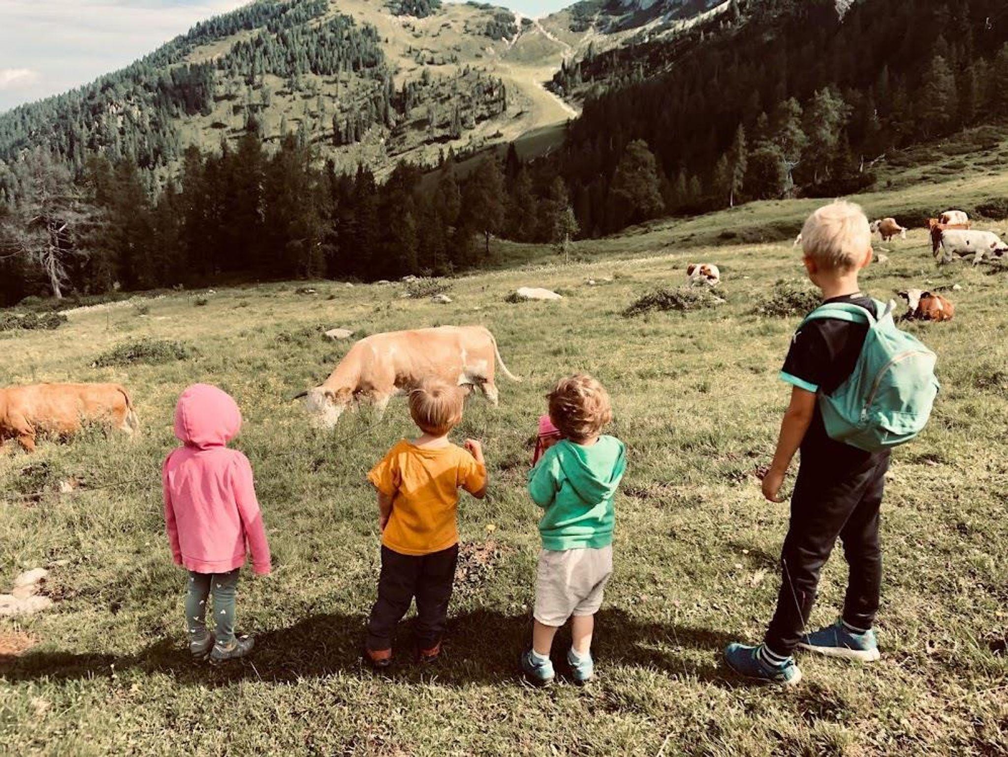 Für ihre Kinder gibt es am Hof immer Neues zu entdecken. Ob bei den Kühen im Stall, spielen mit den Katzen oder am Kinderspielplatz mit Kletterturm, Rutsche, Schaukel und Sandkiste.