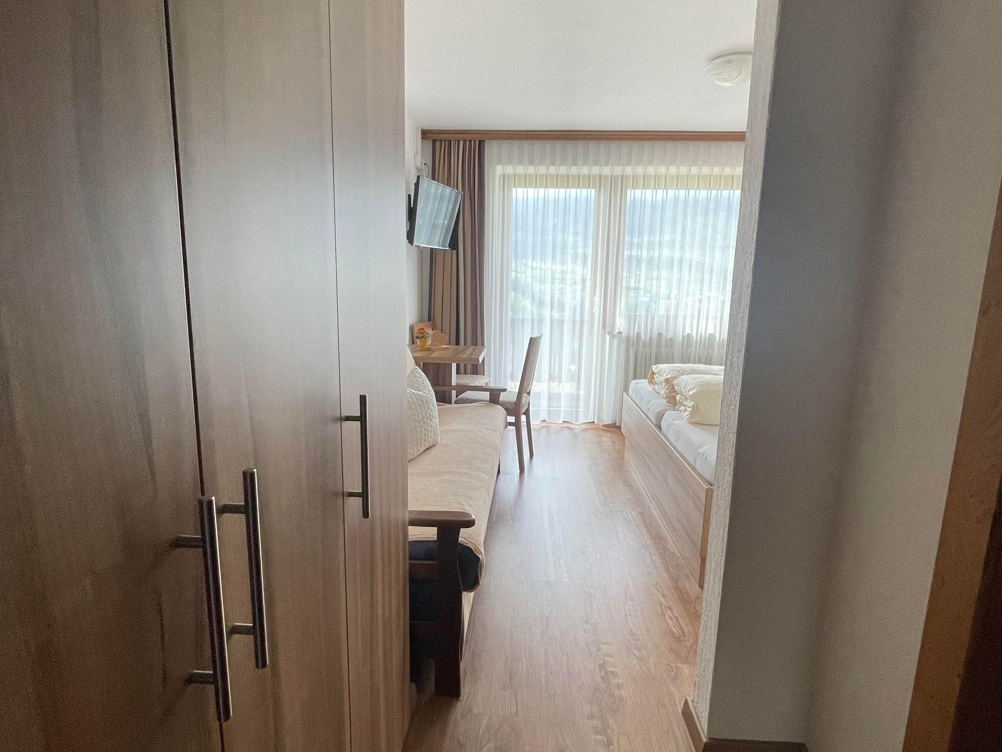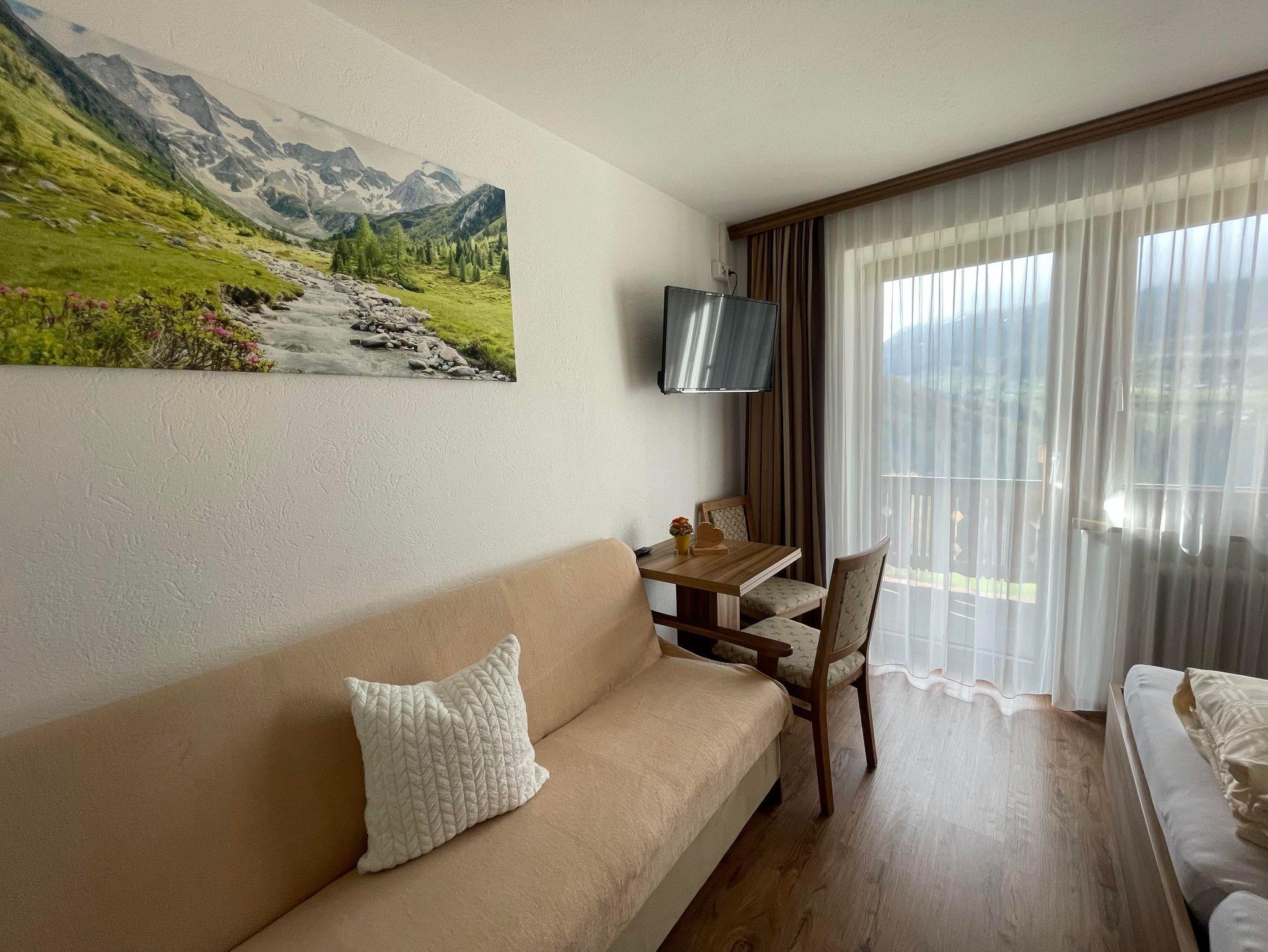 Gemütliches Zimmer mit schönem Balkon. Jeweils mit Couch, die für die 3. Person ausgezogen wird.